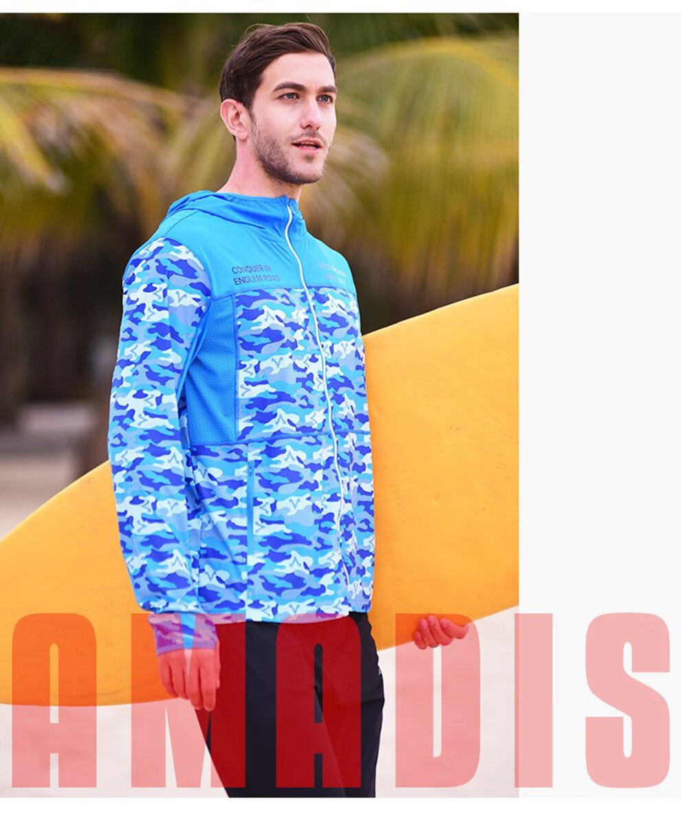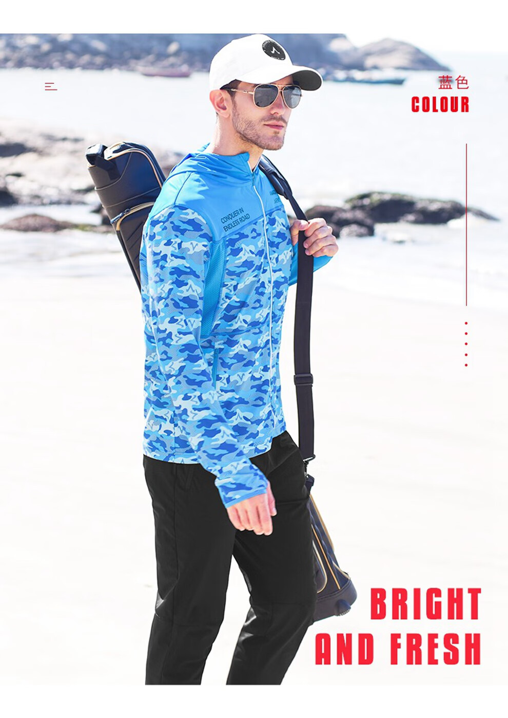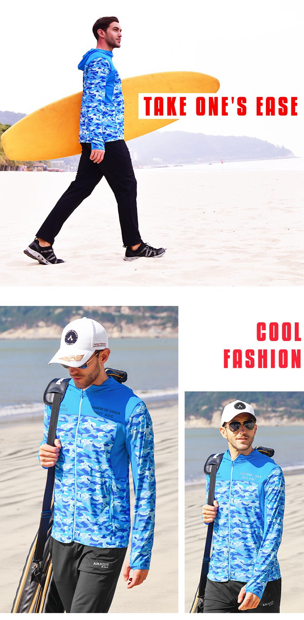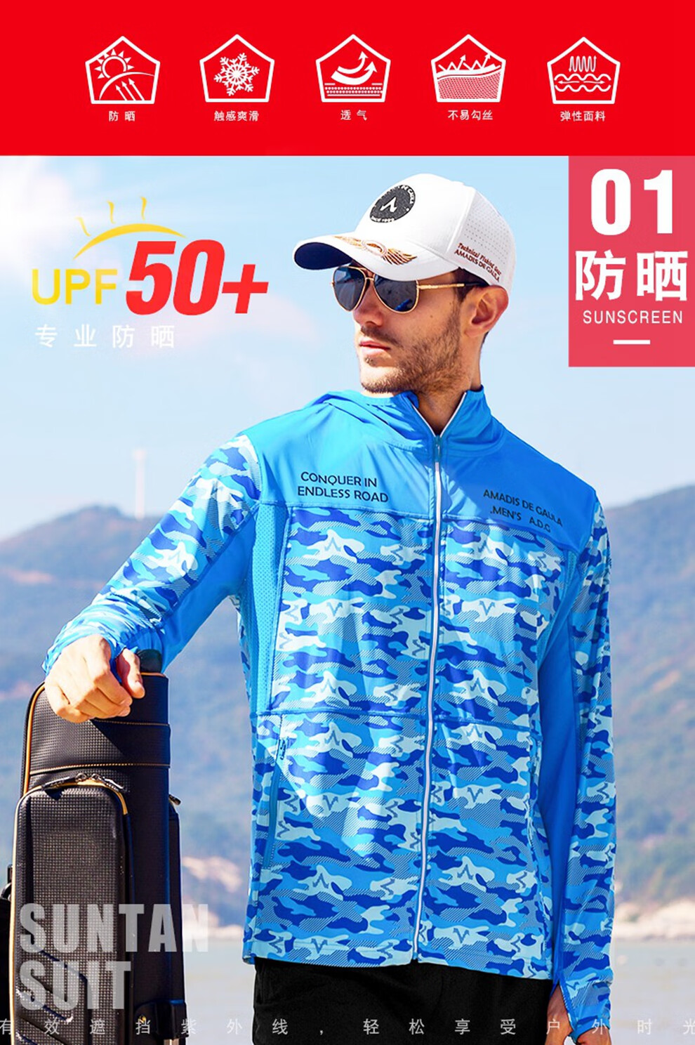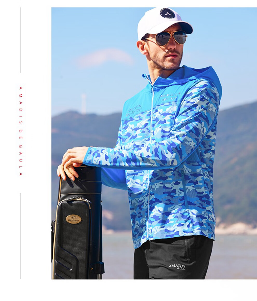 AMADIS DE GAULA fishing clothing men's fishing clothing summer ice silk cool feeling ultra-thin anti-UV outdoor fishing clothing blue camouflage M