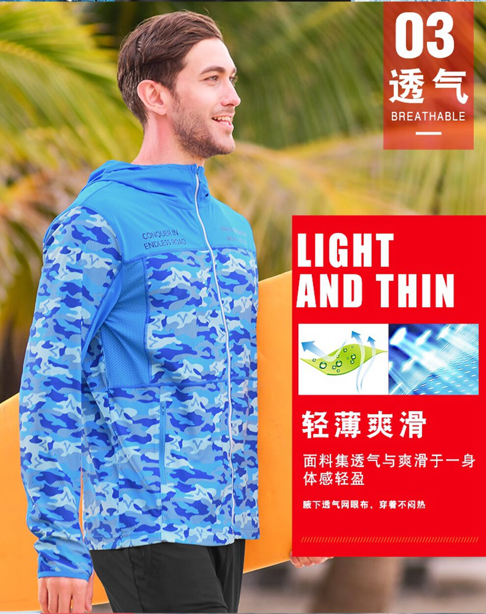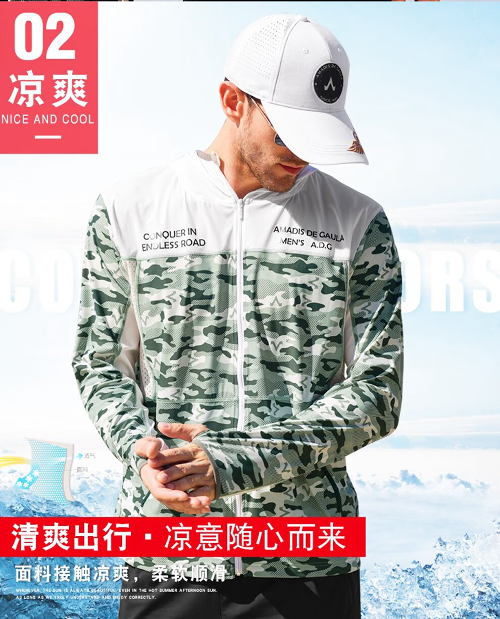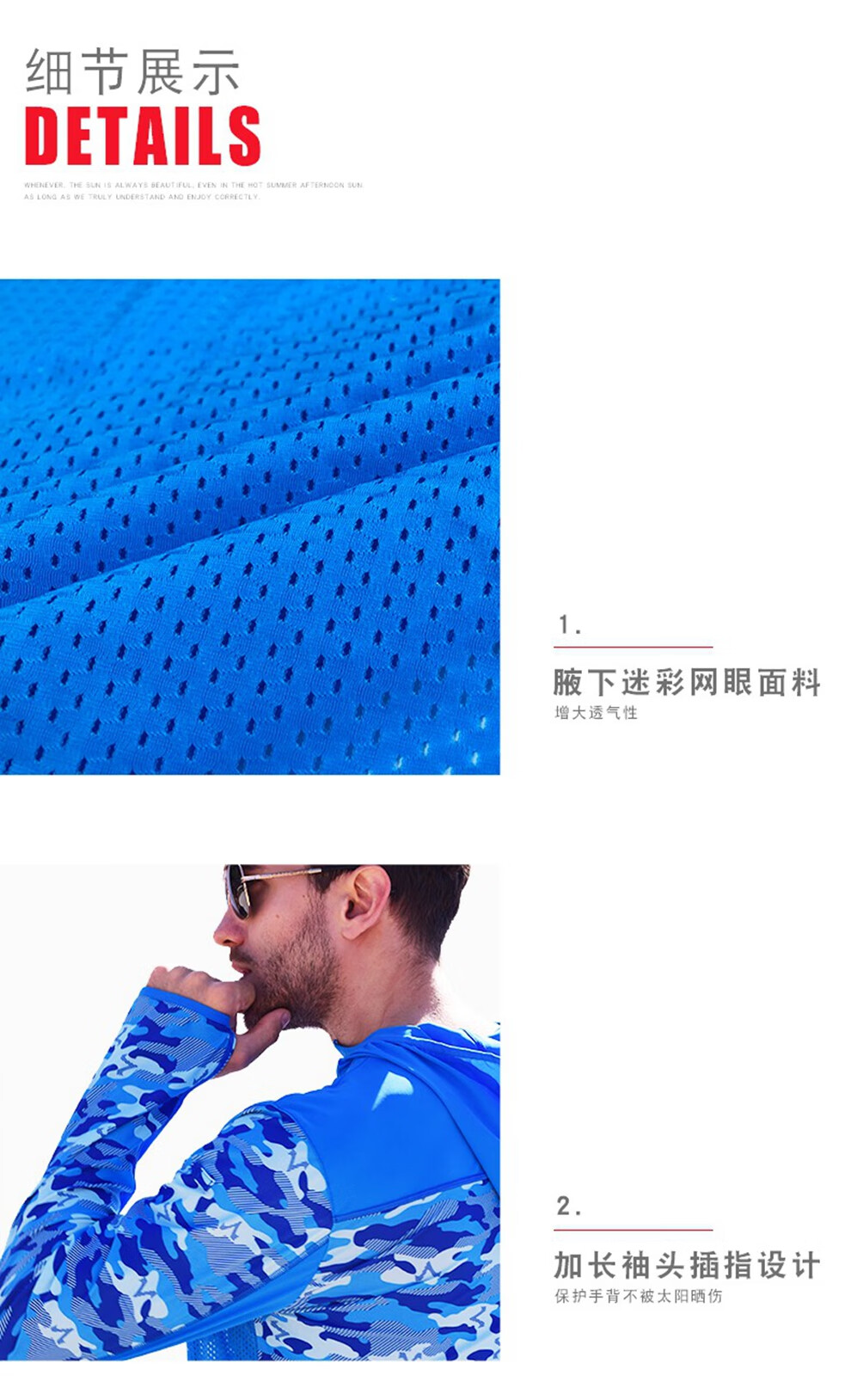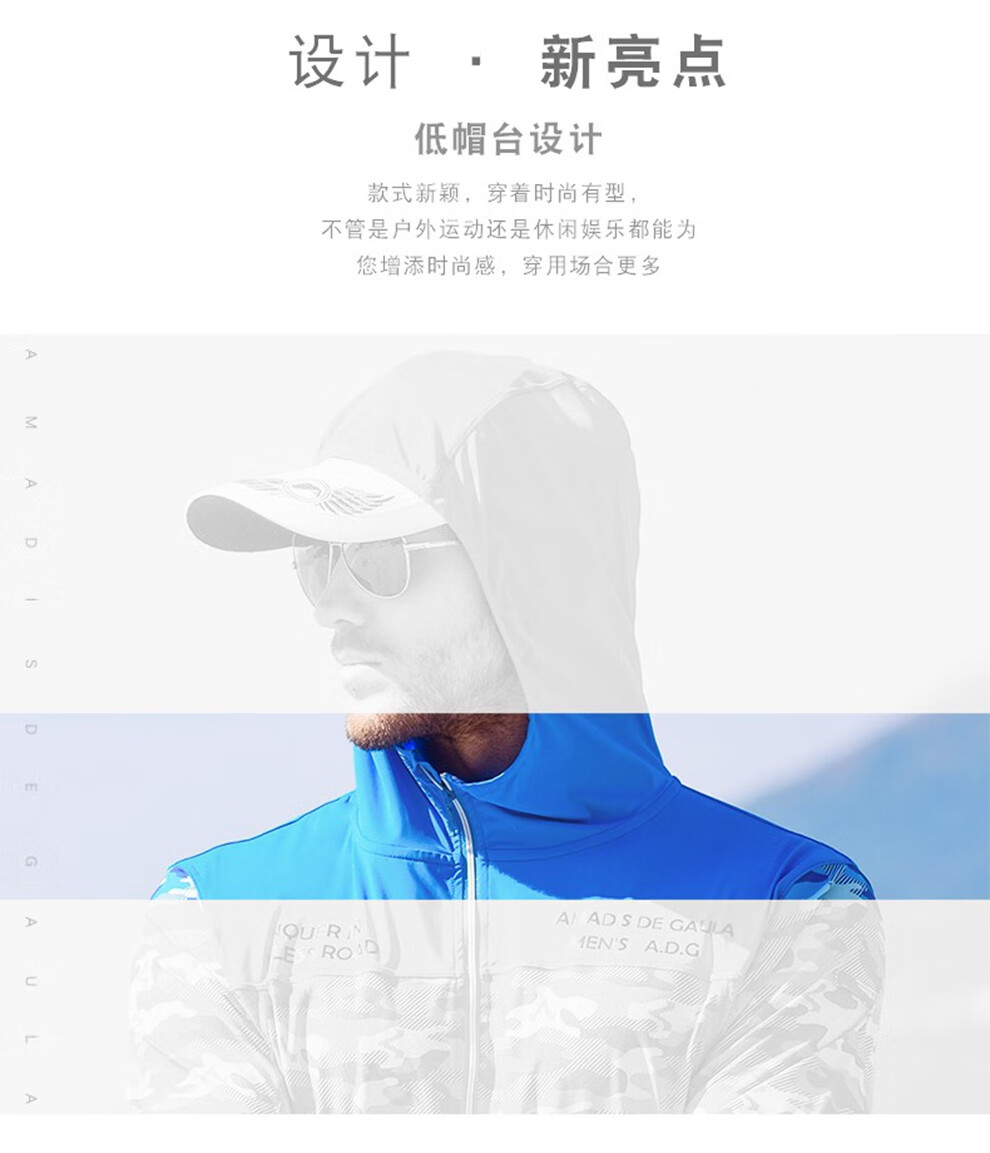 AMADIS DE GAULA fishing clothing men's fishing clothing summer ice silk cool feeling ultra-thin anti-UV outdoor fishing clothing blue camouflage M