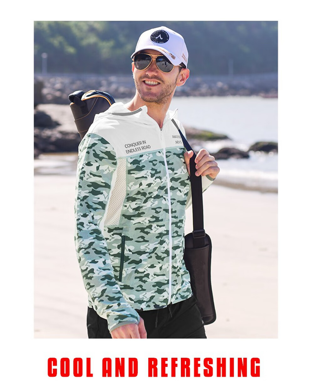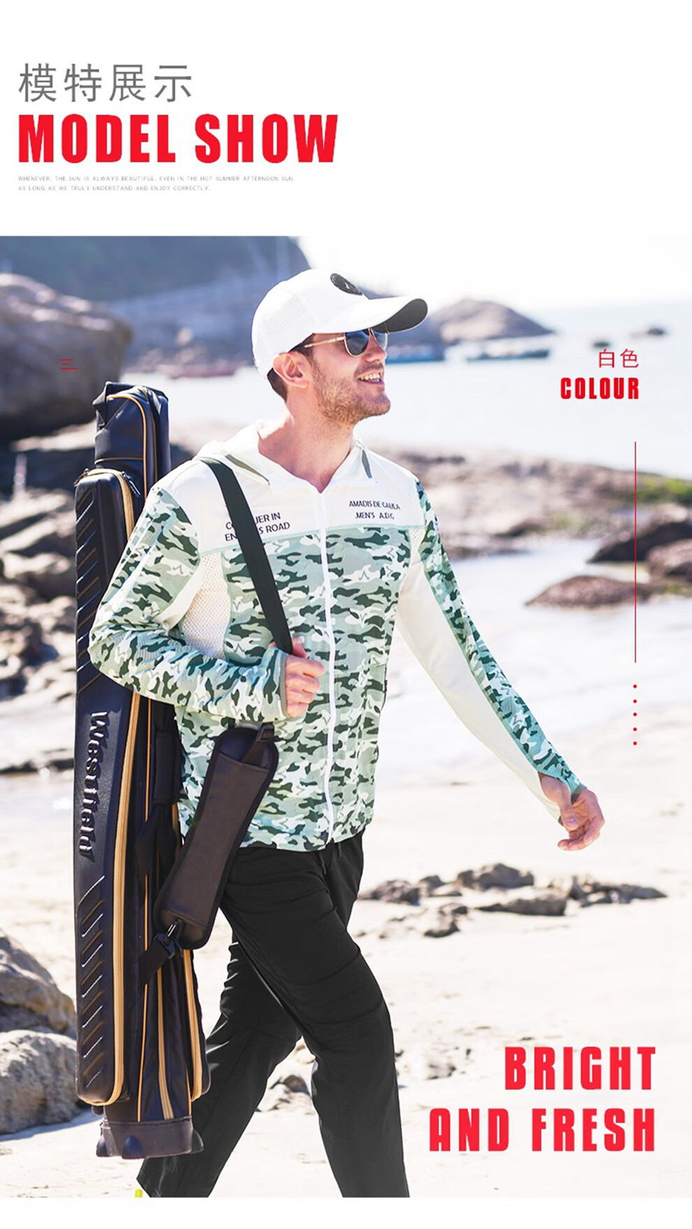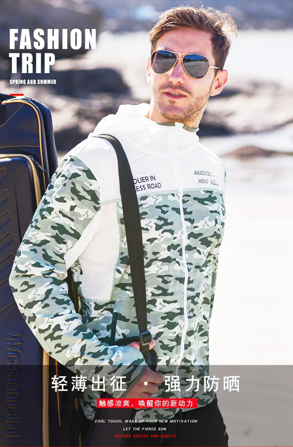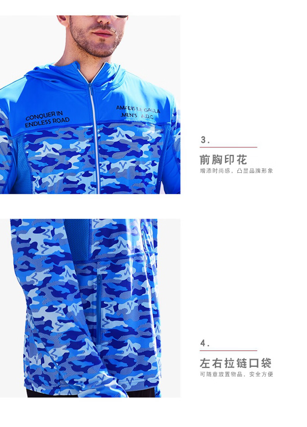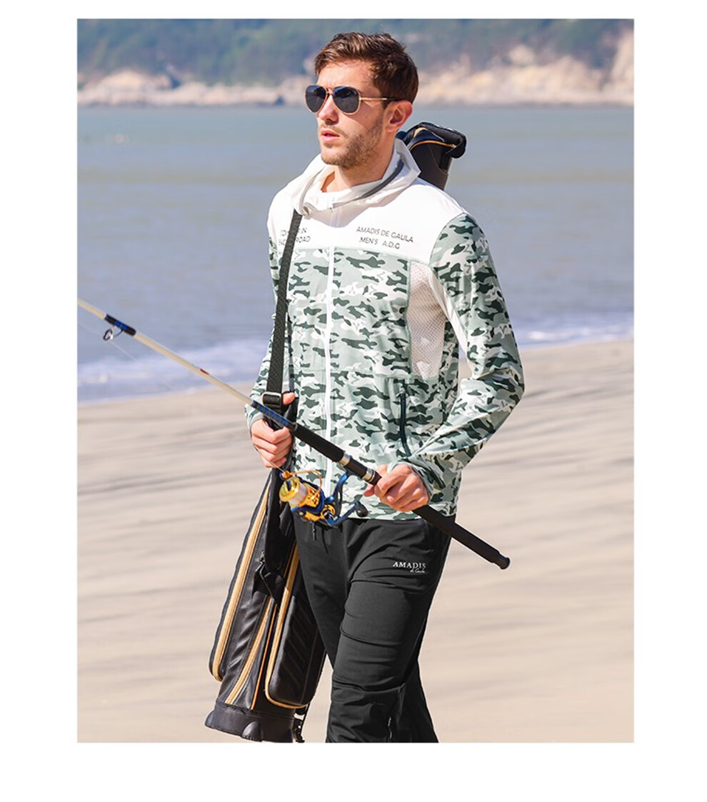 AMADIS DE GAULA fishing clothing men's fishing clothing summer ice silk cool feeling ultra-thin anti-UV outdoor fishing clothing blue camouflage M