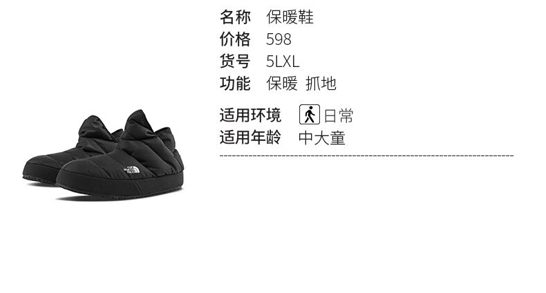 The North Face Children's Shoes Boys and Girls Warm Cotton Shoes Sports Outdoor Autumn and Winter|5LXL KX7/Black 33.5 Inner Length 21cm