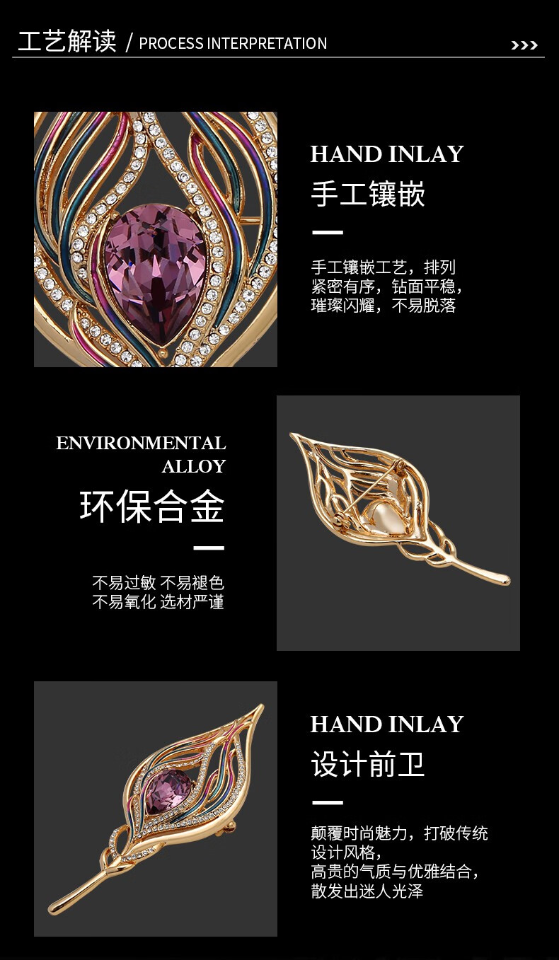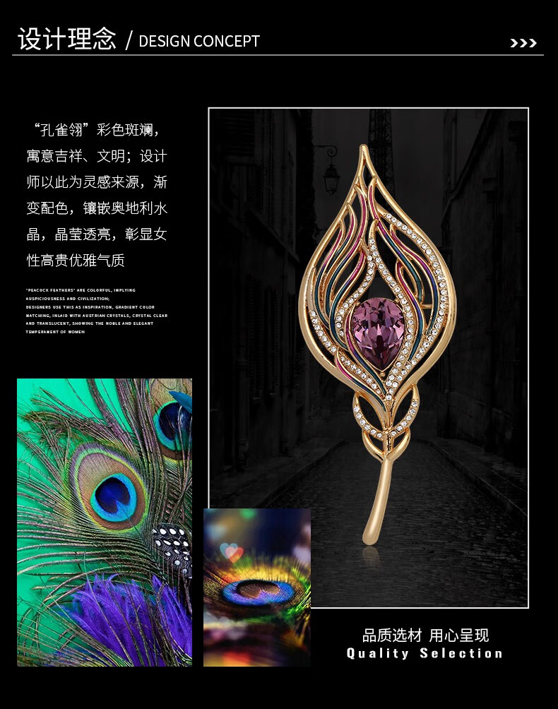Eternelle French eternal original peacock feather brooch women's high-end accessories high-end corsage gifts for elders peacock blue