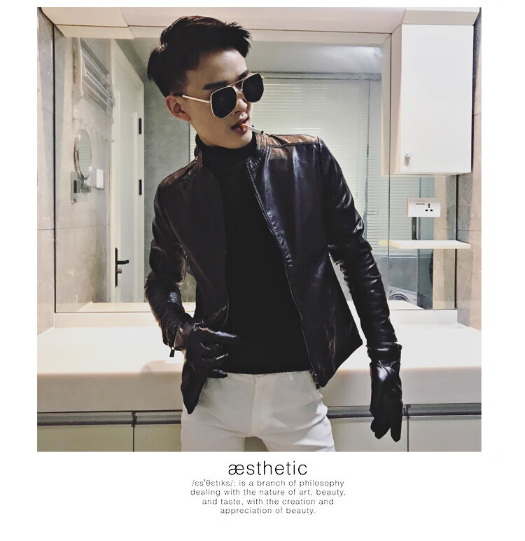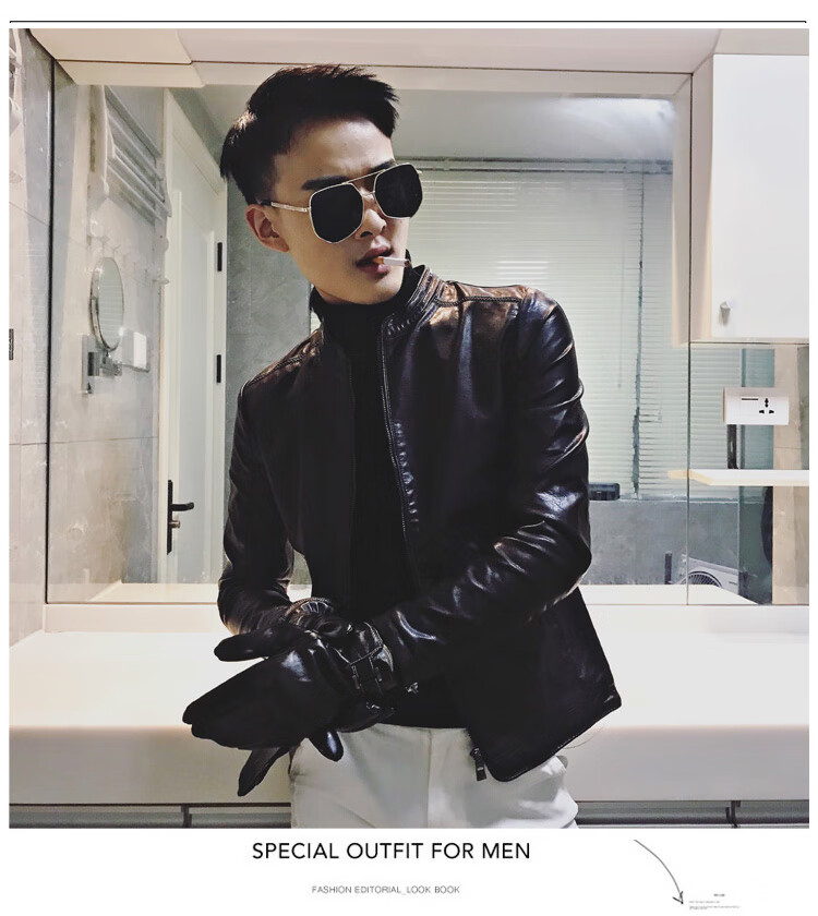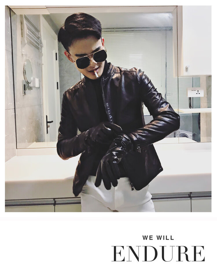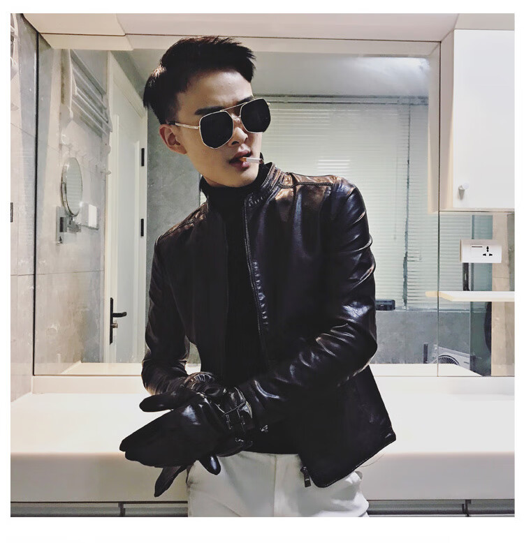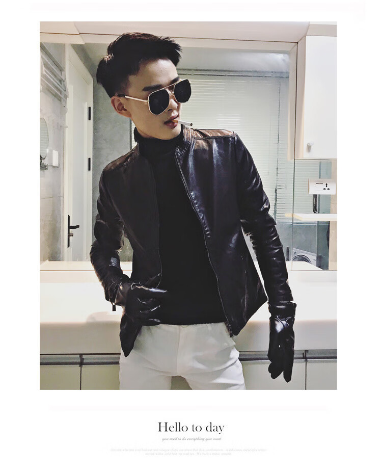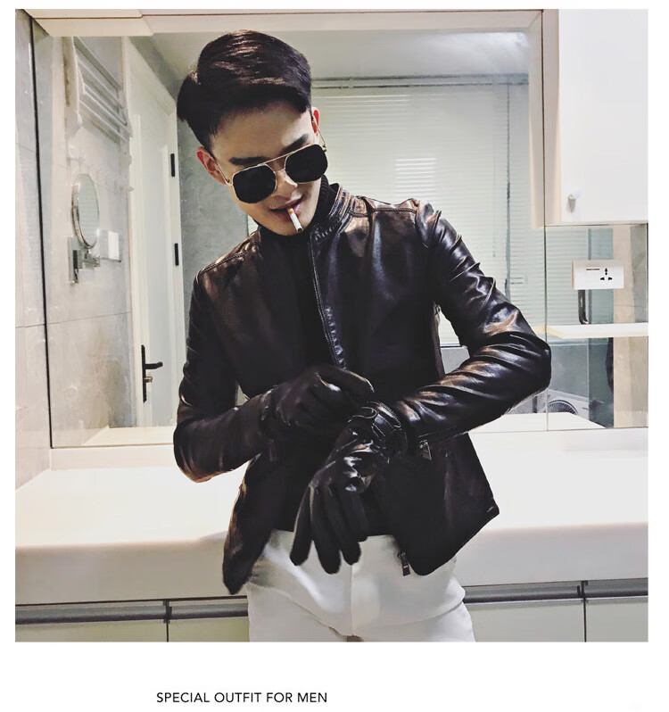 90Jin Jin is equal to 0.5kg. Wearable fit. Small size leather jacket for men. Autumn and winter plus velvet leather jacket. Size S.