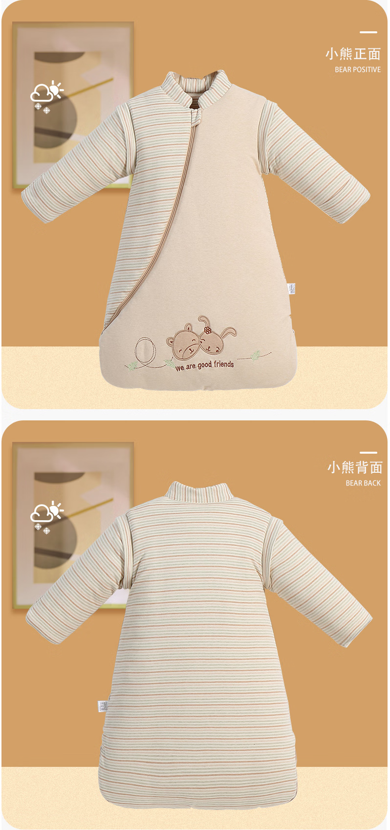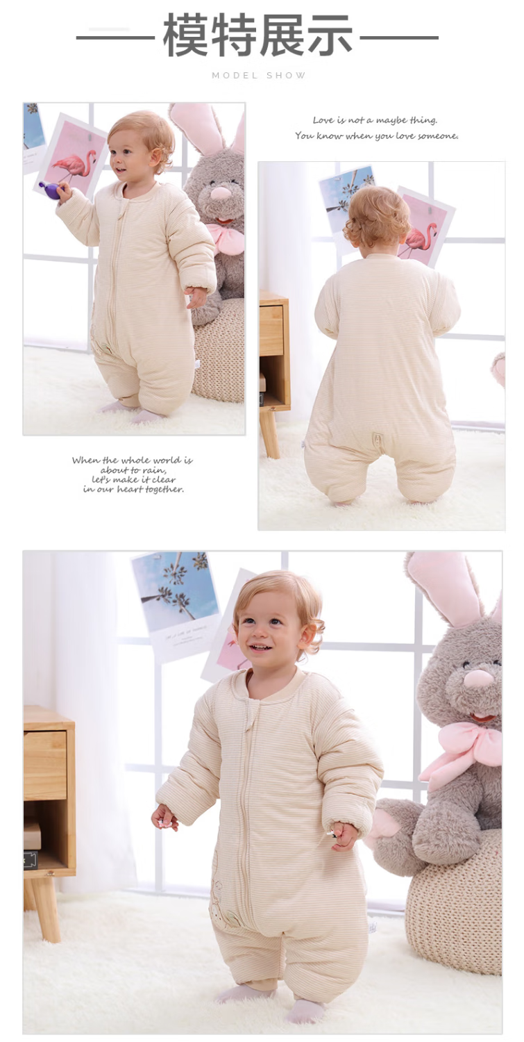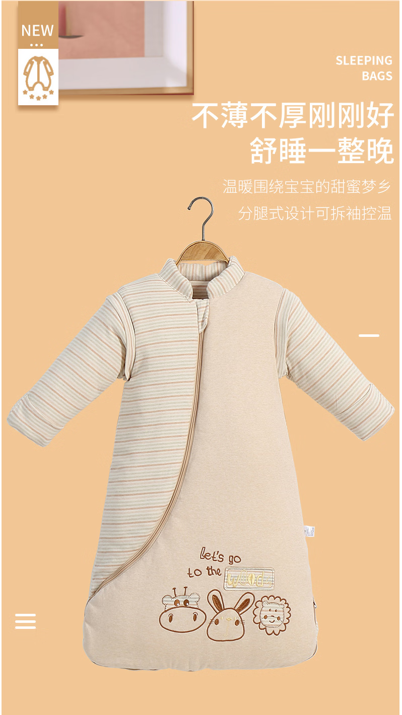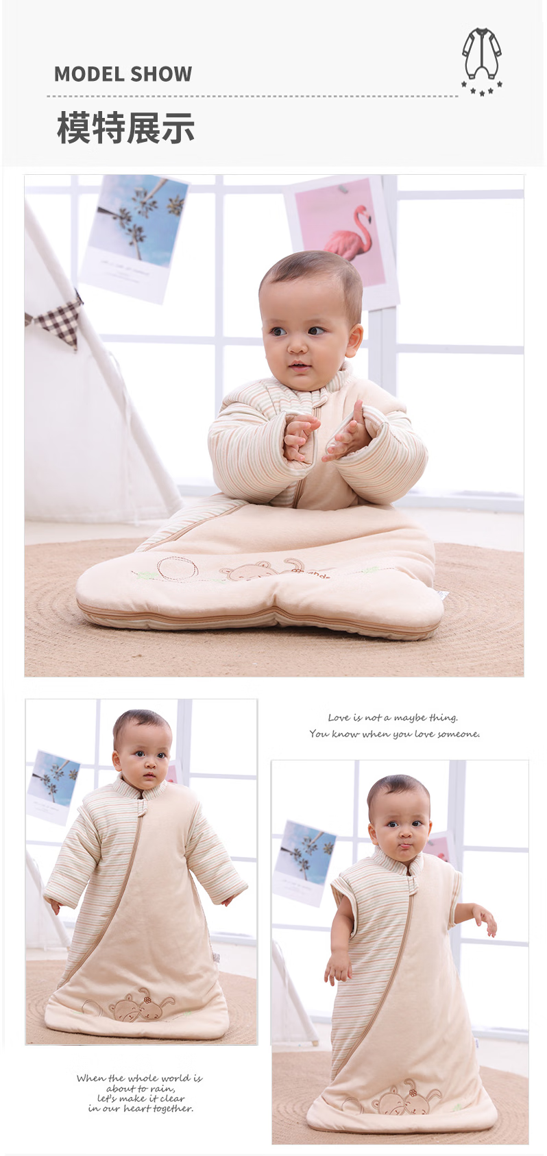 Bekami baby sleeping bag with removable sleeves for children, constant temperature autumn and winter baby anti-kicking quilt, thickened quilt, colorful cotton sleeping bag to prevent colds, 0-2 years old, envelope type thickened version 0-20