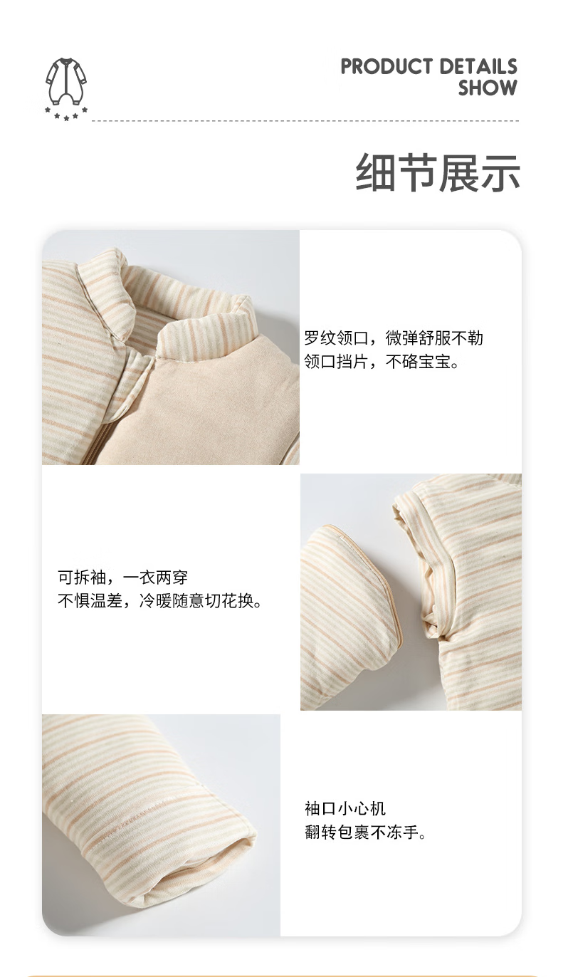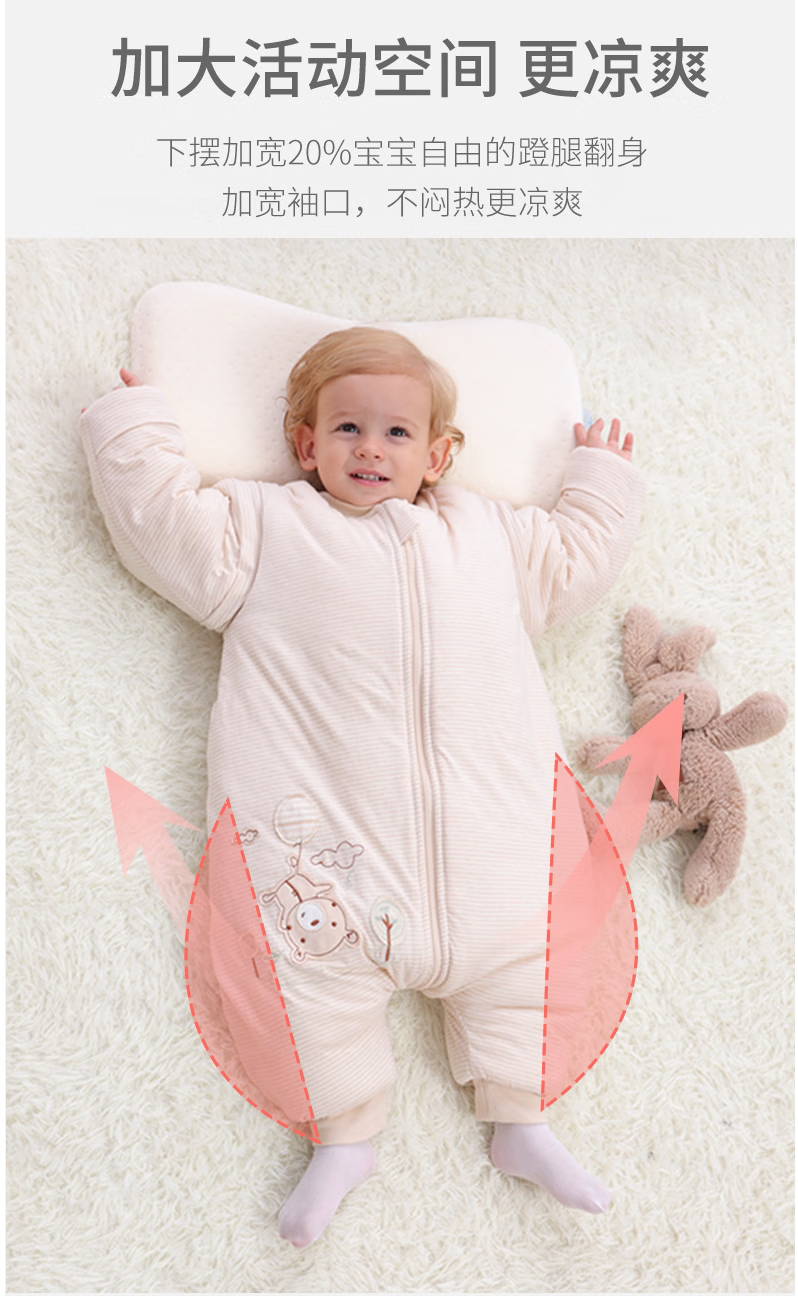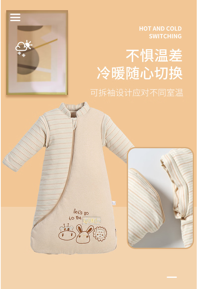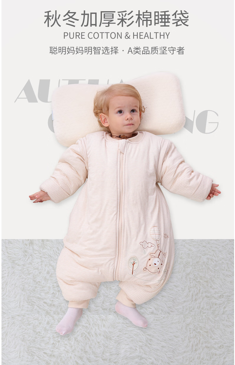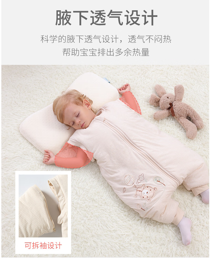 Bekami baby sleeping bag with removable sleeves for children, constant temperature autumn and winter baby anti-kicking quilt, thickened quilt, colorful cotton sleeping bag to prevent colds, 0-2 years old, envelope type thickened version 0-20