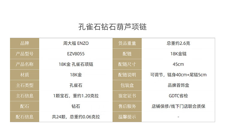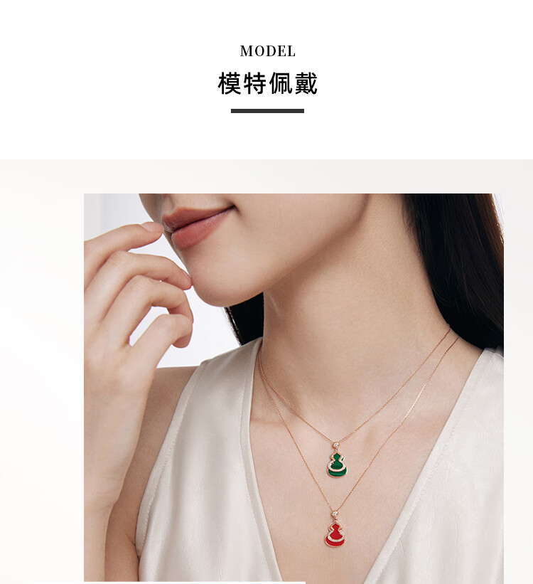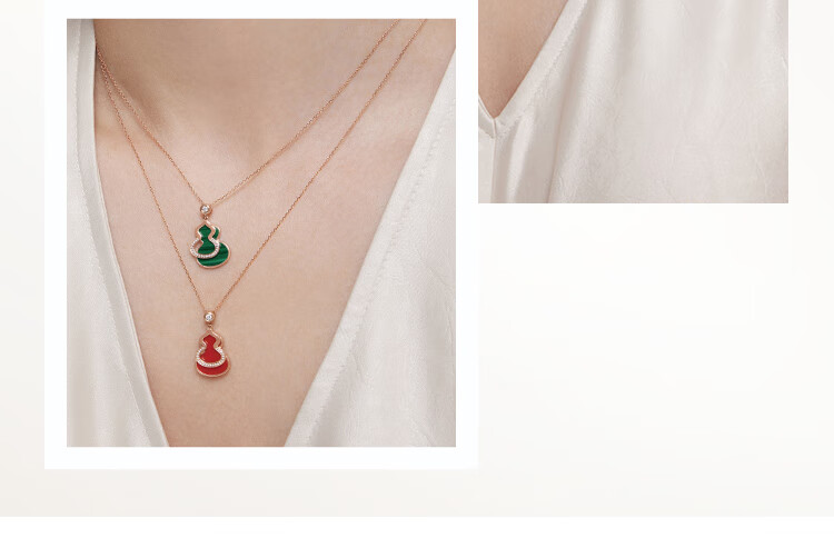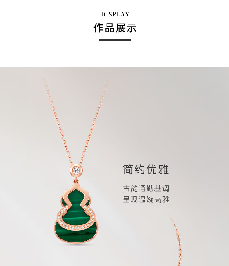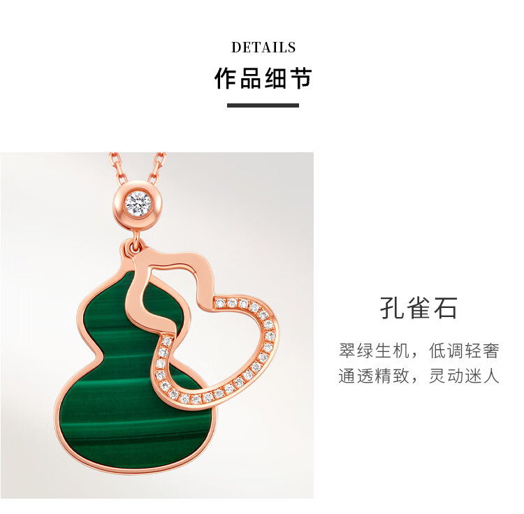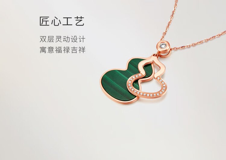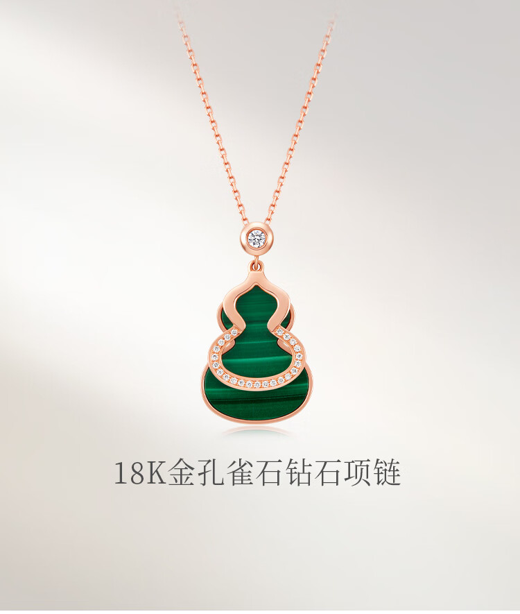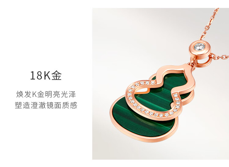 Chow Tai Fook ENZO mall same jewelry 18K gold malachite diamond gourd necklace EZV8055 40cm