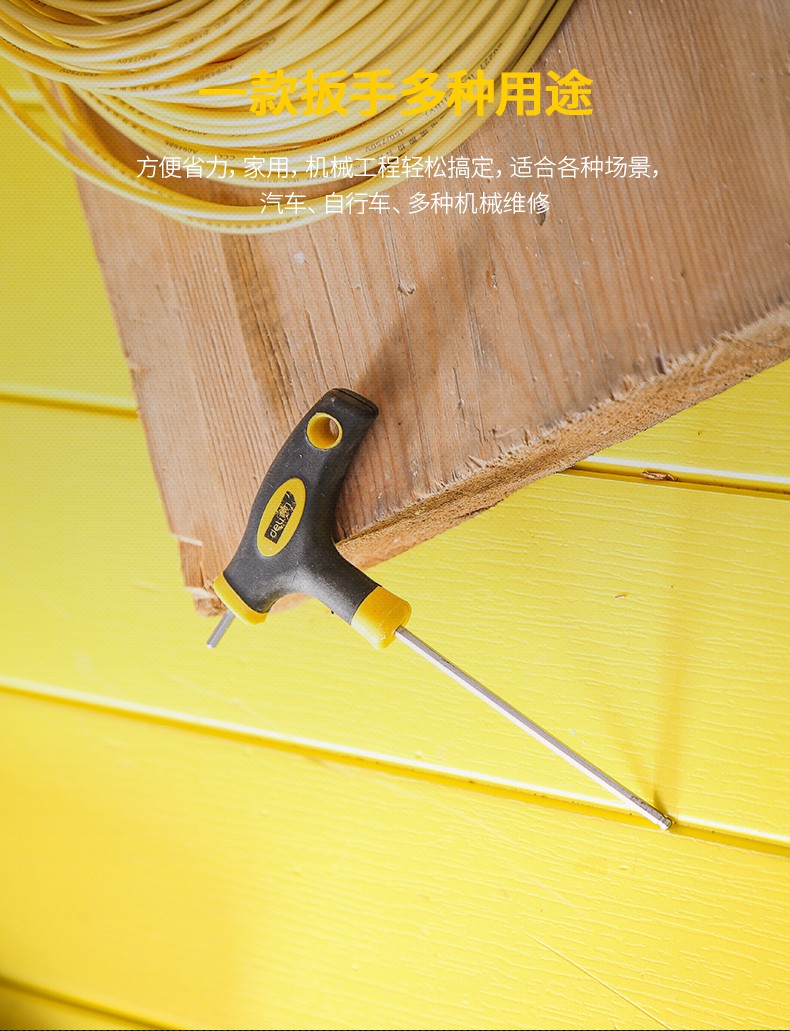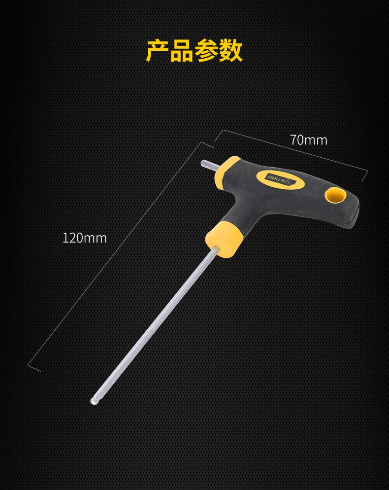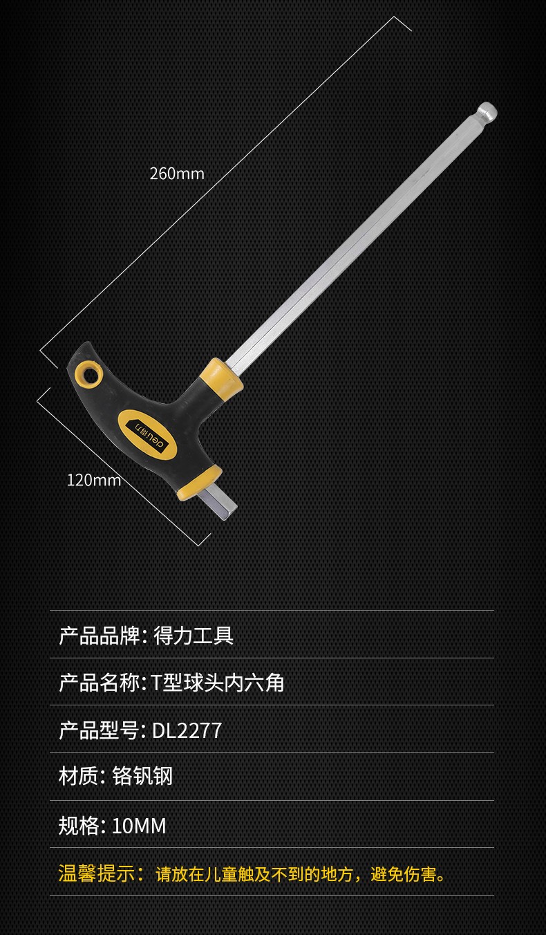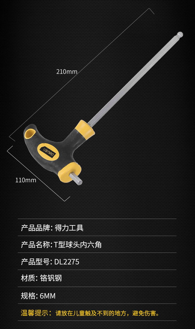 Deli hexagonal wrench T-type single 2-5-10mm screwdriver ball head flat head hexagonal hexagonal wrench 60Cr flat head 6mm DL3906