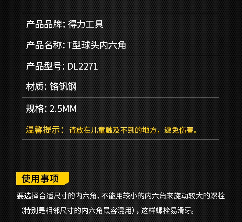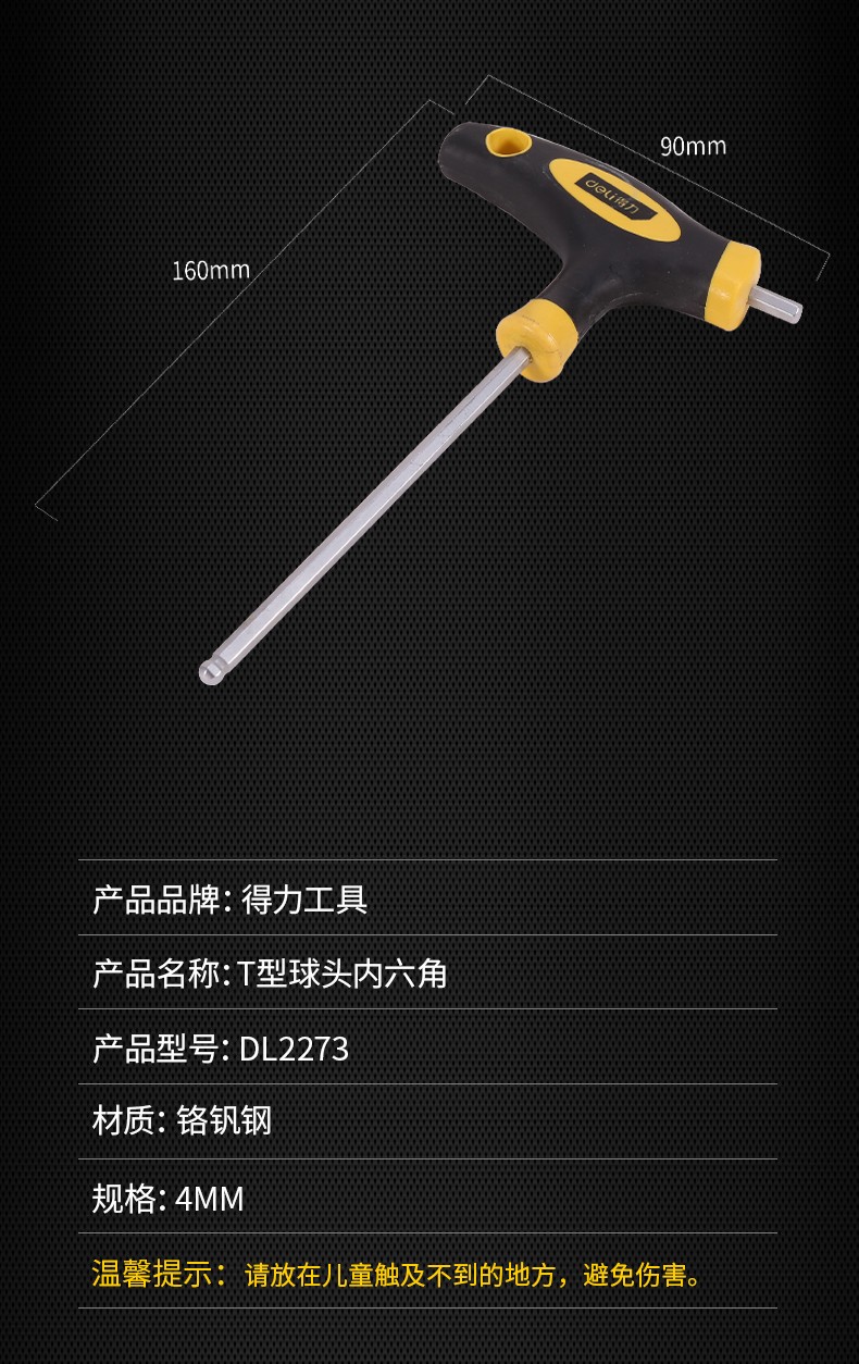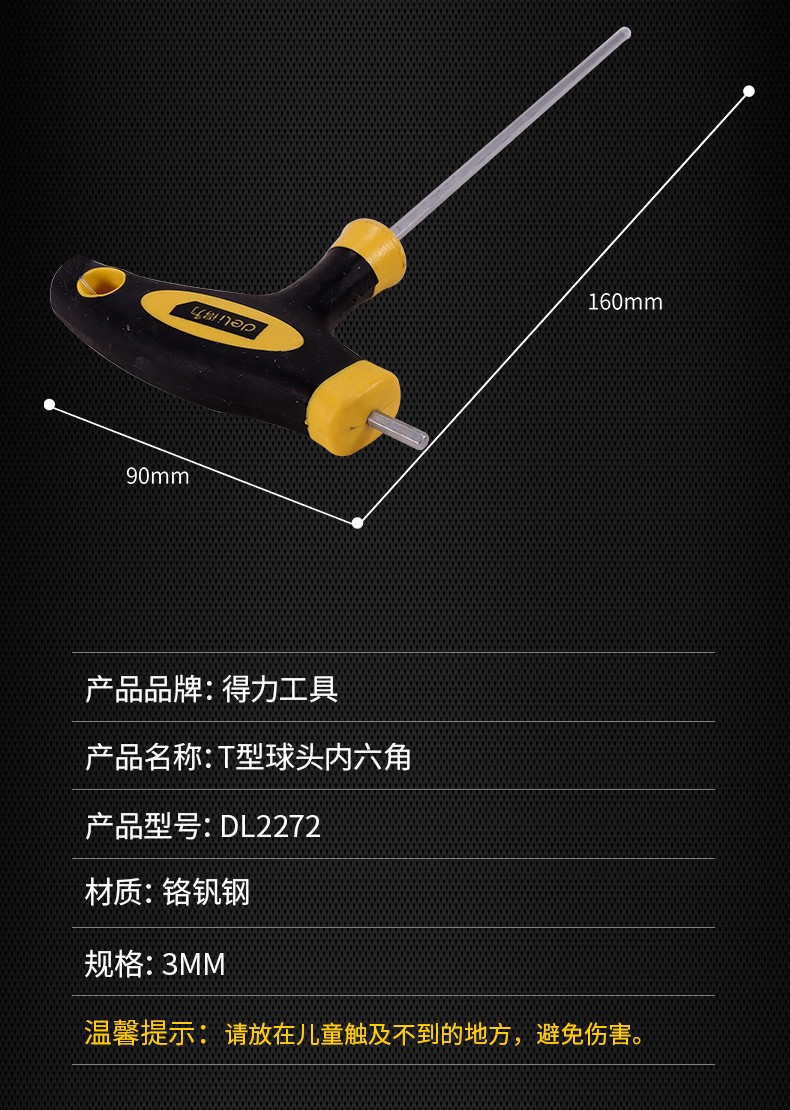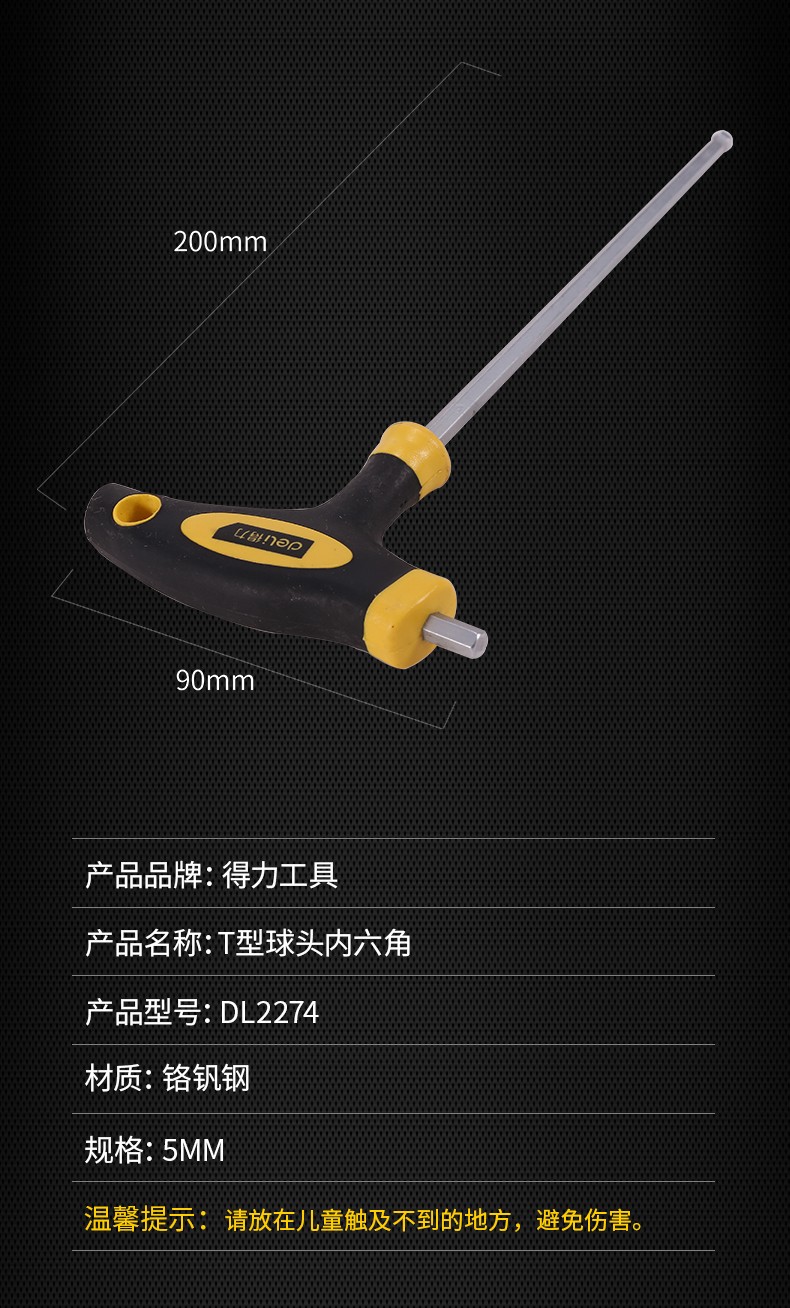 Deli hexagonal wrench T-type single 2-5-10mm screwdriver ball head flat head hexagonal hexagonal wrench 60Cr flat head 6mm DL3906
