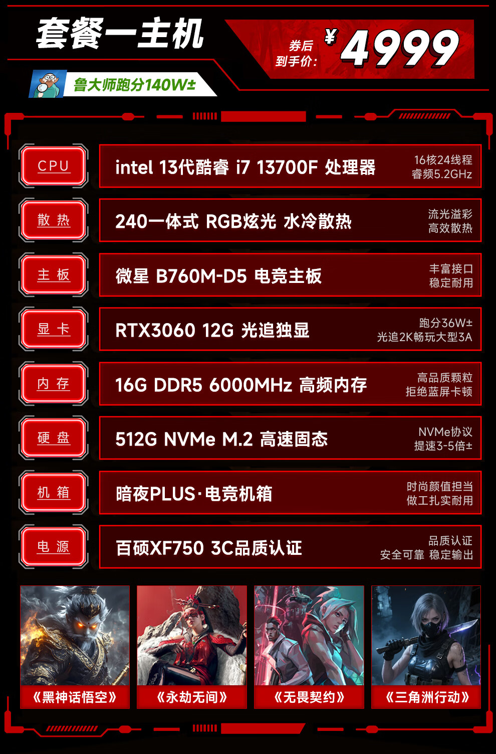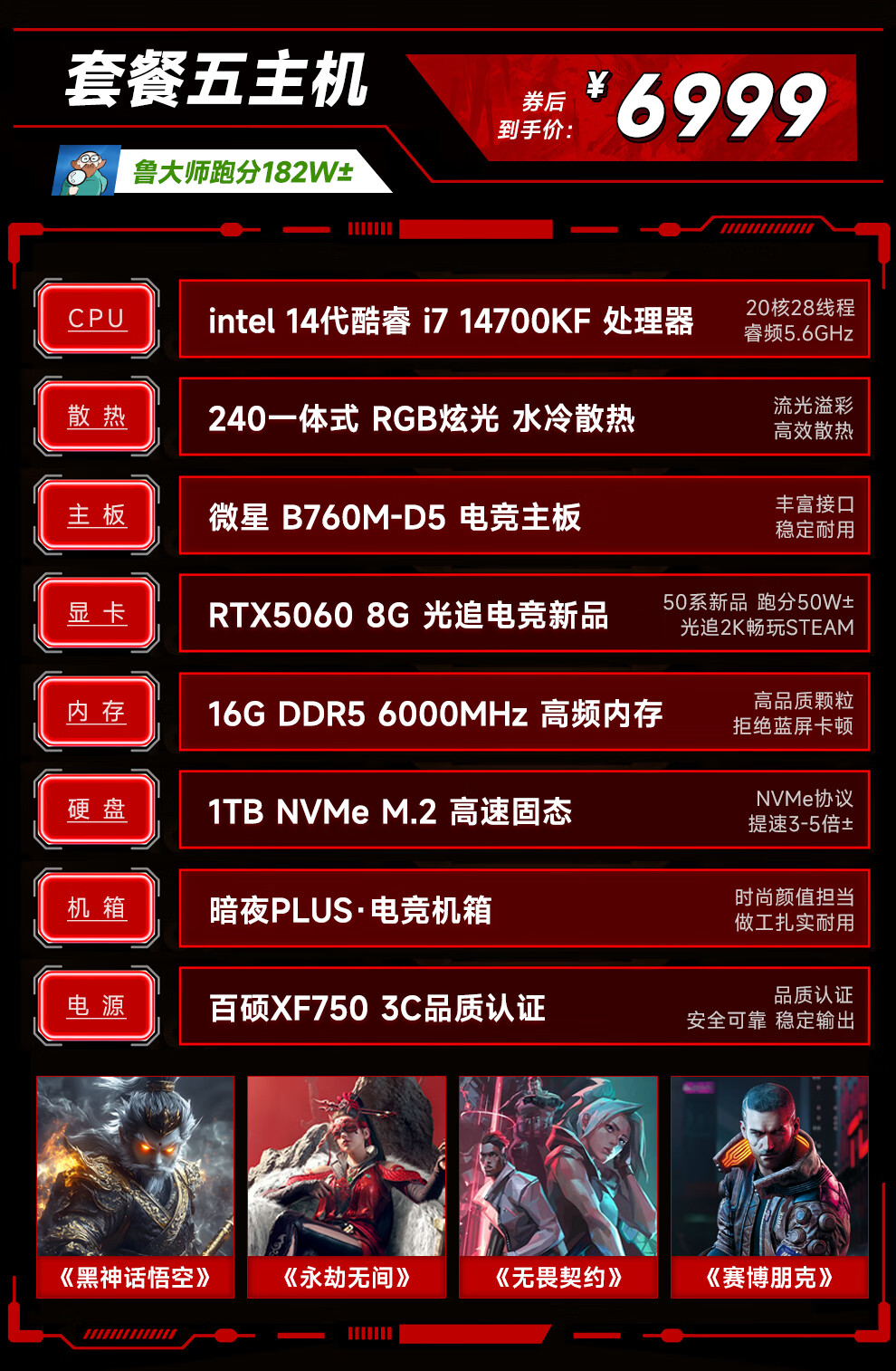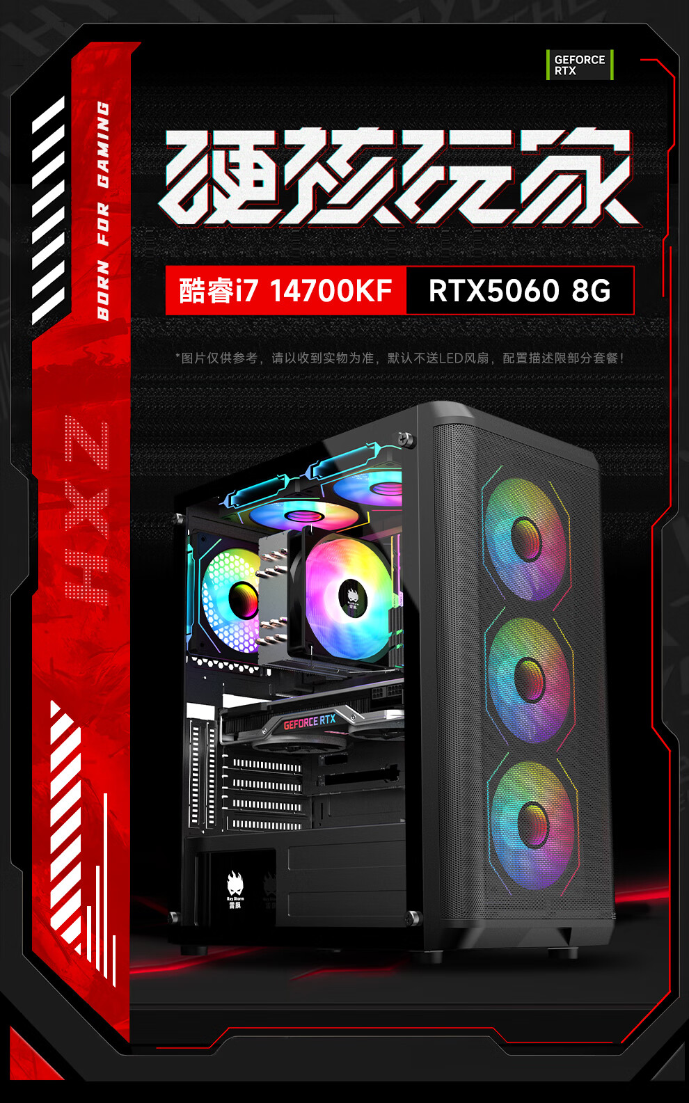 Navigator Intel 14th generation Core i7 14700KF/RTX3060Ti/5060 8G ray tracing graphics card e-sports game chicken desktop computer host DIY assembly complete set of five 14700KF丨RTX5060丨16G