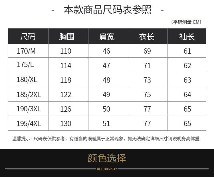 China (cm) 165 / 88-90 170 / 96-98 175 / 108-110 180 / 118-122 185 / 126-130
