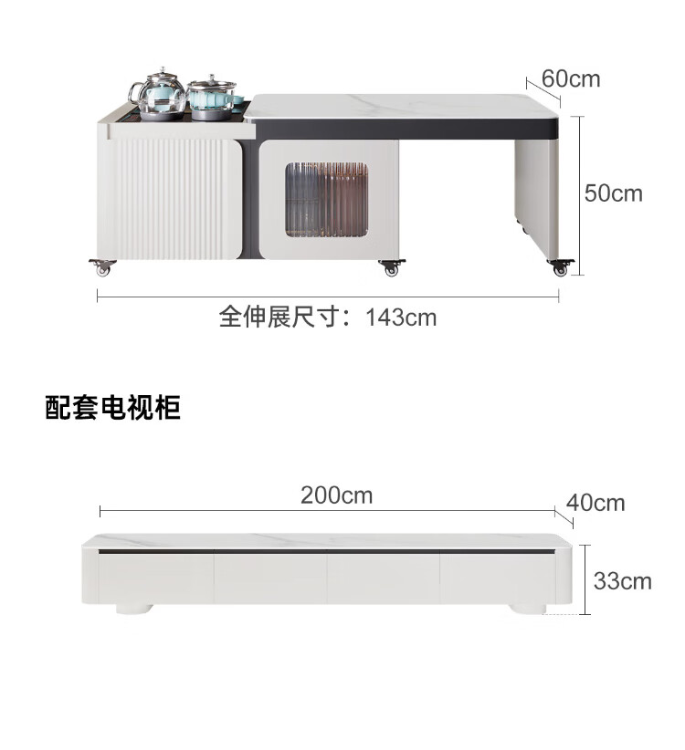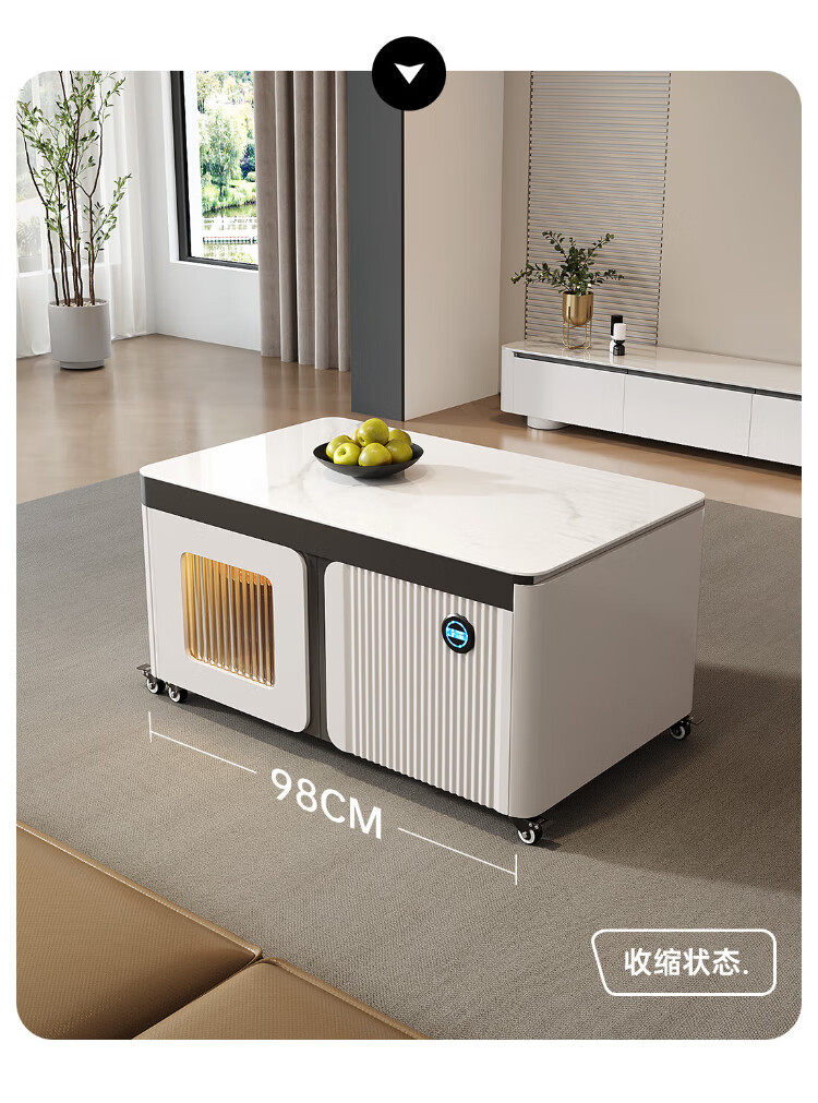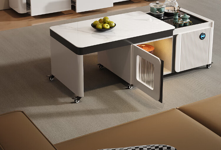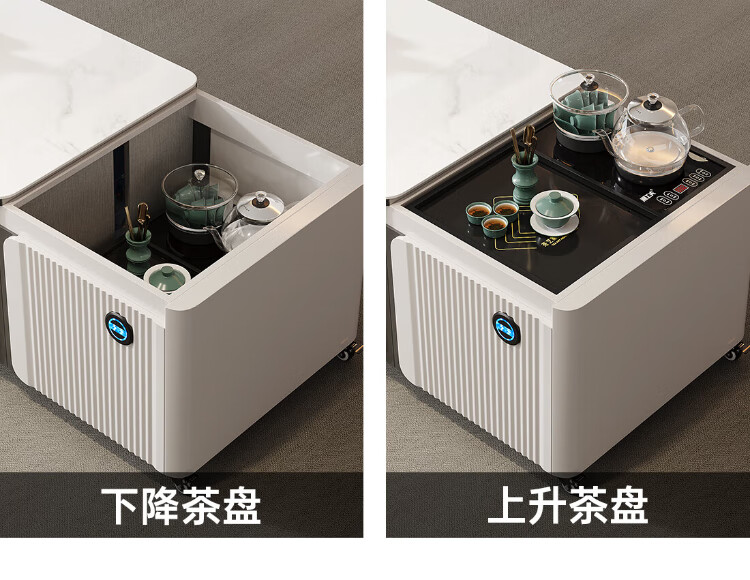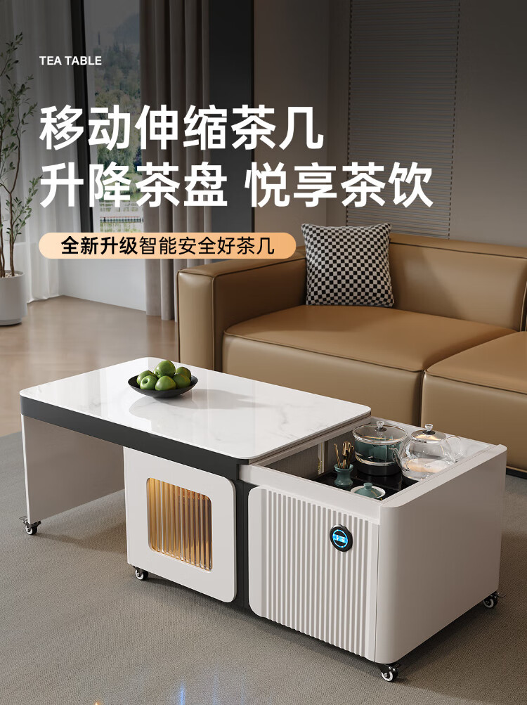Ruixinju (ruixinju) lifting telescopic slate mobile coffee table tea table living room modern simple coffee table dual-purpose kettle integrated 1 meter - 1.43 meters telescopic lifting coffee table