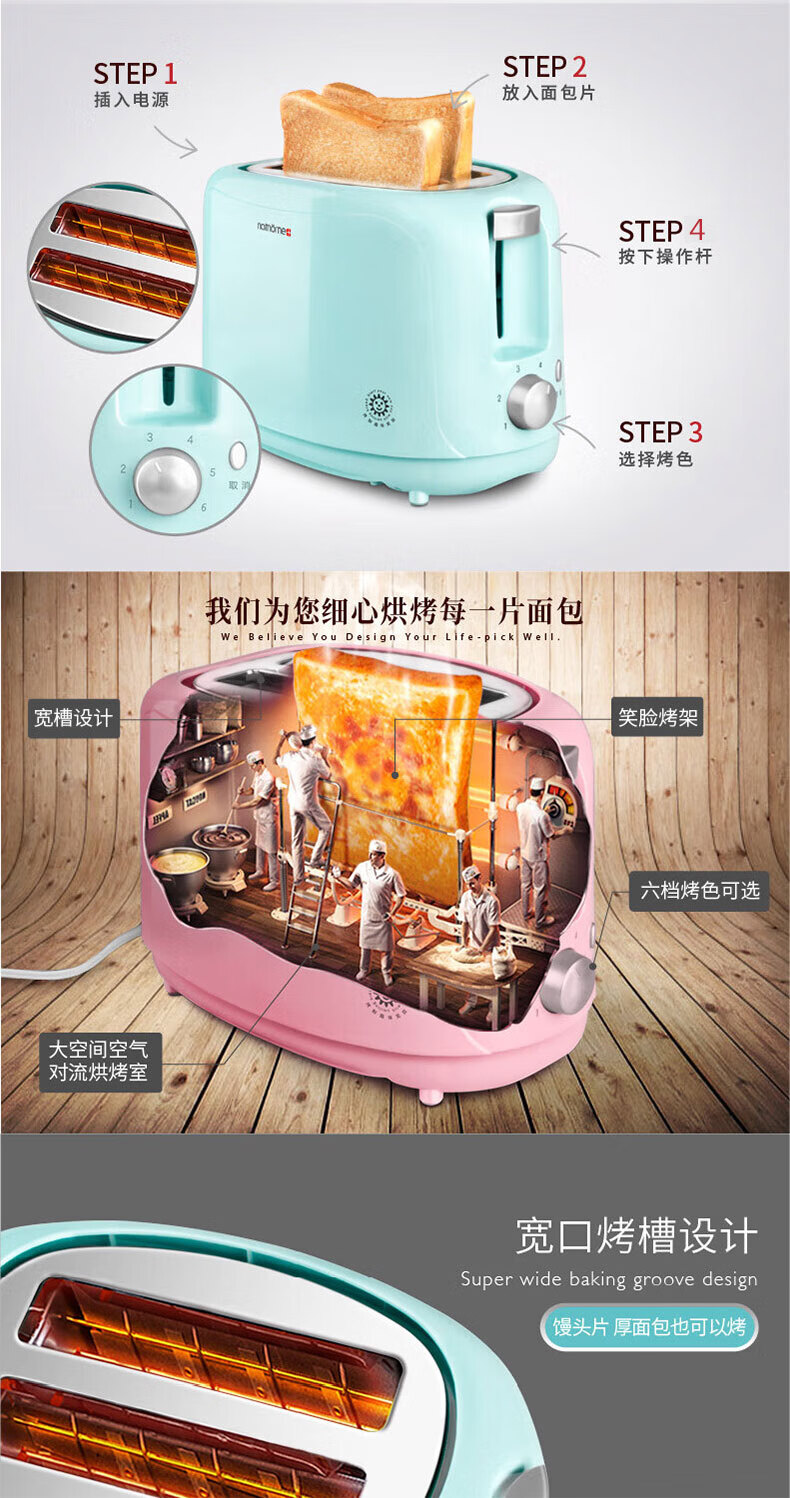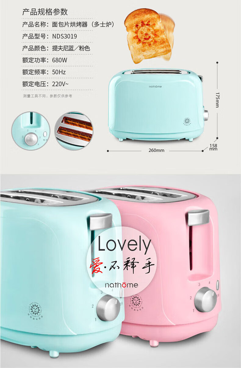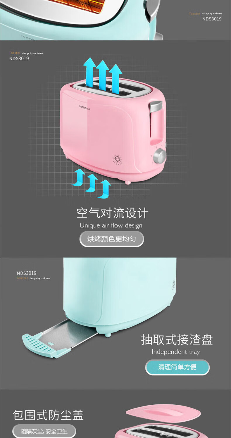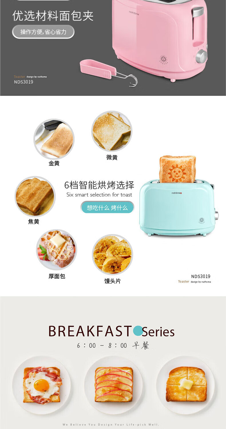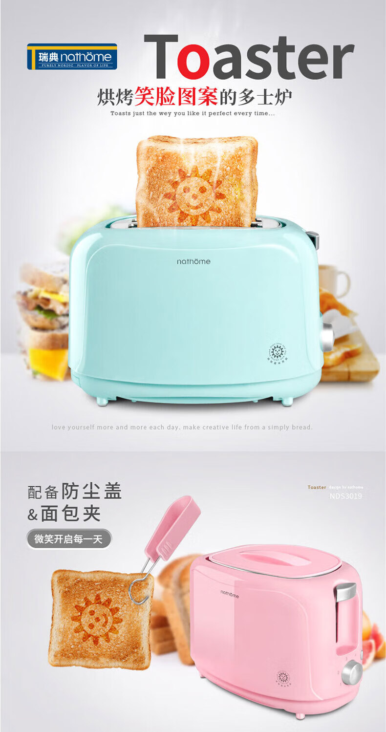 Nordic Omu (nathome) bread machine toaster breakfast toaster 2 slices household multifunctional light food machine 6-speed baking with dustproof blue NDS3019