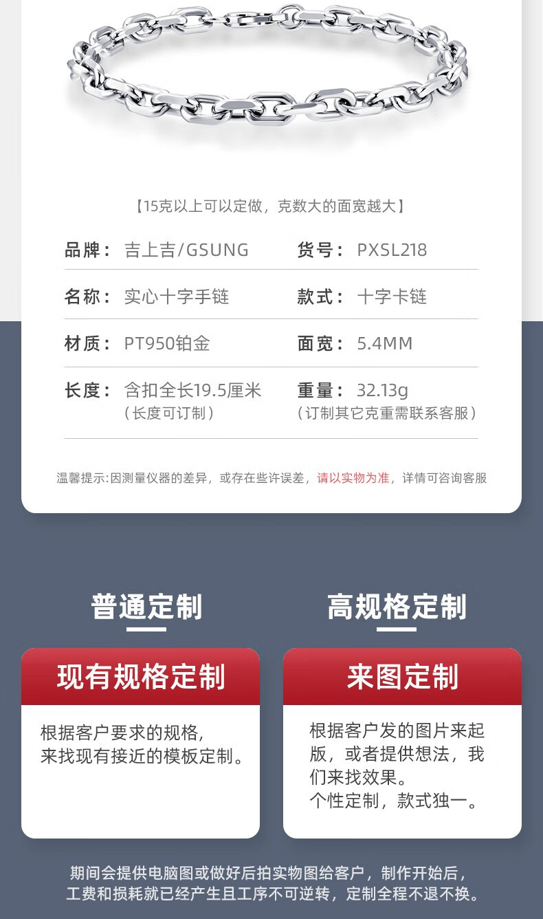 GsunG platinum men's bracelet PT950 cross buckle bracelet platinum women's O-shaped bracelet platinum PT950 bracelet priced by the gram