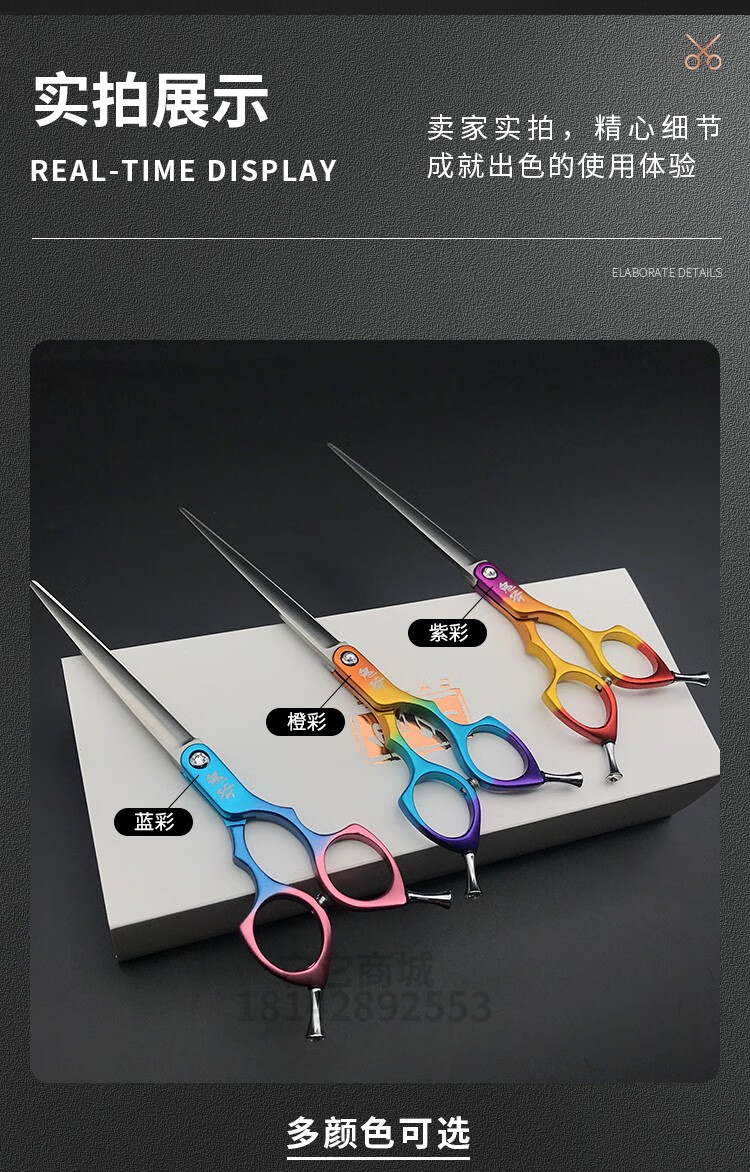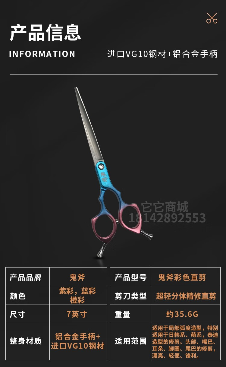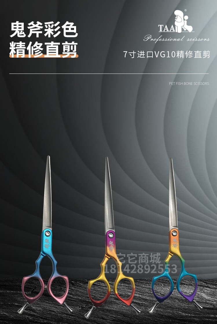 TAAtaa Ghost Ax Pet Grooming Scissors Finely Repaired 7-inch Color Small Straight Cut Japan Imported VG10 High Carbon Steel Blue Color