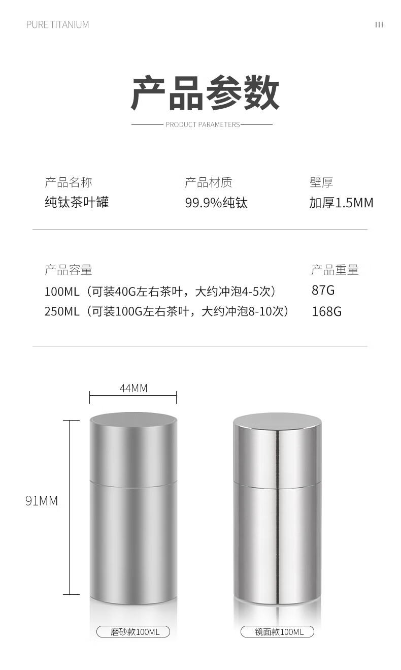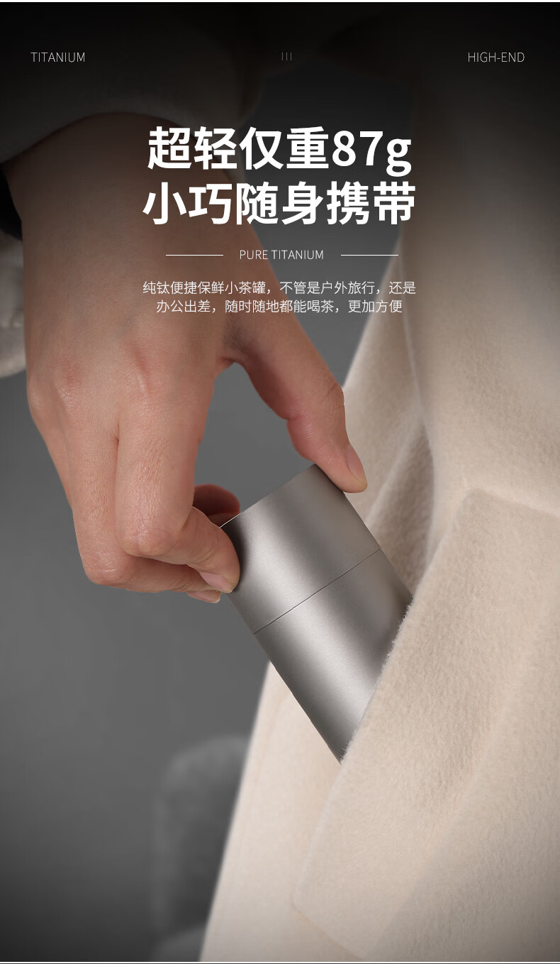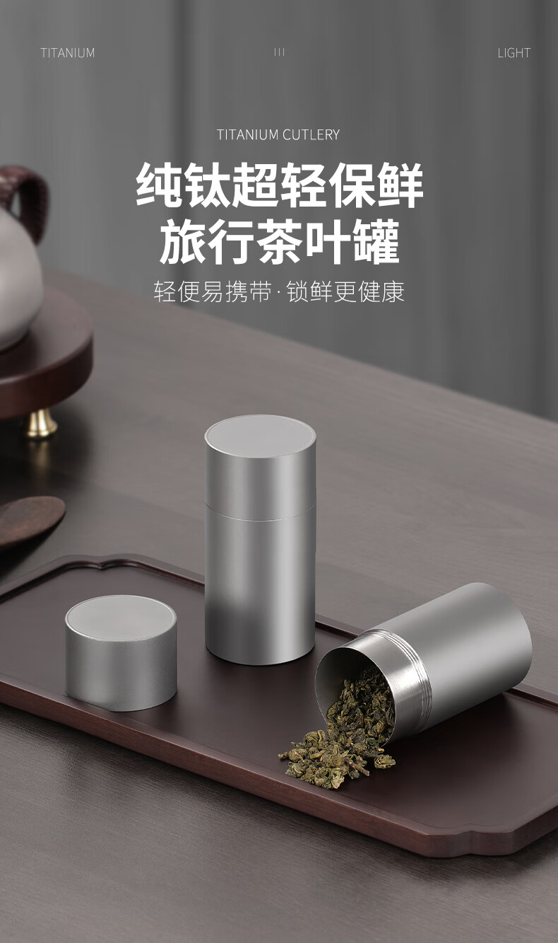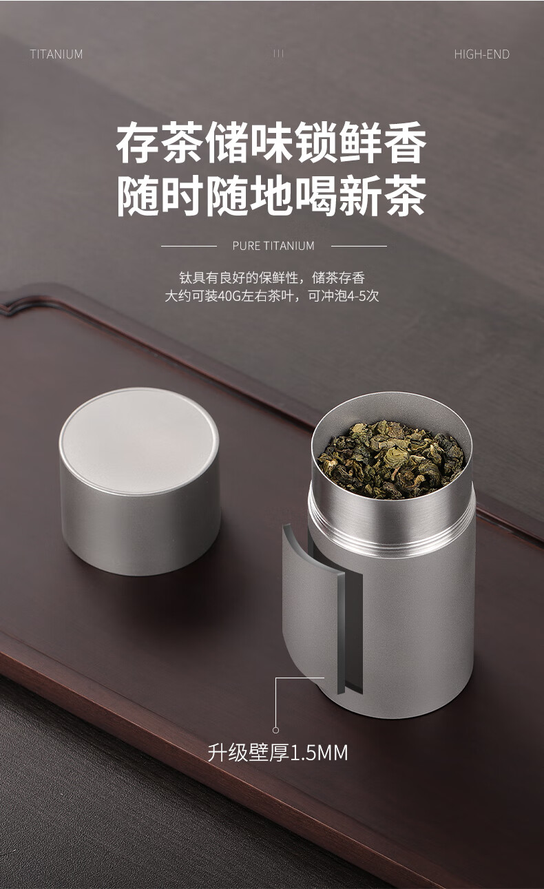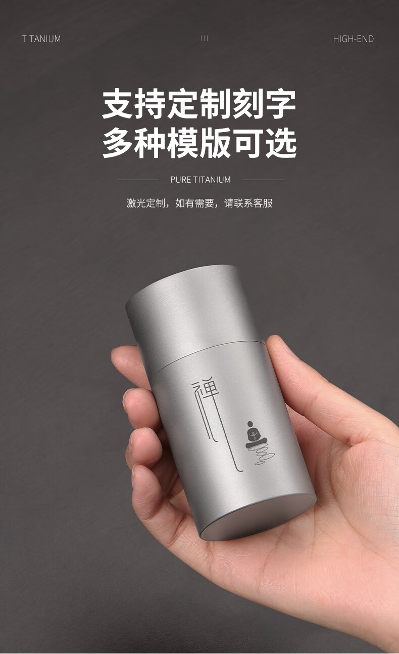 Deshanfei pure titanium portable small tea can Pu'er tea can empty can titanium metal travel outdoor sealed can portable tea box tea can 100ML-Zen frosted style