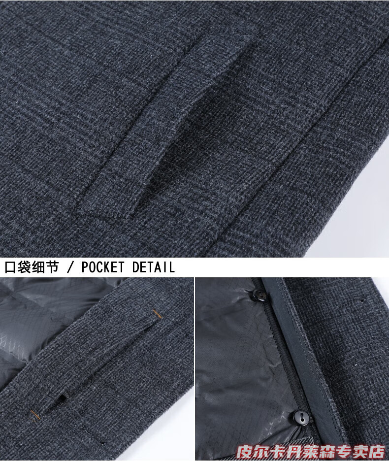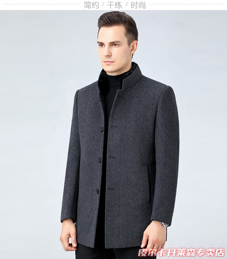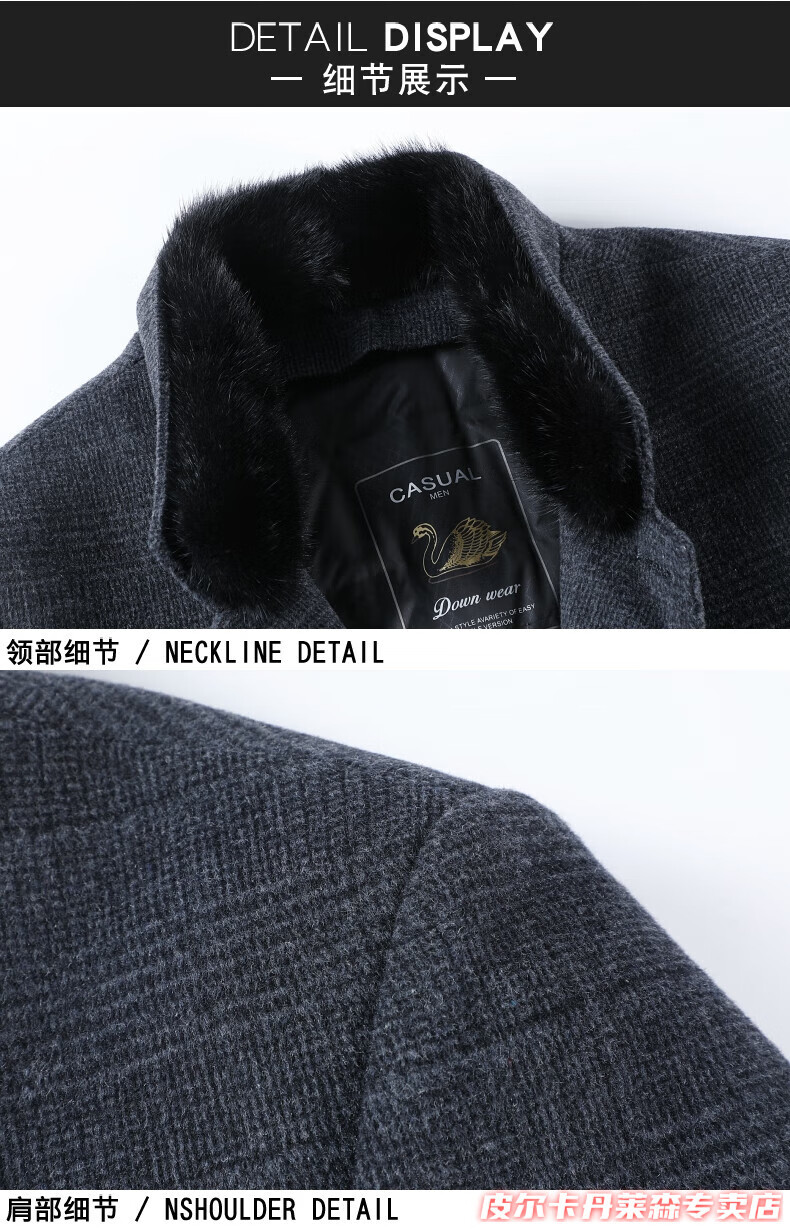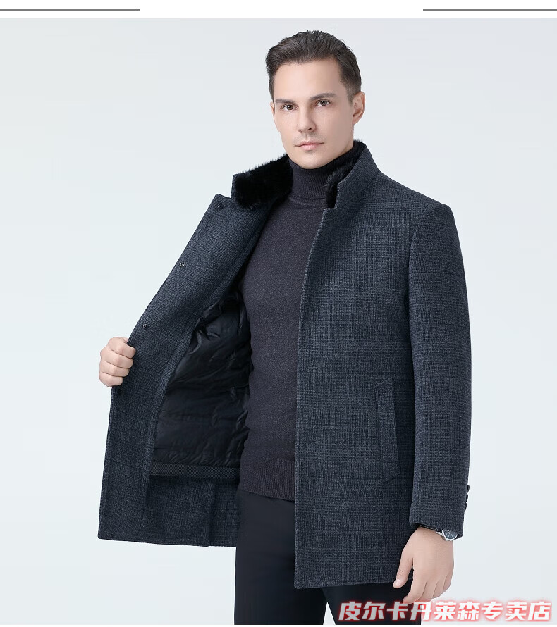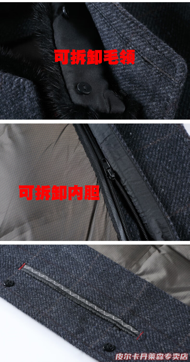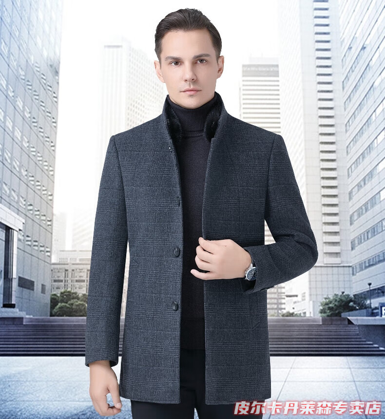 Pierre Cardin double-sided mink fur stand-collar wool coat for men, mid-length removable down liner warm cashmere coat 2289-25 - Gray L (175) size - Recommended weight 130-140 Jin Jin is equal to 0.5 kg