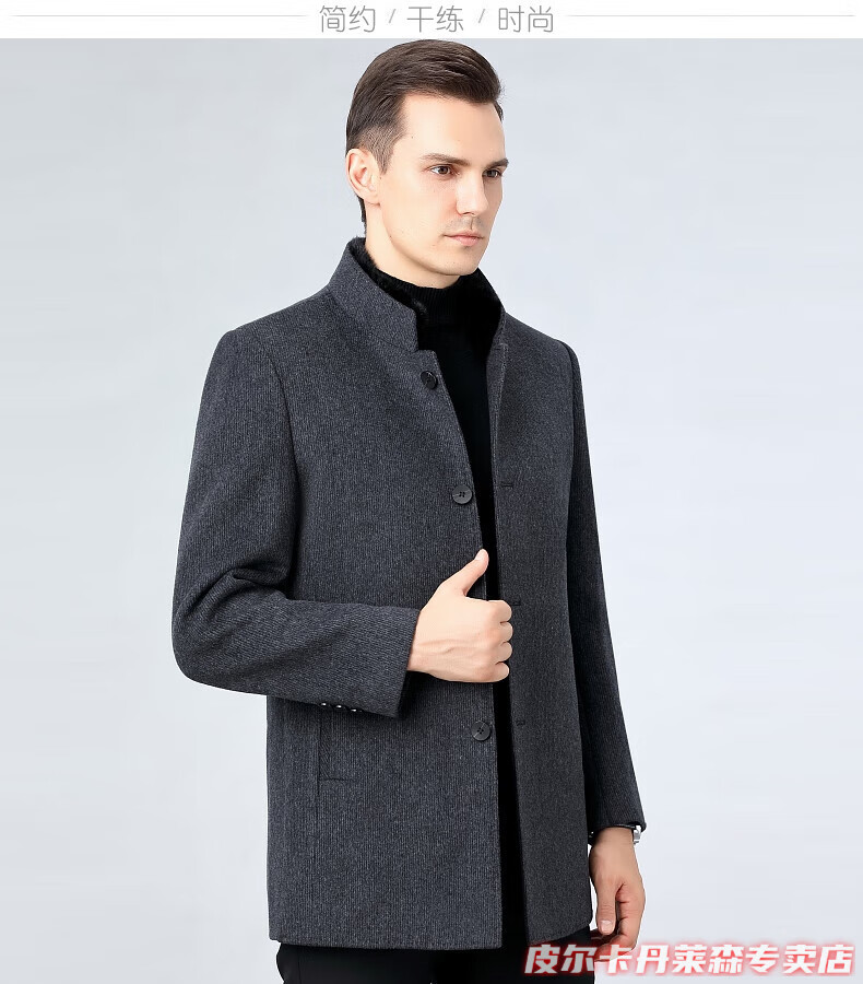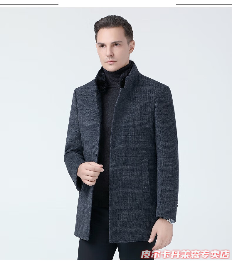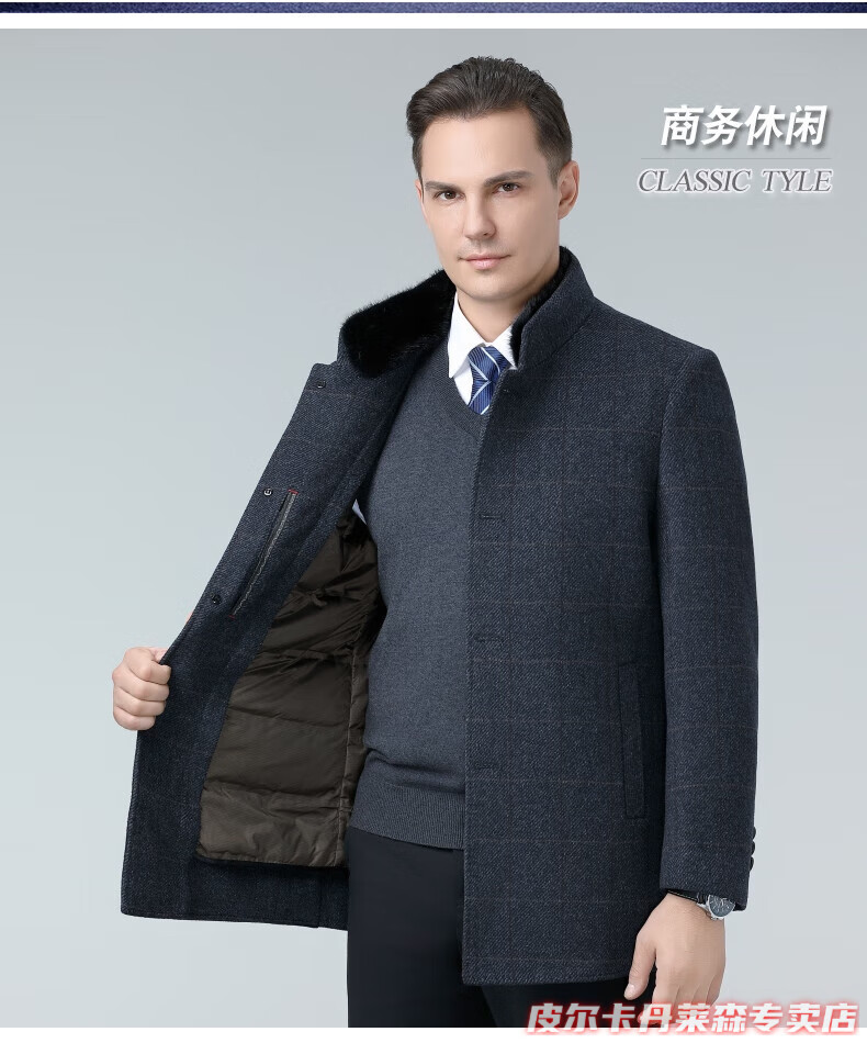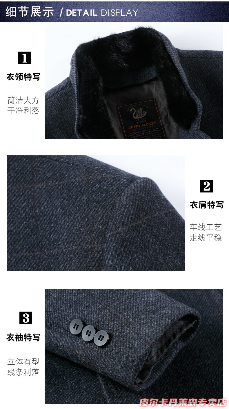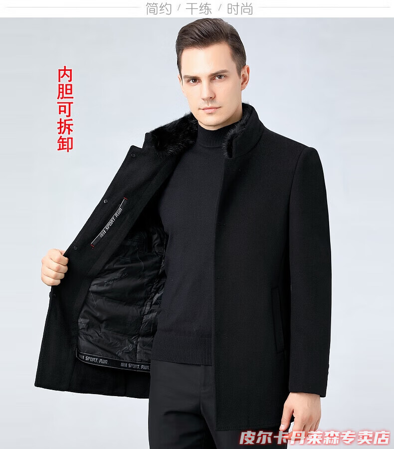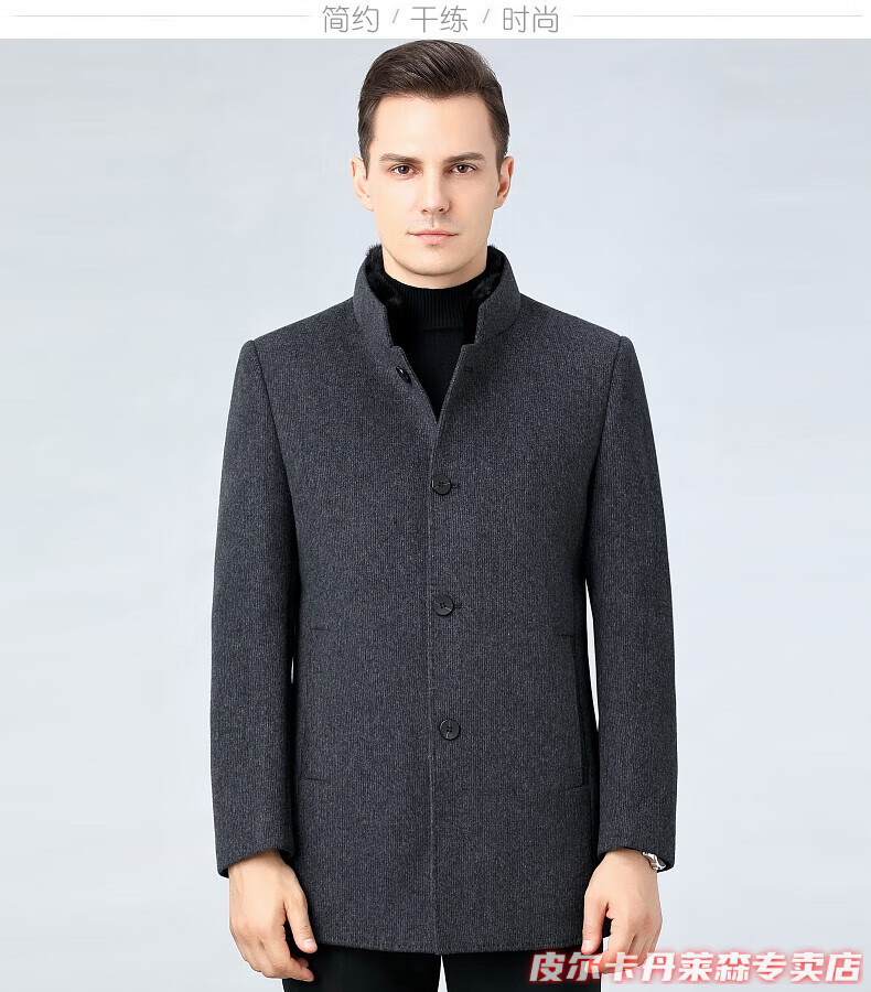 Pierre Cardin double-sided mink fur stand-collar wool coat for men, mid-length removable down liner warm cashmere coat 2289-25 - Gray L (175) size - Recommended weight 130-140 Jin Jin is equal to 0.5 kg