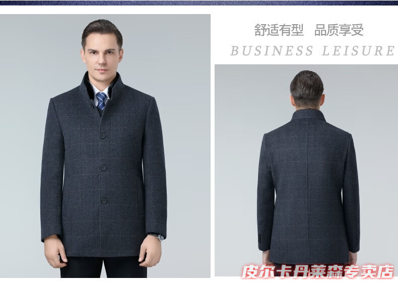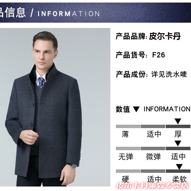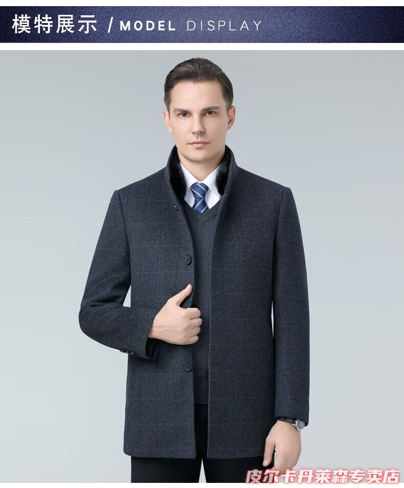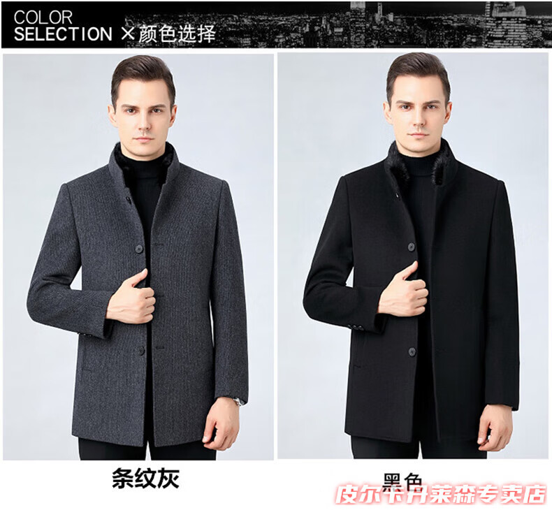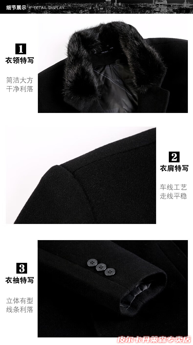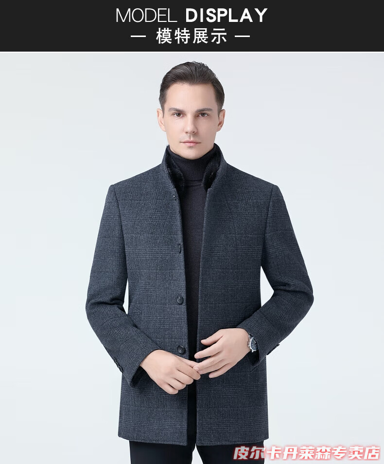 Pierre Cardin double-sided mink fur stand-collar wool coat for men, mid-length removable down liner warm cashmere coat 2289-25 - Gray L (175) size - Recommended weight 130-140 Jin Jin is equal to 0.5 kg