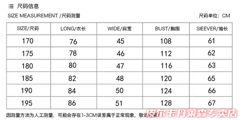 China (cm) 165 / 88-90 170 / 96-98 175 / 108-110 180 / 118-122 185 / 126-130