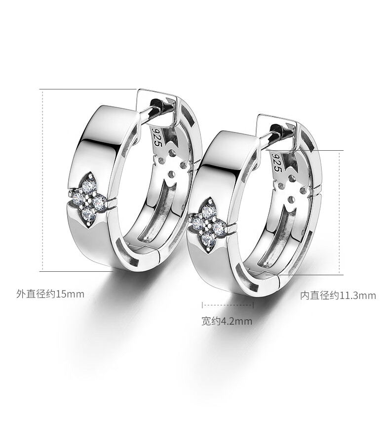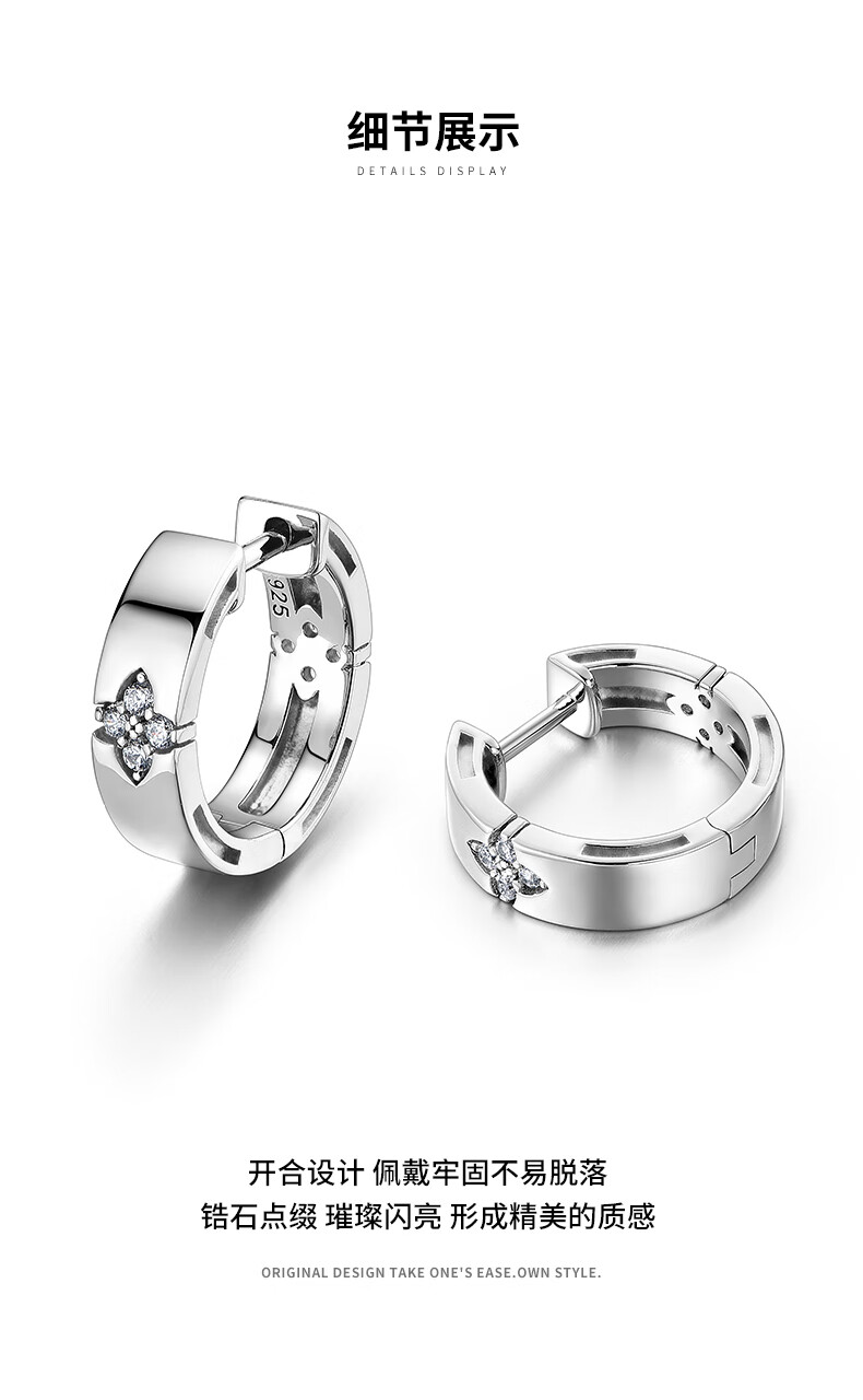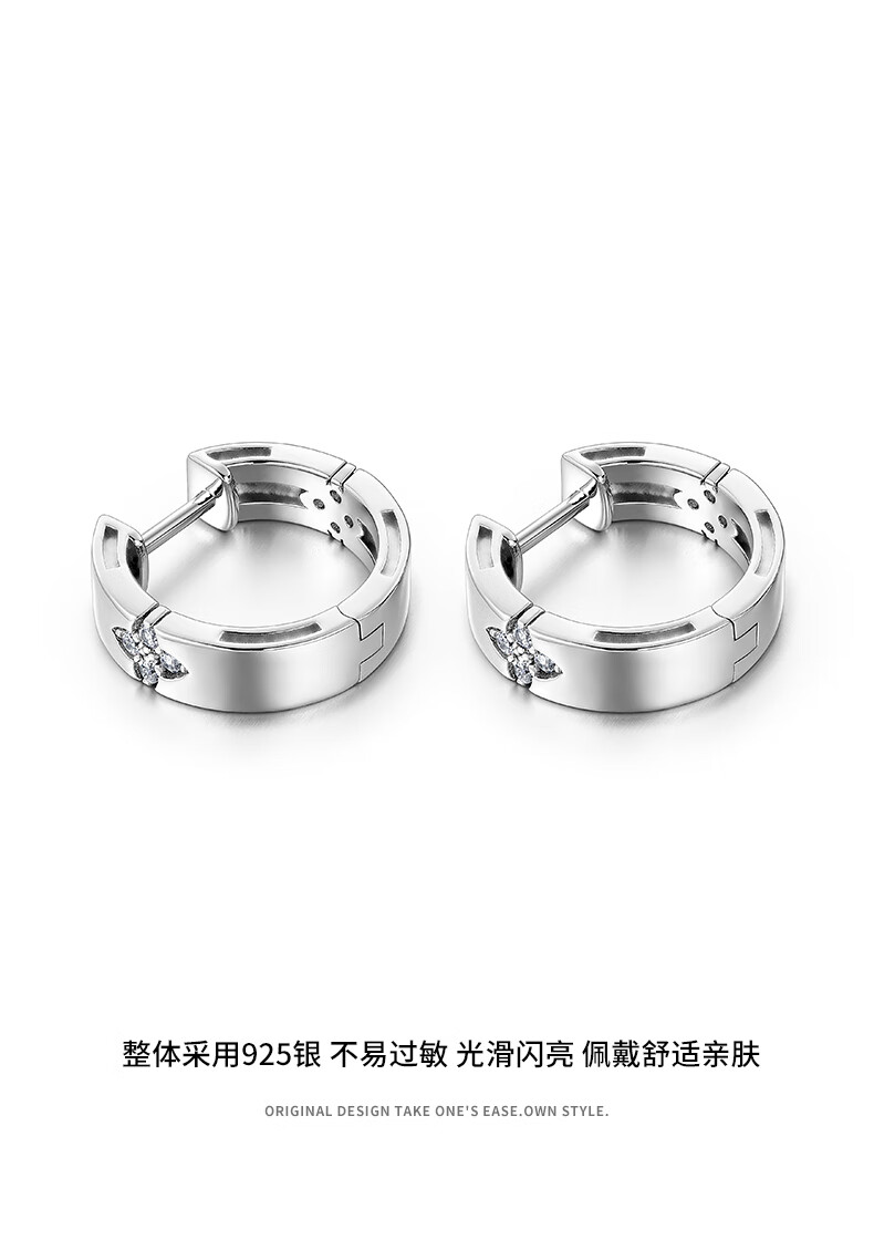 Mingyang Zhuhai 925 silver four-leaf clover earrings men's silver earrings trendy personality simple glossy fashion earrings a pair of earrings
