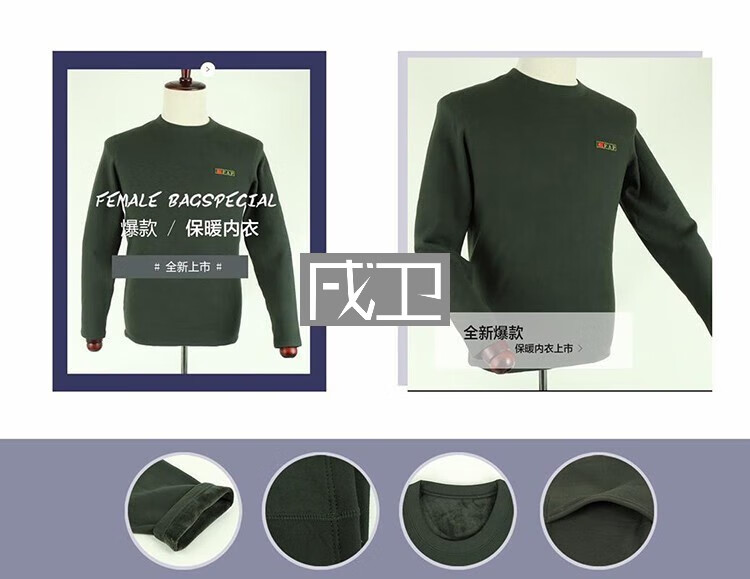 Xuwei New Winter Warm Underwear Men's Round Neck Velvet Thickened Autumn Underwear Set in Cold Zones Five Styles Olive Green 3XL/180