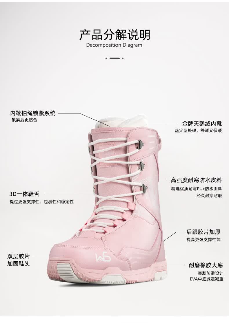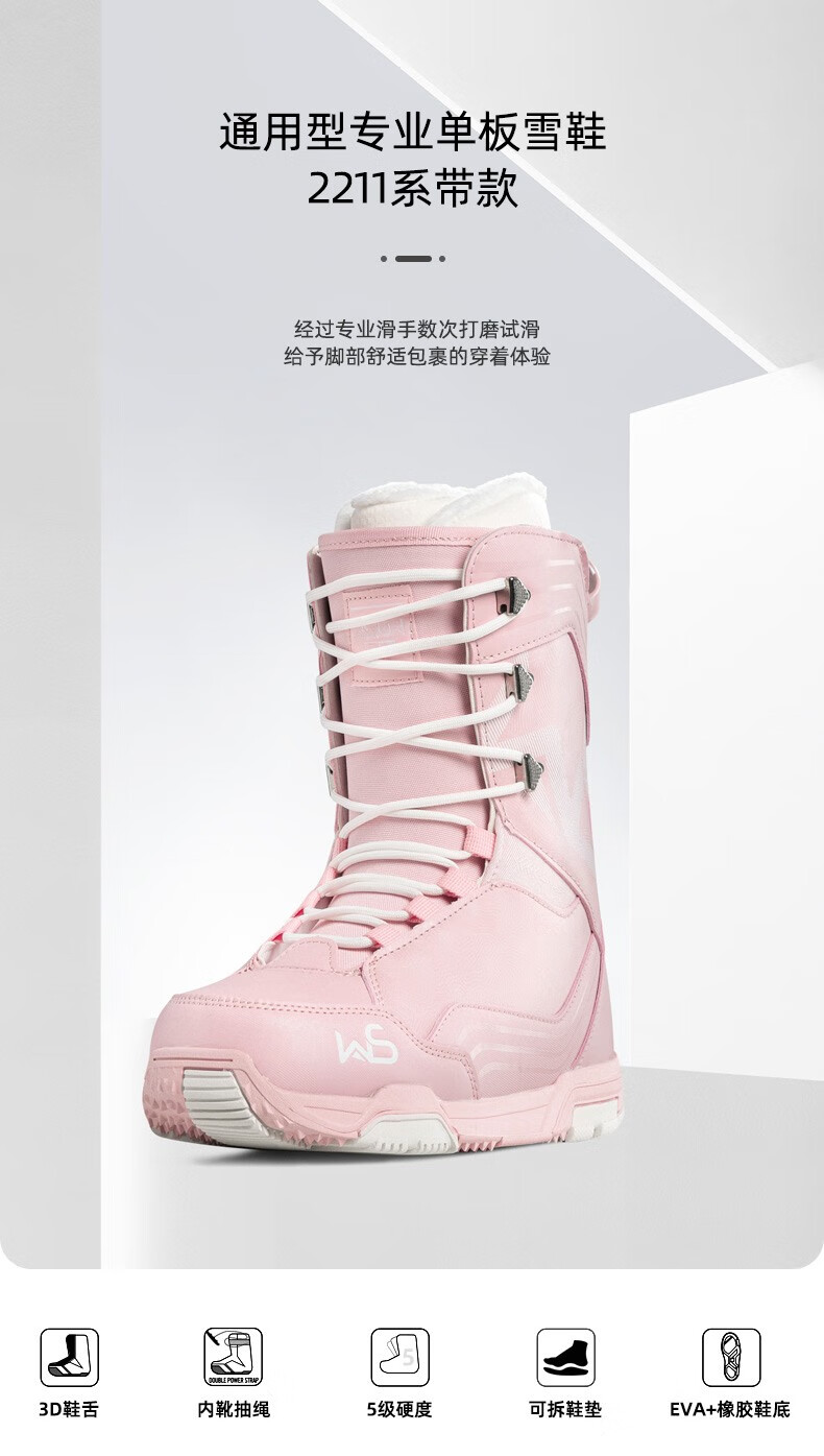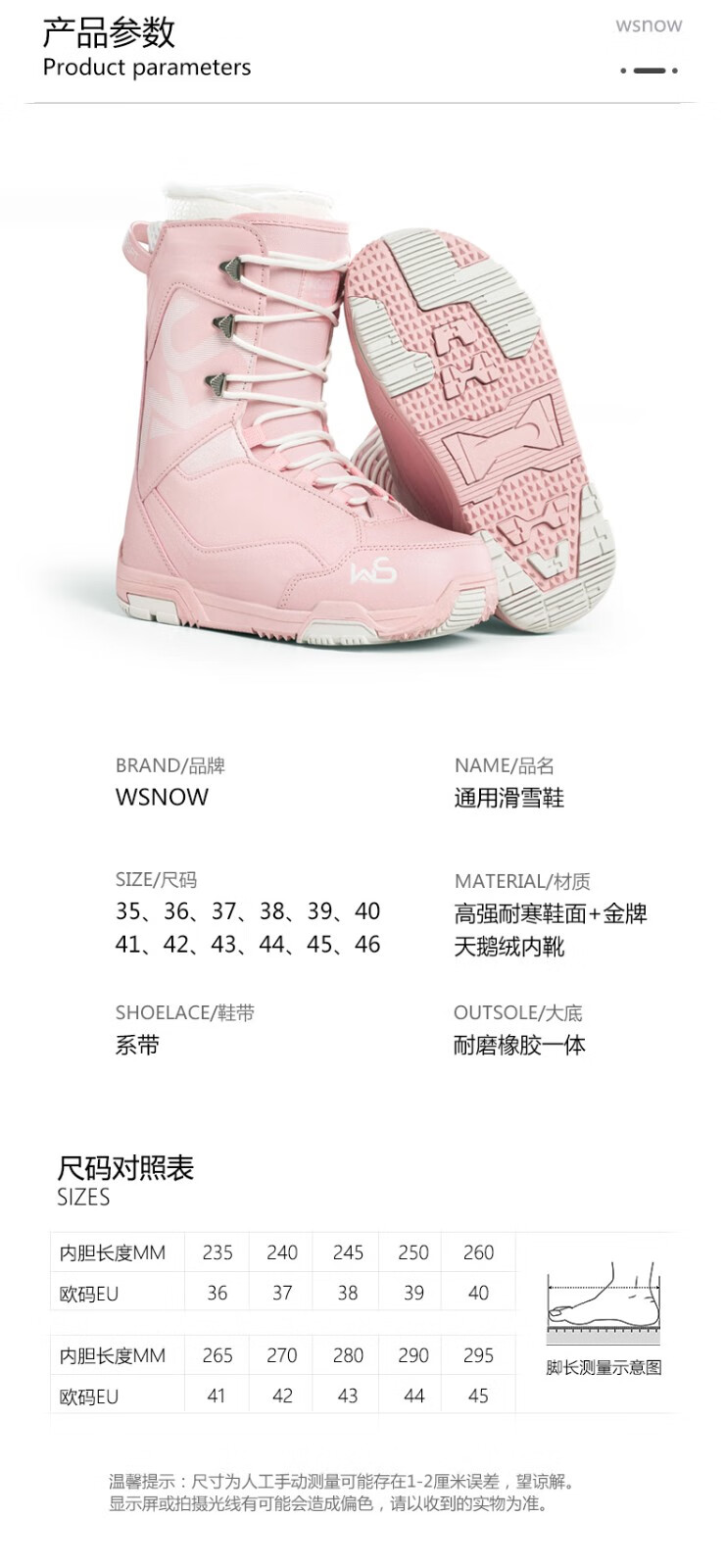 WS snowboards ski boots, snowboard lace-up snow shoes, novice advanced snowboard shoes for women, flat carved all-purpose ski boots to keep warm, 2211 ski boots, size 35