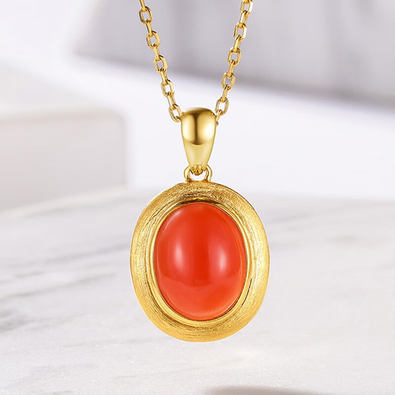 Meluxe yellow 18K gold coral pendant red natural coral pendant birthday gift for wife and mother 8*10mm (with silver chain)