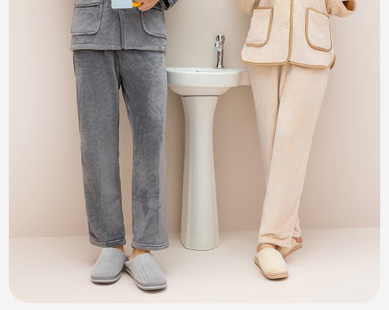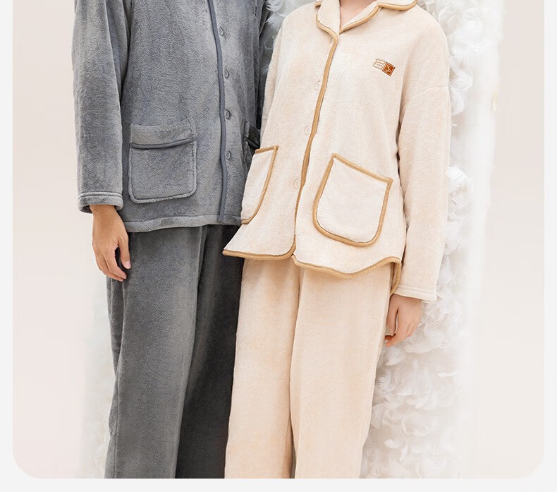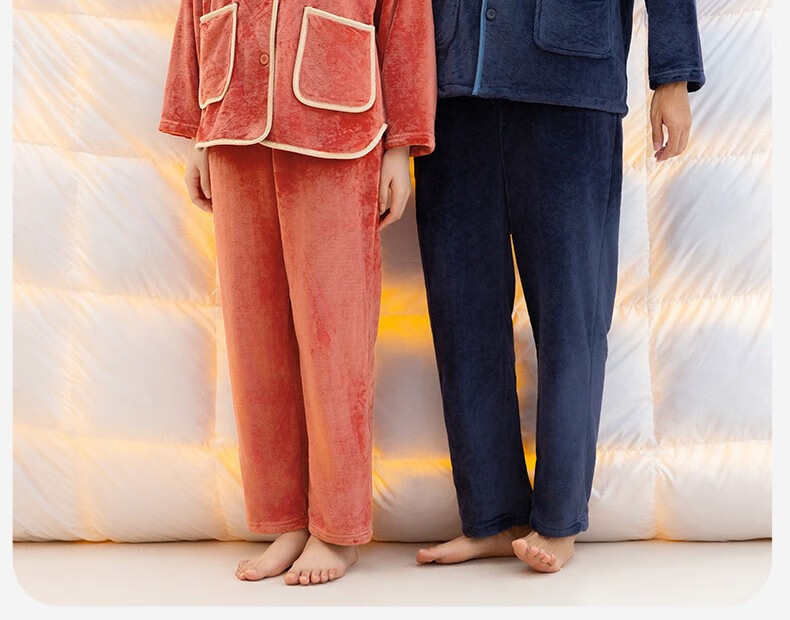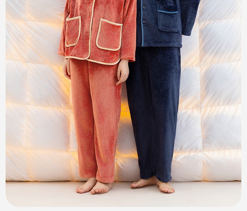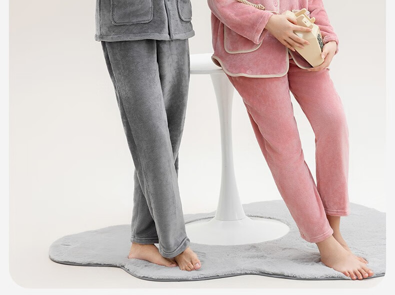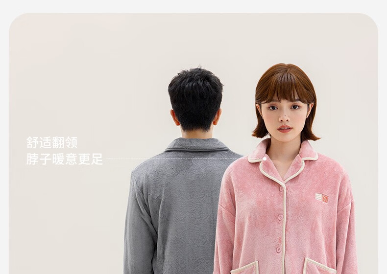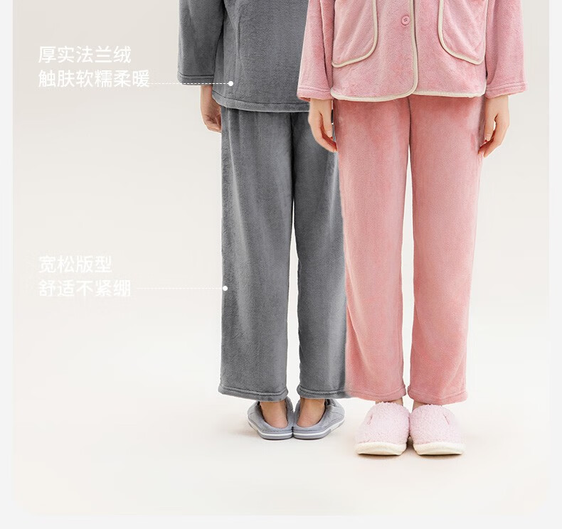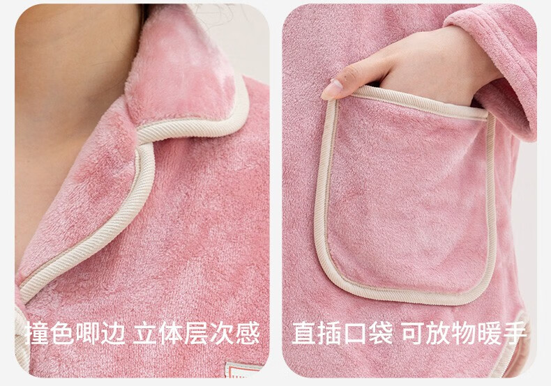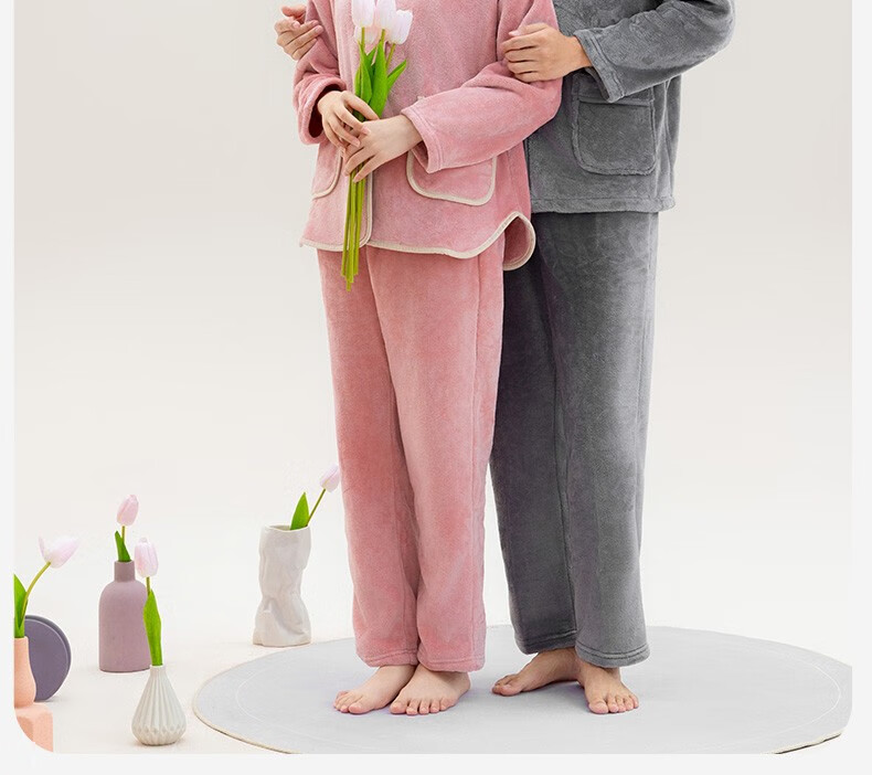 Qiulu Couple Pajamas Women's Winter Coral Velvet Thickened Flannel Warm Casual Men's Home Clothing Set Pink (Female 54) XXL