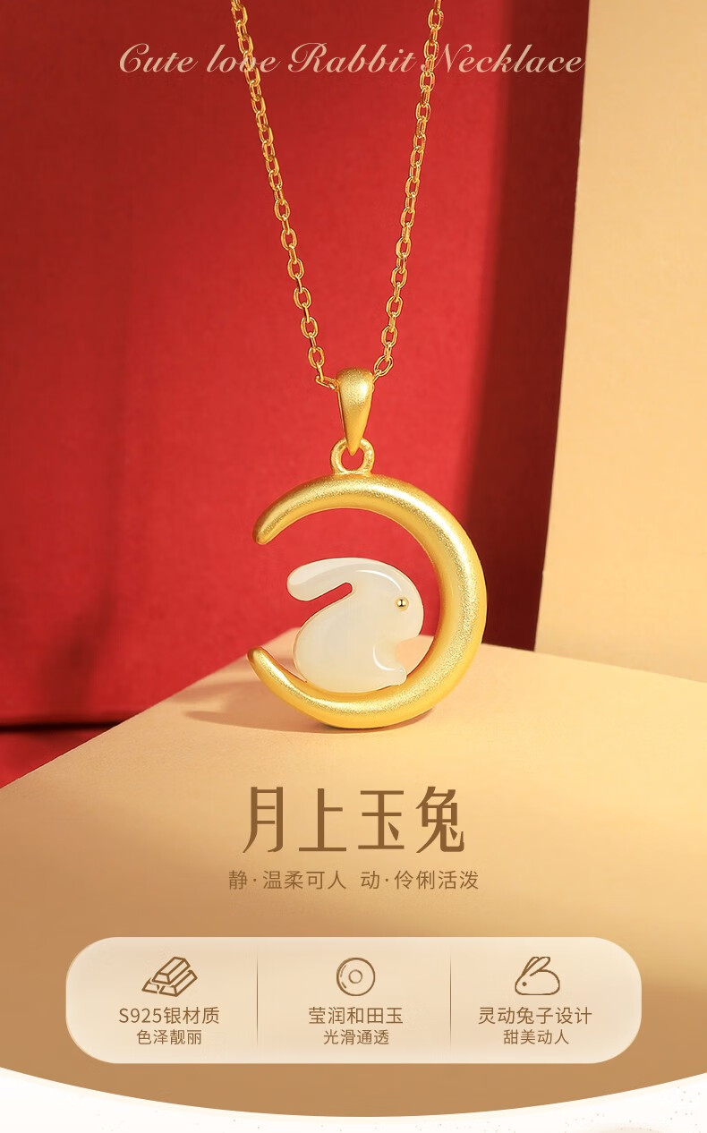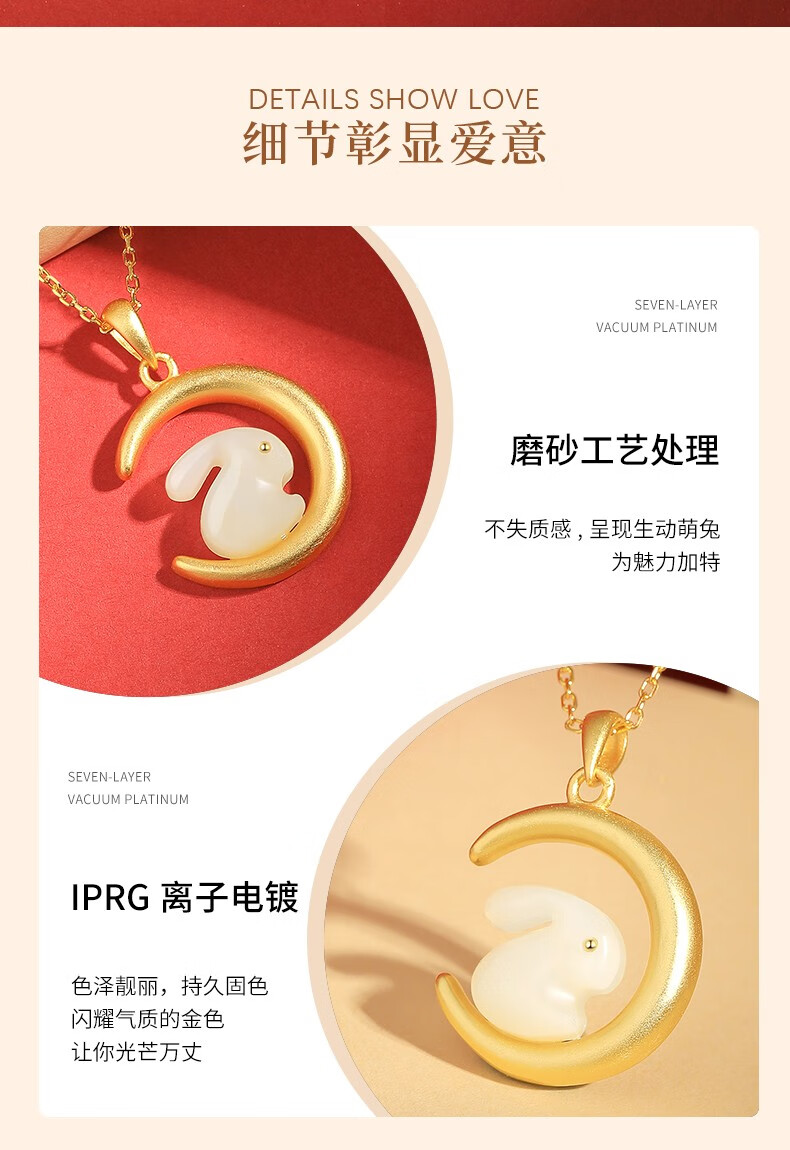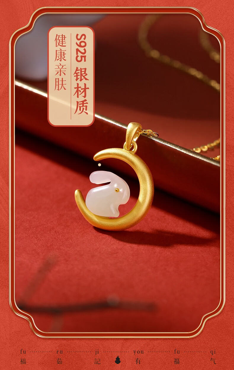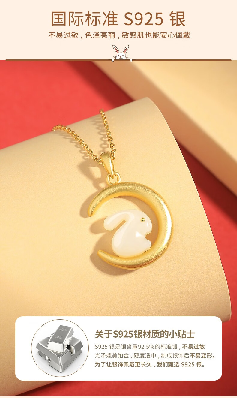 Gin Qianhui 925 silver necklace for women 2025 new Hetian Jade Rabbit Pendant Jewelry Valentine's Day Birthday Gift for Girlfriend Moon Jade Rabbit Necklace + Jewelry Certificate Exquisite Gift Box