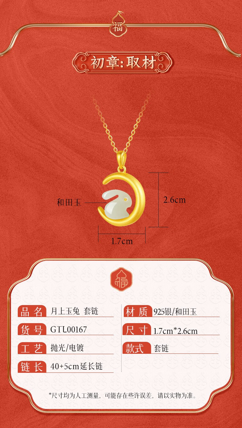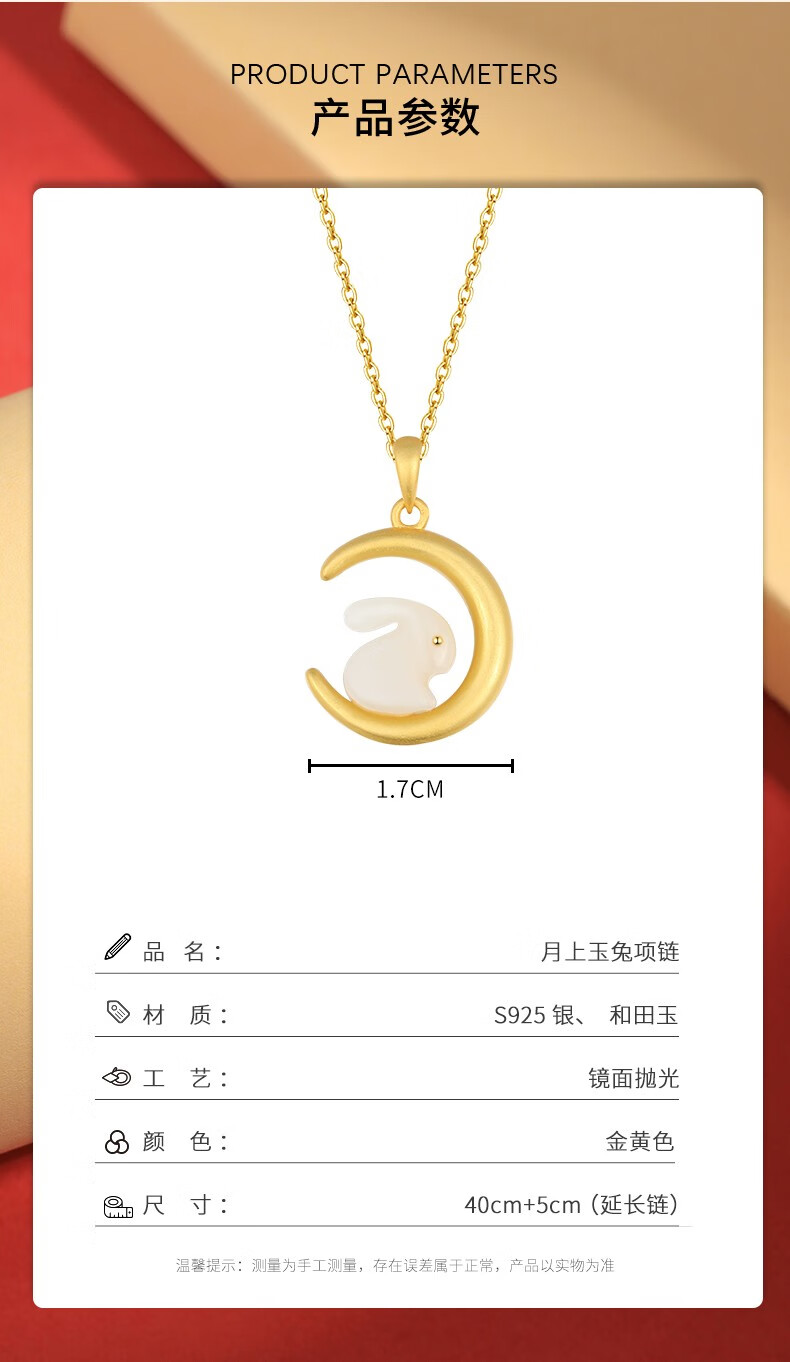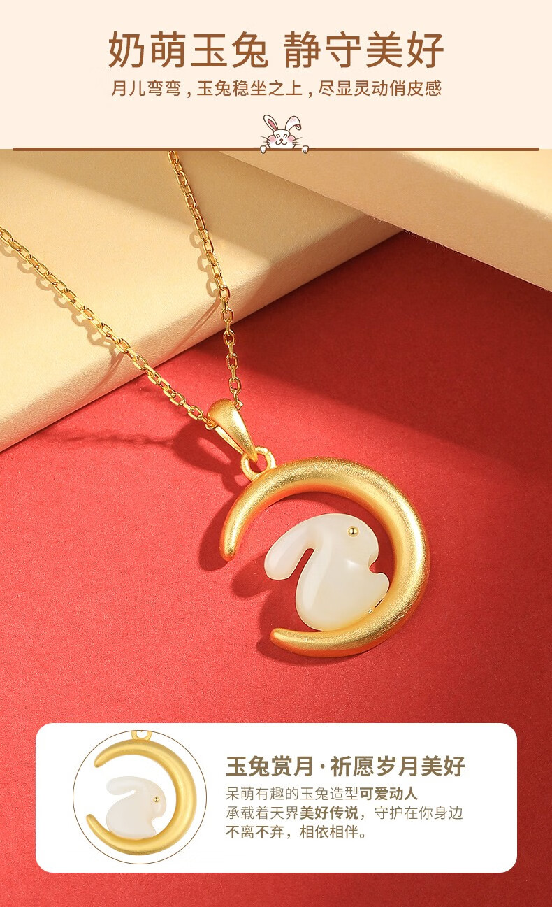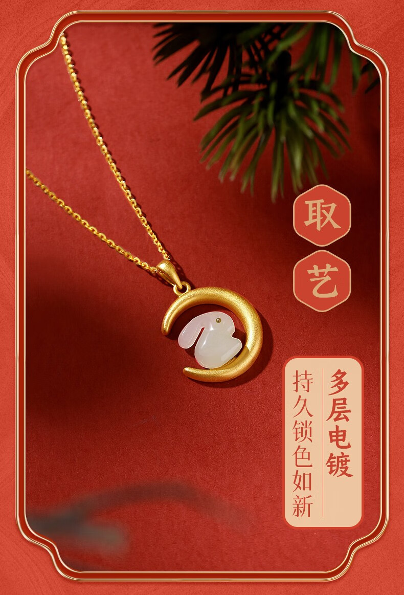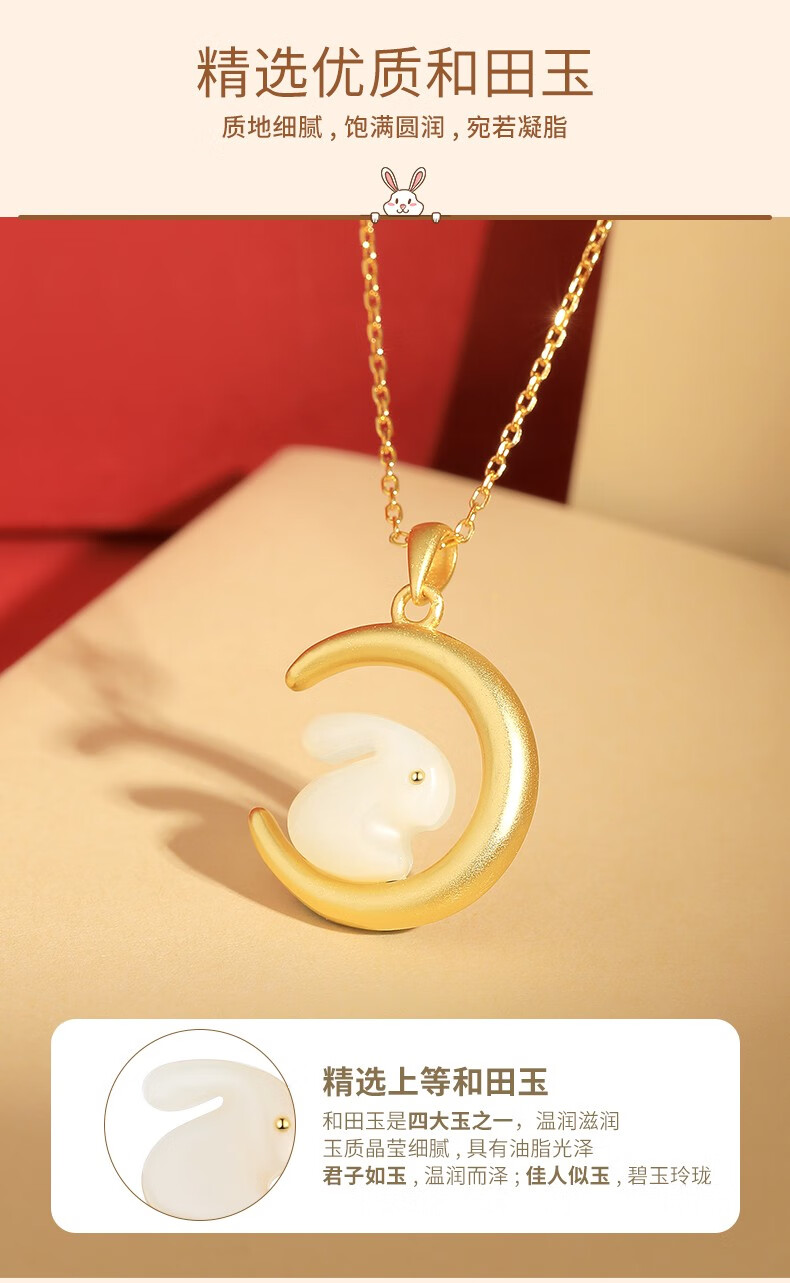 Gin Qianhui 925 silver necklace for women 2025 new Hetian Jade Rabbit Pendant Jewelry Valentine's Day Birthday Gift for Girlfriend Moon Jade Rabbit Necklace + Jewelry Certificate Exquisite Gift Box