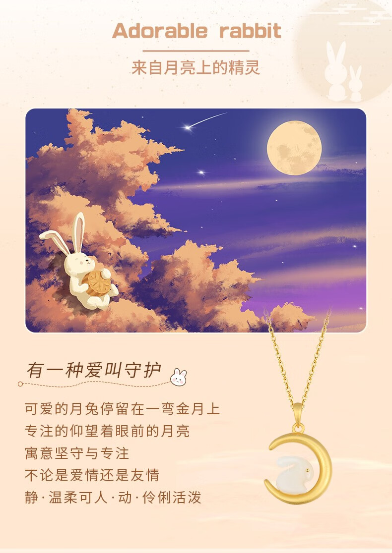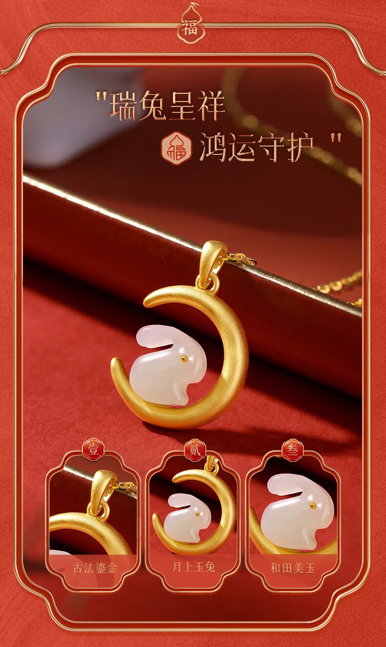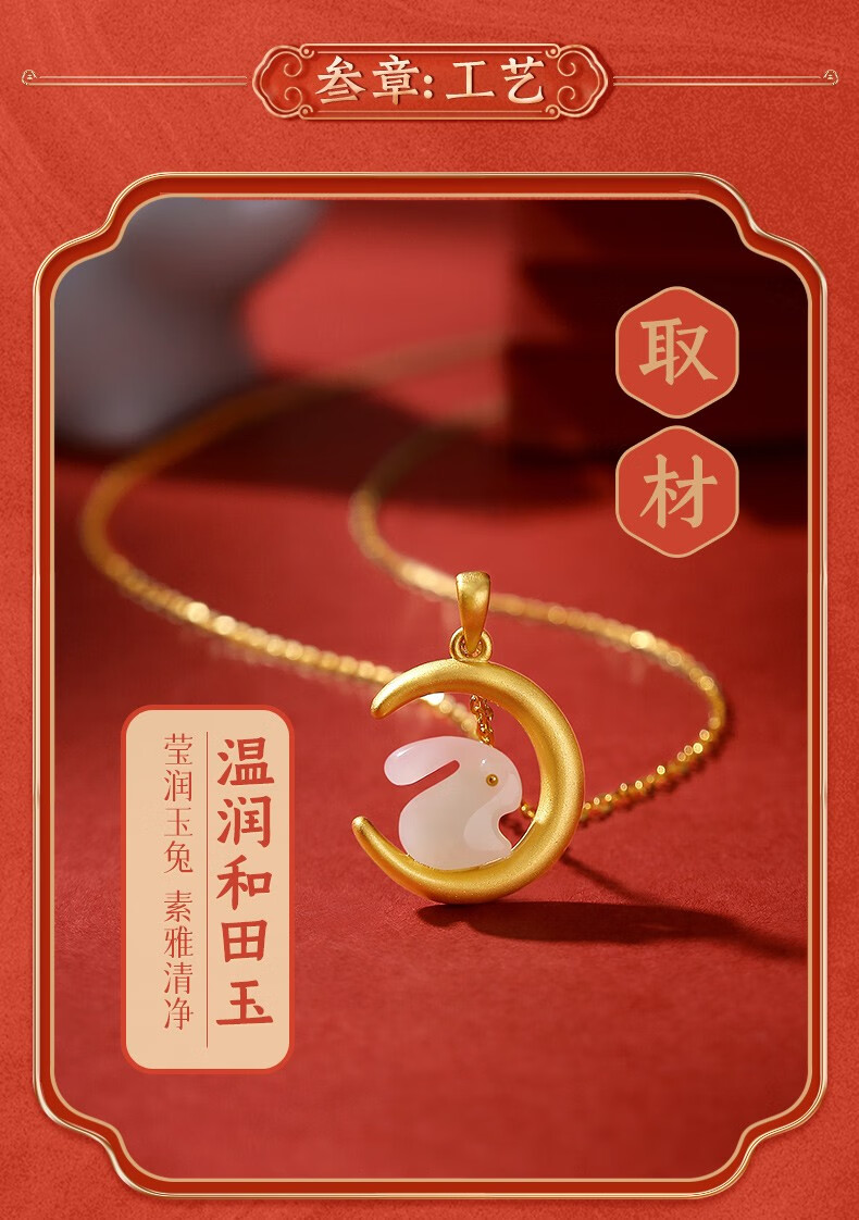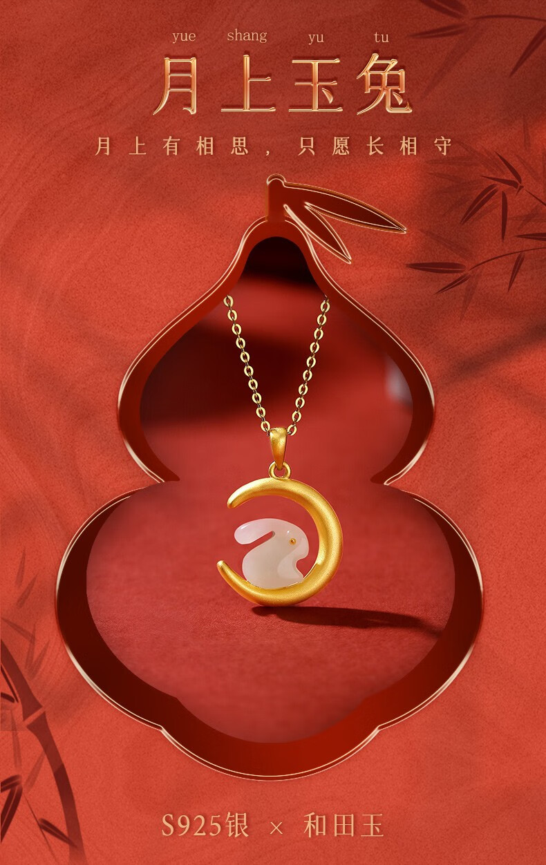 Gin Qianhui 925 silver necklace for women 2025 new Hetian Jade Rabbit Pendant Jewelry Valentine's Day Birthday Gift for Girlfriend Moon Jade Rabbit Necklace + Jewelry Certificate Exquisite Gift Box