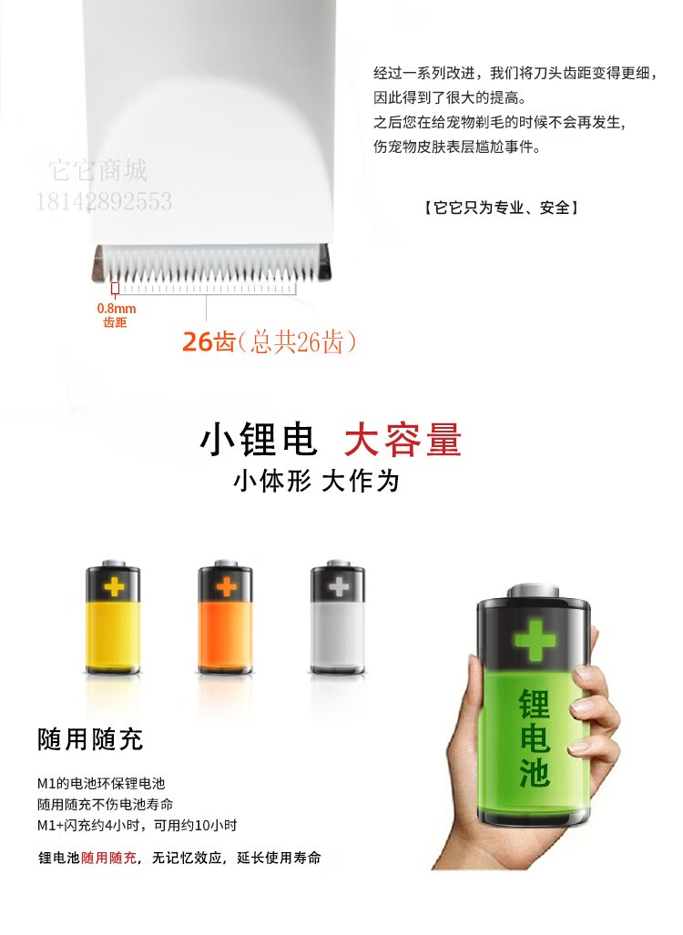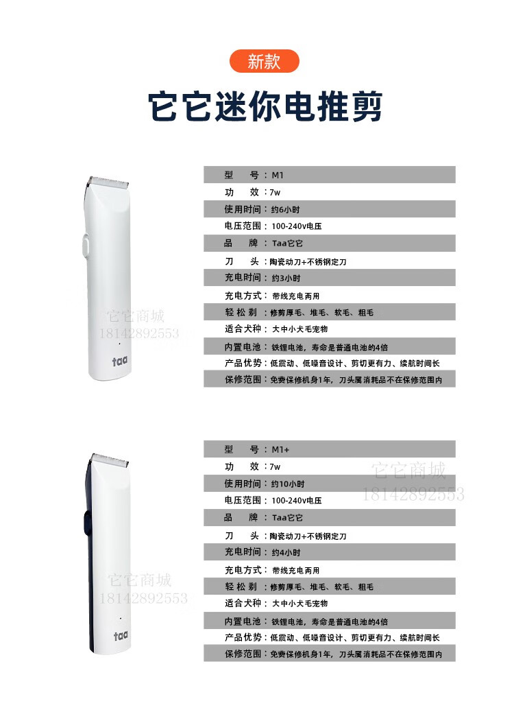 TAA Taiwan It It professional electric clipper pet M1 dog shaver electric clipper cat Teddy razor electric clipper M1 white body + 1 cutter head 6 hours of battery life