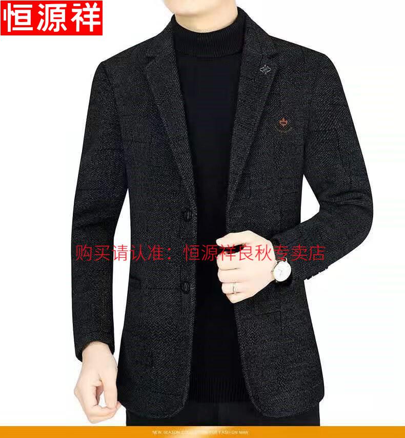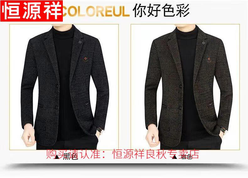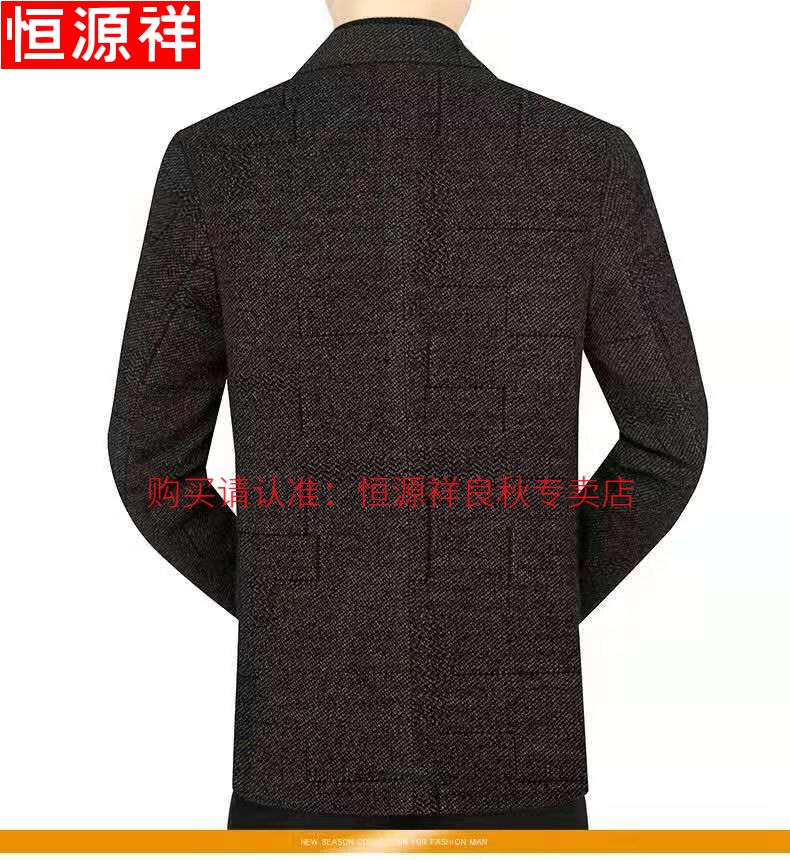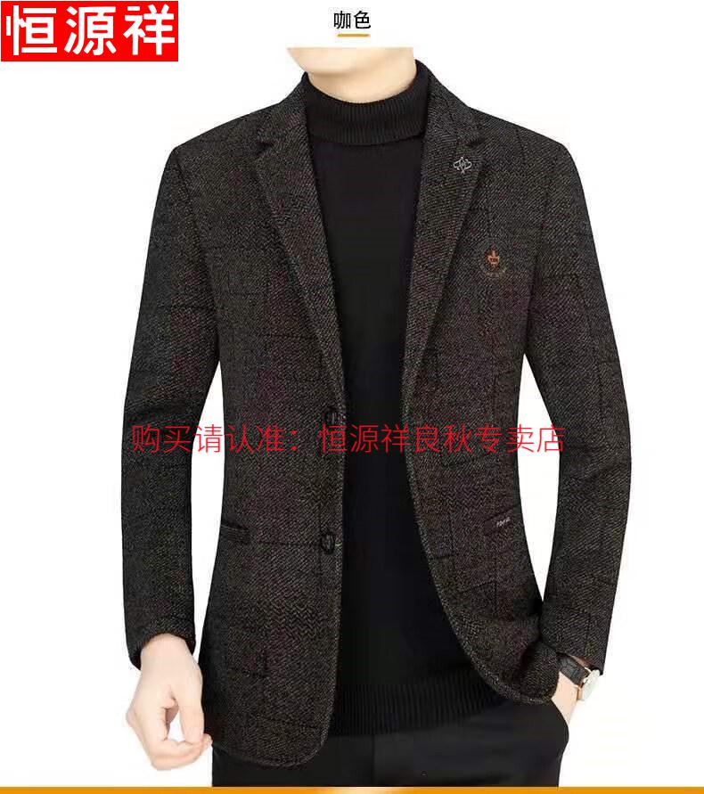 Hengyuanxiang high-end men's autumn and winter casual middle-aged men's woolen suits Nizi jackets middle-aged and elderly men's thickened suits brown woolen 175/88A 130-140Jin Jin equals 0.5 kg