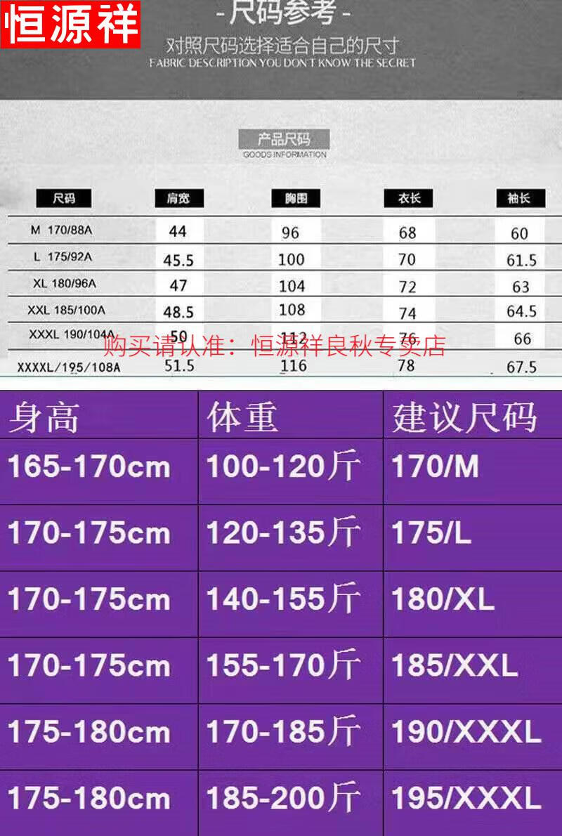 China (cm) 165 / 88-90 170 / 96-98 175 / 108-110 180 / 118-122 185 / 126-130