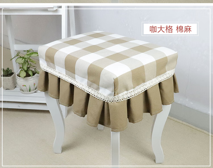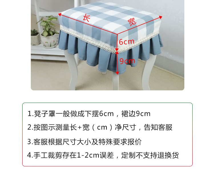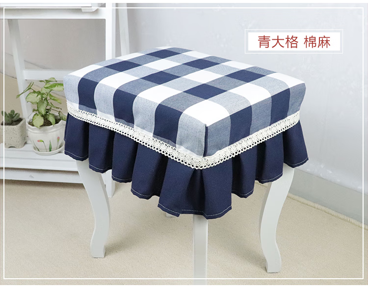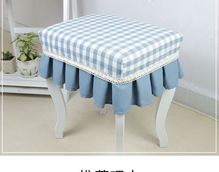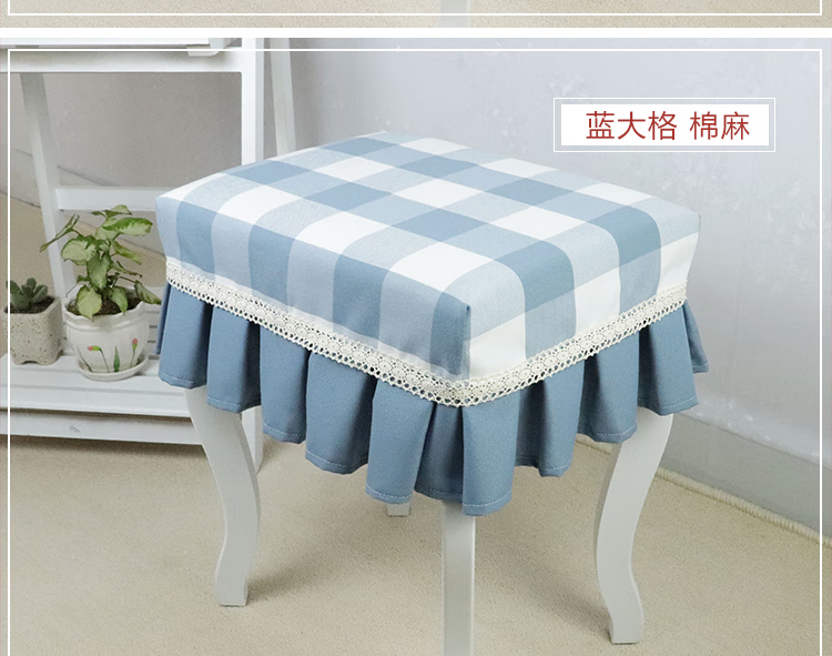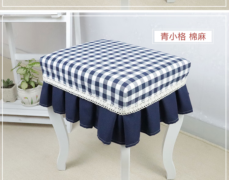 Jiazhilu custom-made stool dust cover fabric square stool cover chair cover home piano stool cover round dressing table makeup stool cover blue small grid length 55*width 35