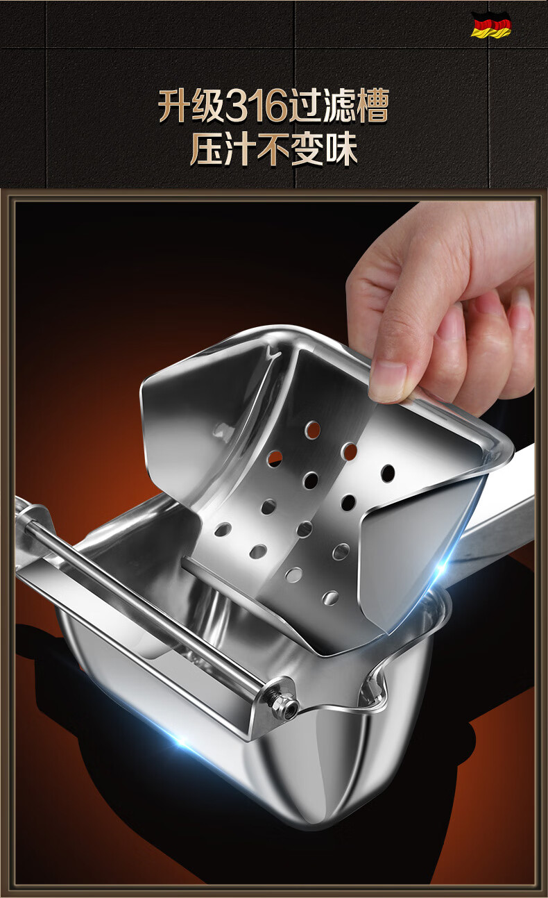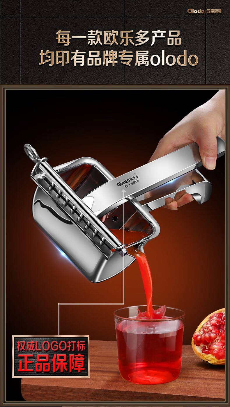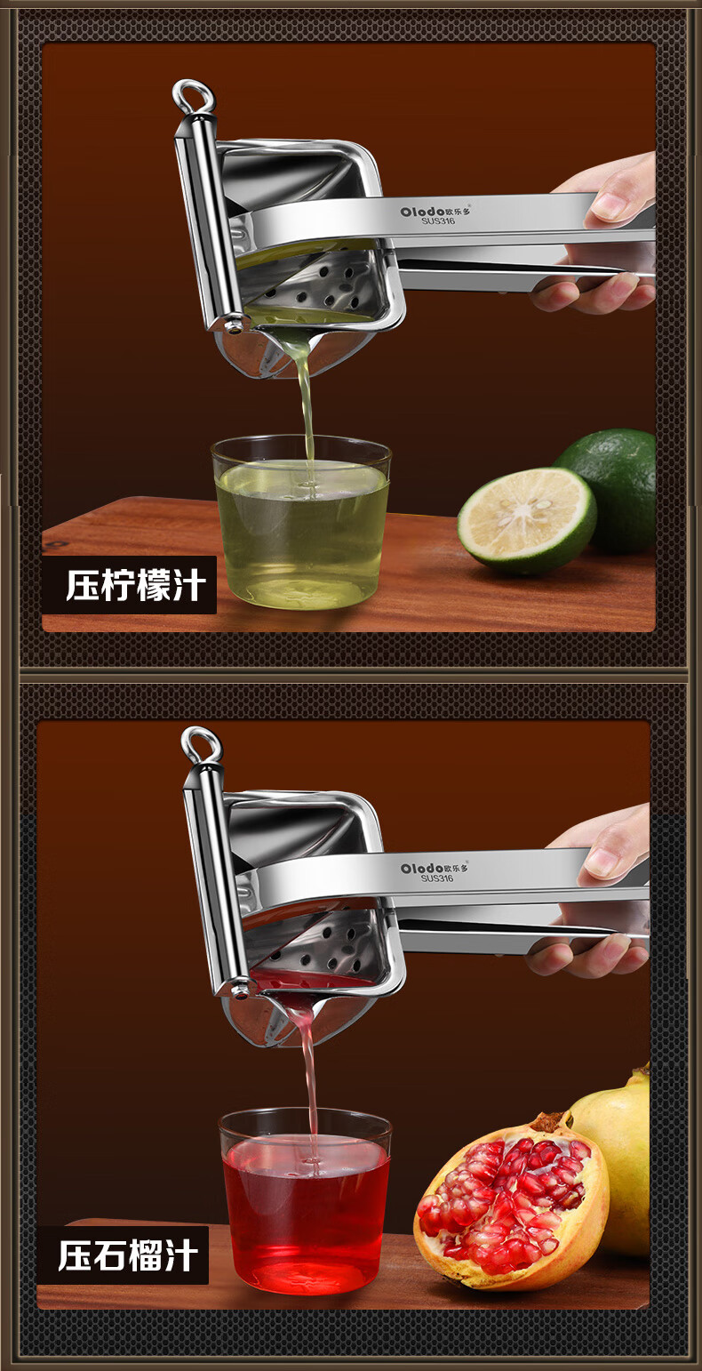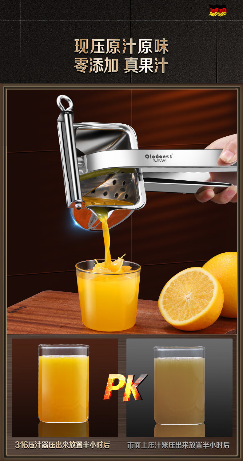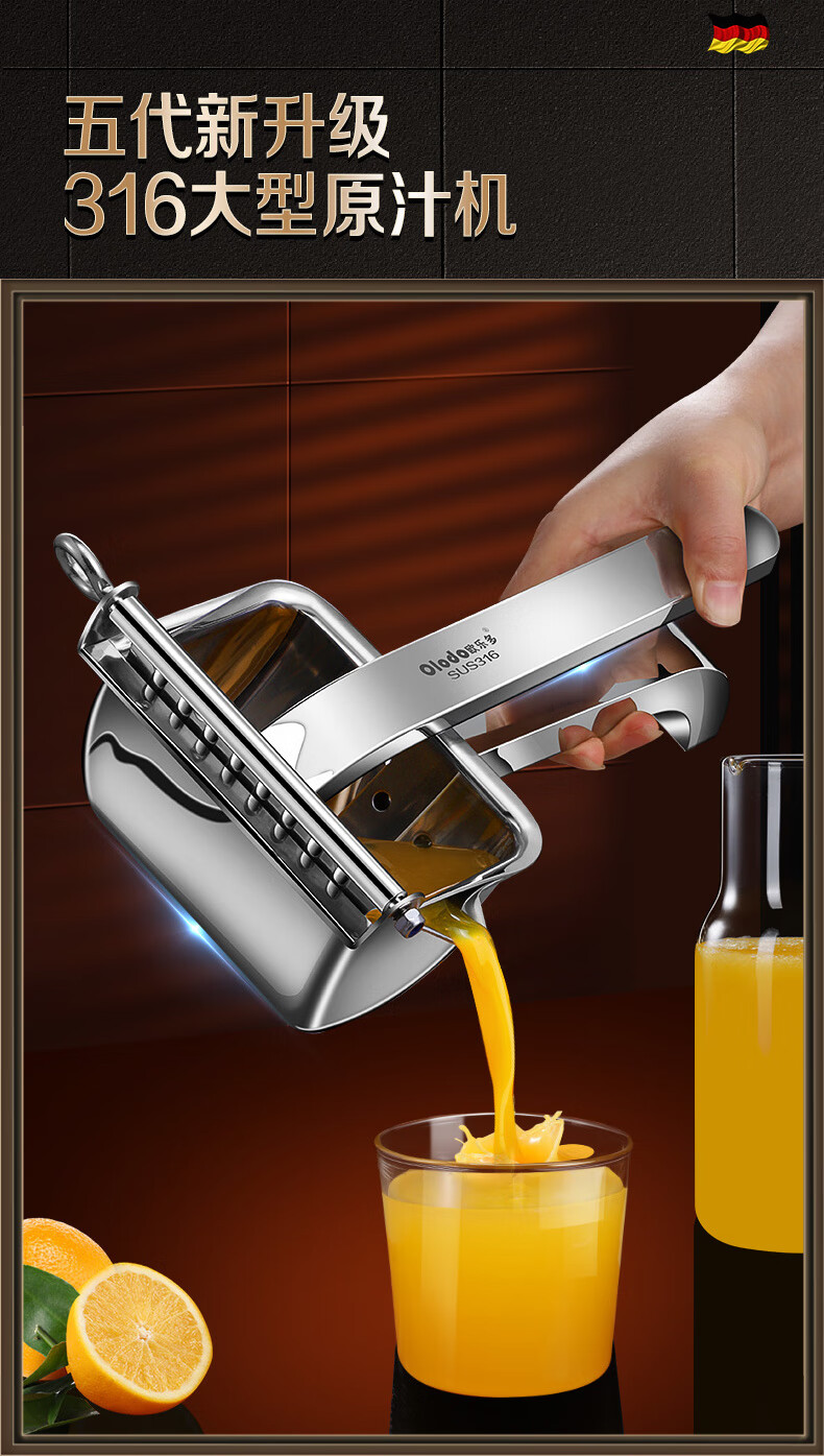 Olodo German 316 manual juicer stainless steel large squeeze juicer hand pressed pomegranate orange lemon clip removable 316 antibacterial juicer + 50 juice filter bags