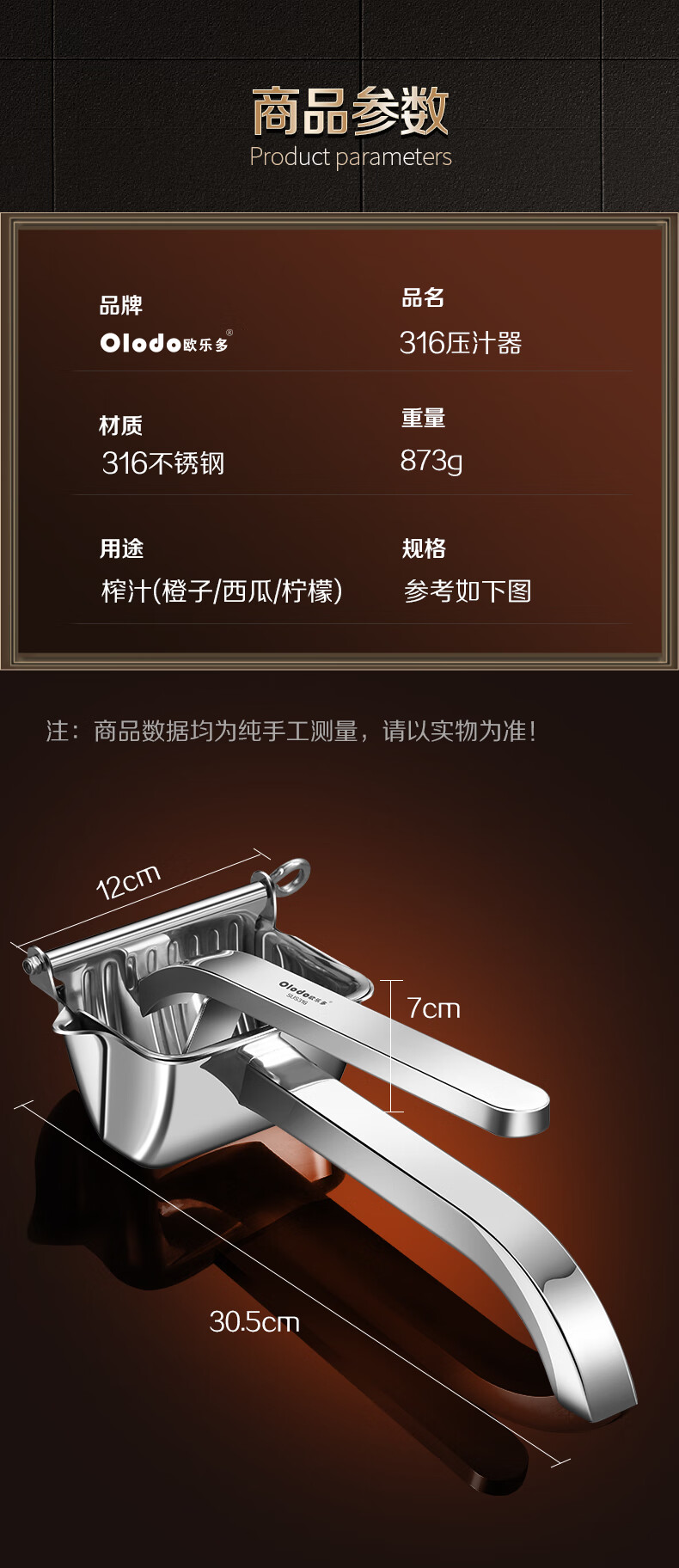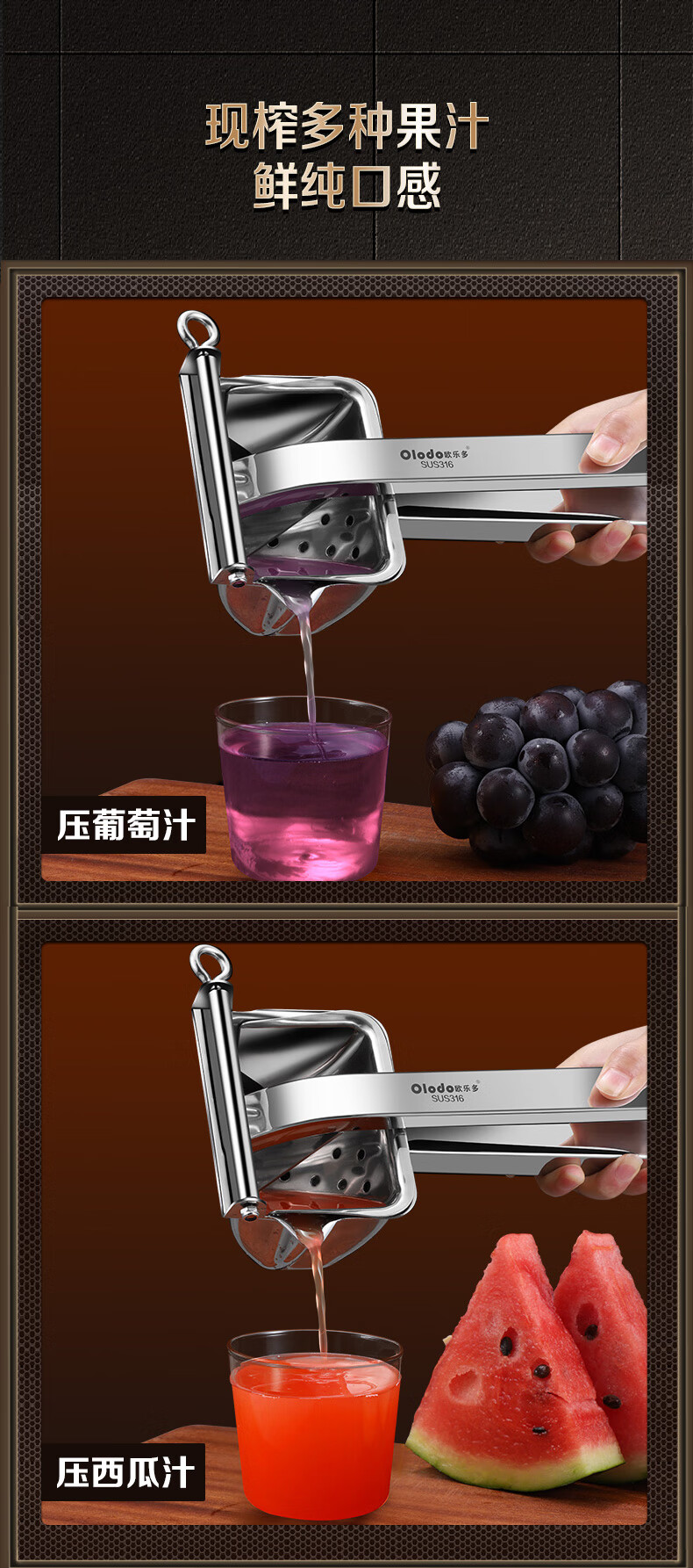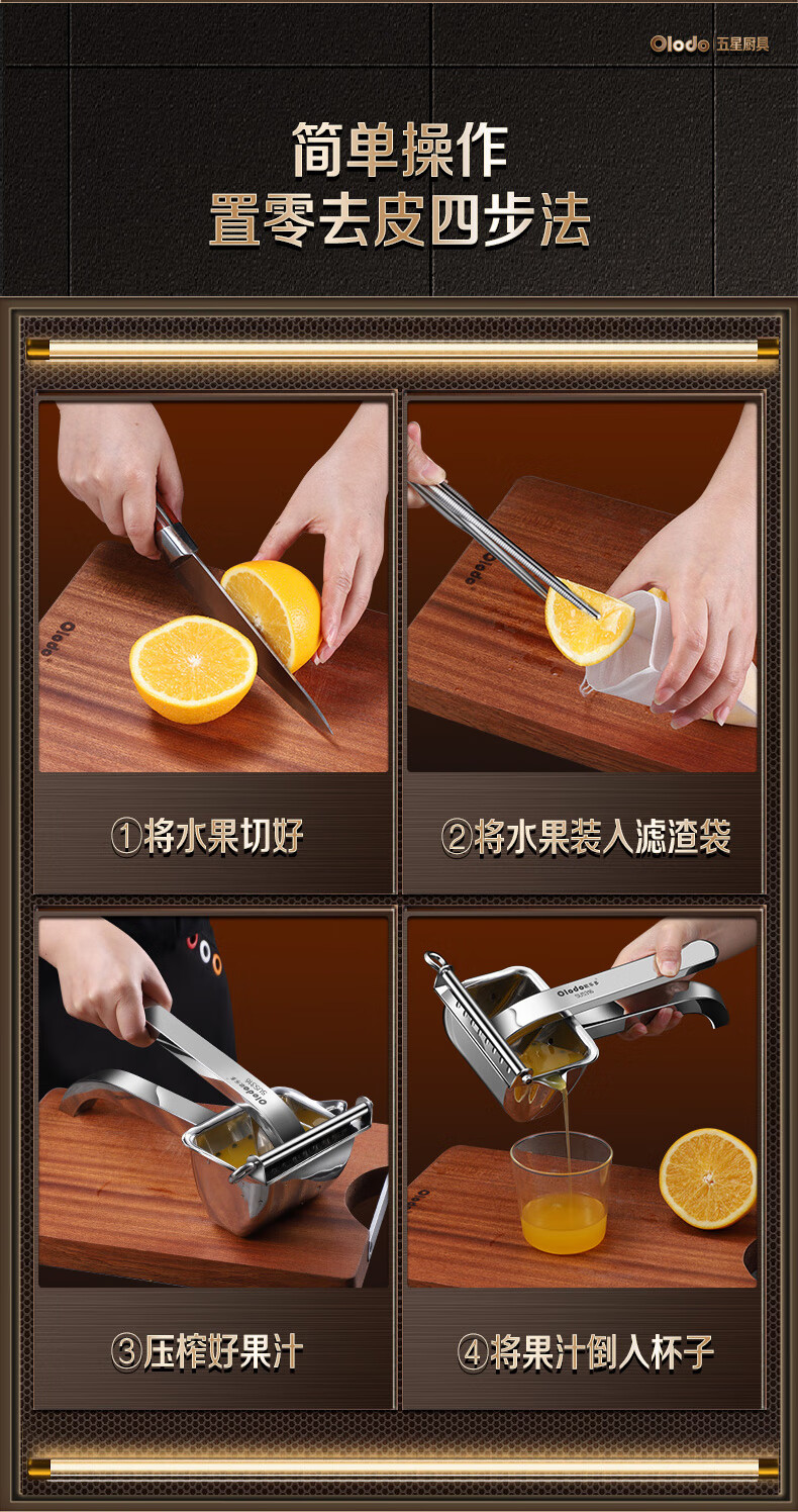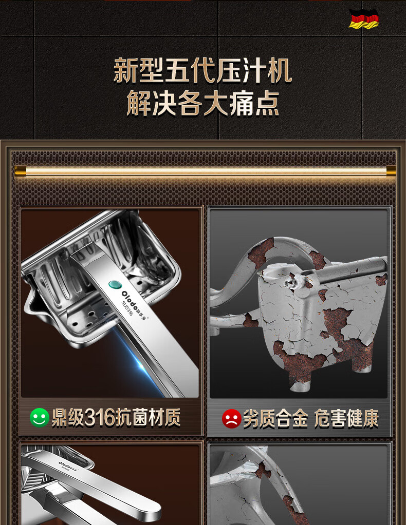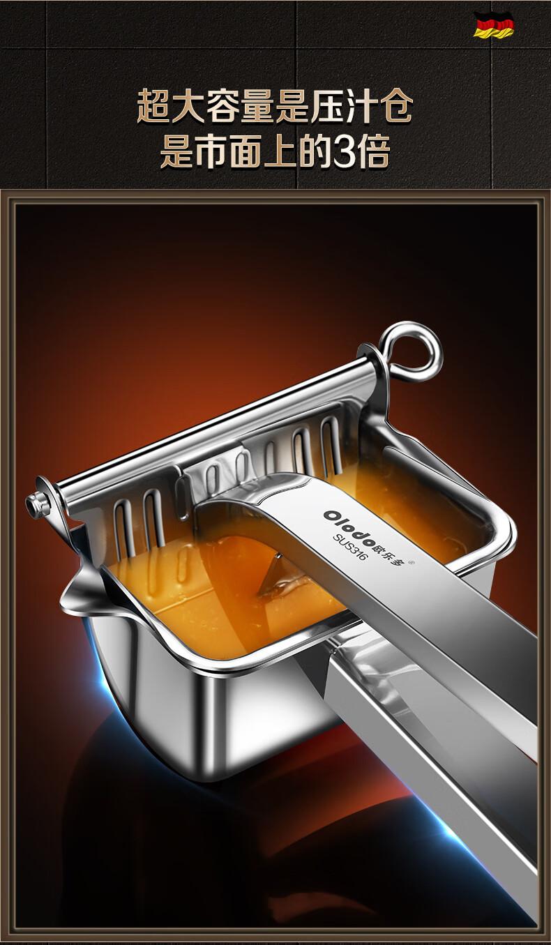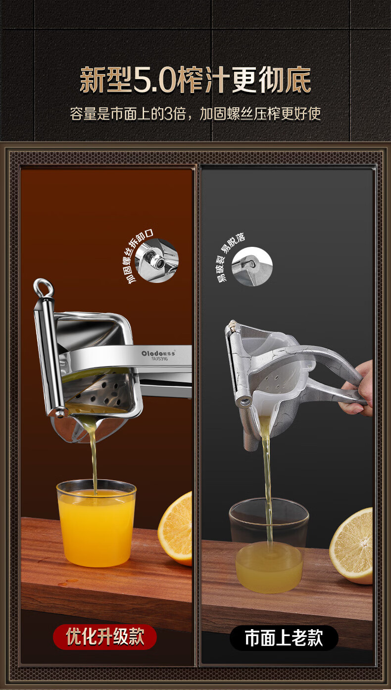 Olodo German 316 manual juicer stainless steel large squeeze juicer hand pressed pomegranate orange lemon clip removable 316 antibacterial juicer + 50 juice filter bags