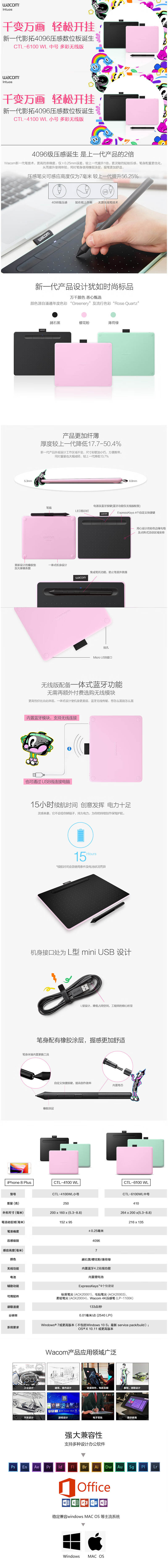 Wacom Japanese version Wacom Intuos series new Intuos hand-painted tablet colorful digital tablet hand-painted design 4096 levels of pressure sensitivity 4100WL/E0 mint green Bluetooth/wired version