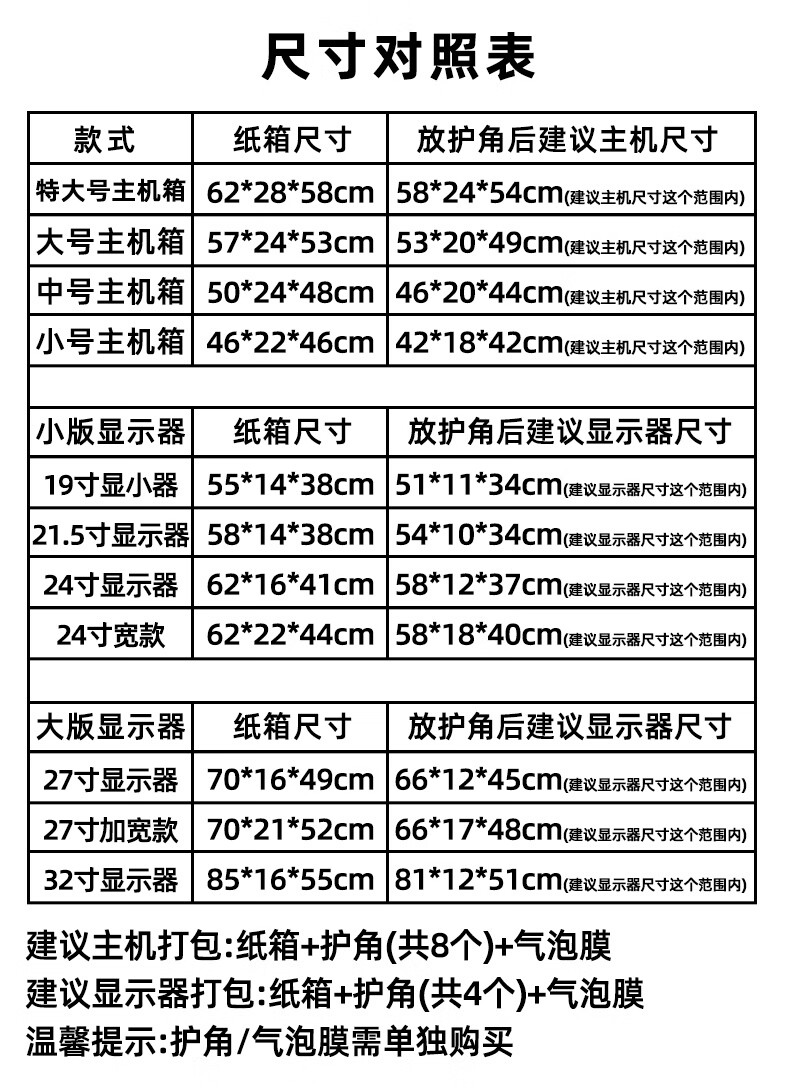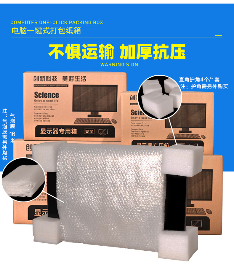 Monitor host packaging box with foam AOC 24-inch desktop computer carton packaging box 27 curved surface packaging box carton + corner protector + 8 meters bubble monitor box 24 inches