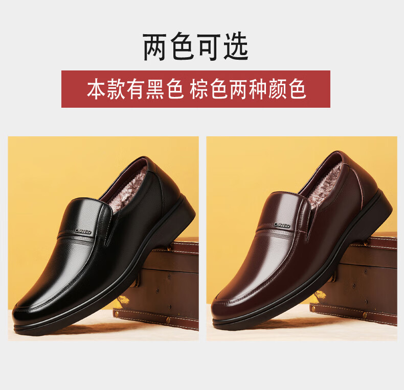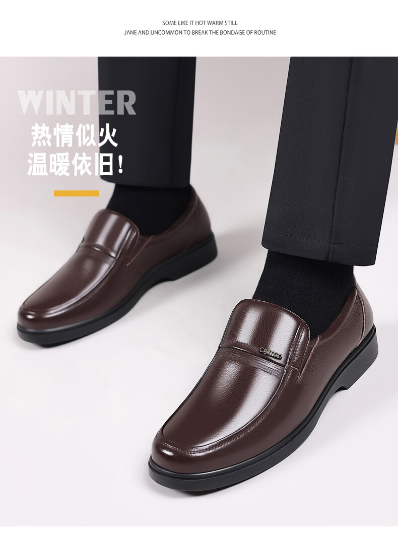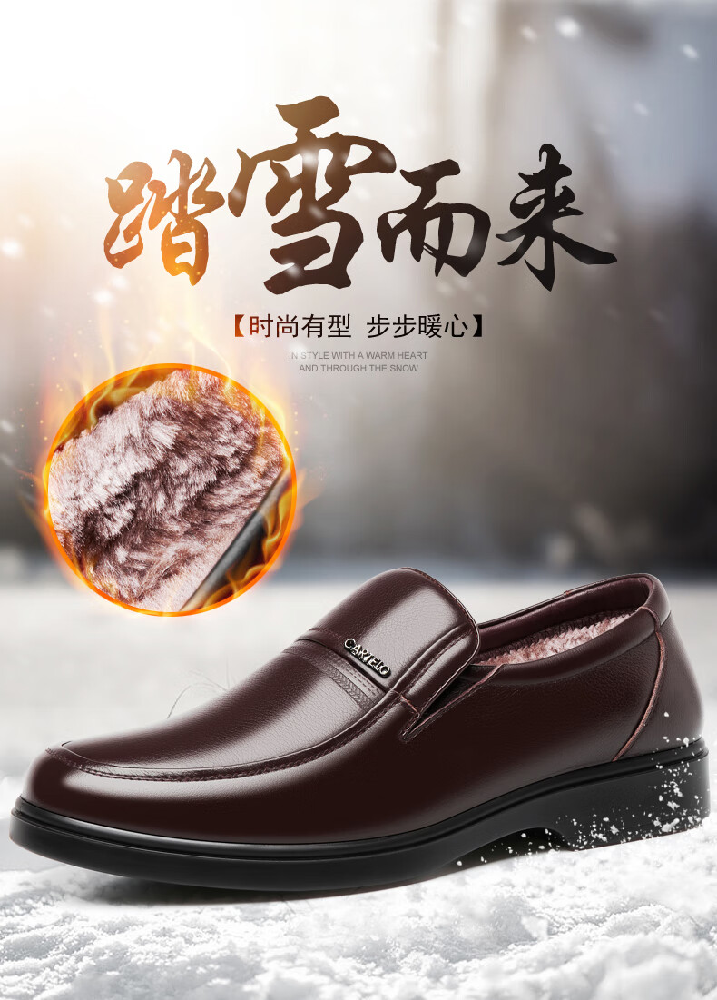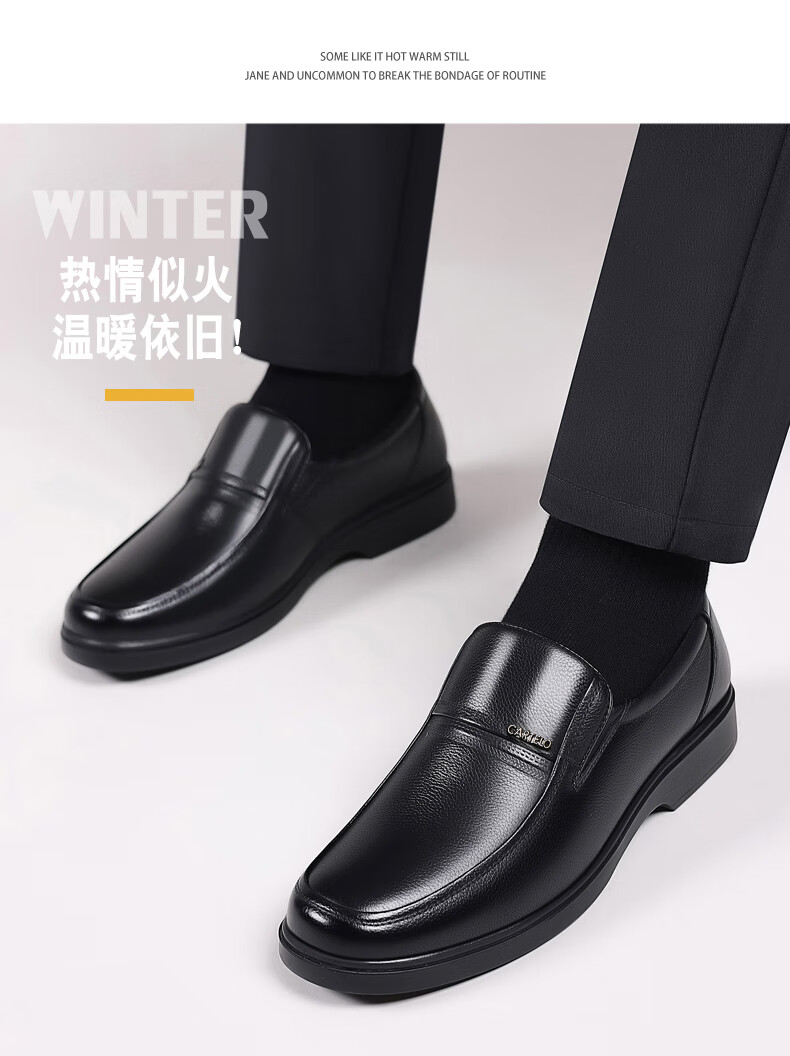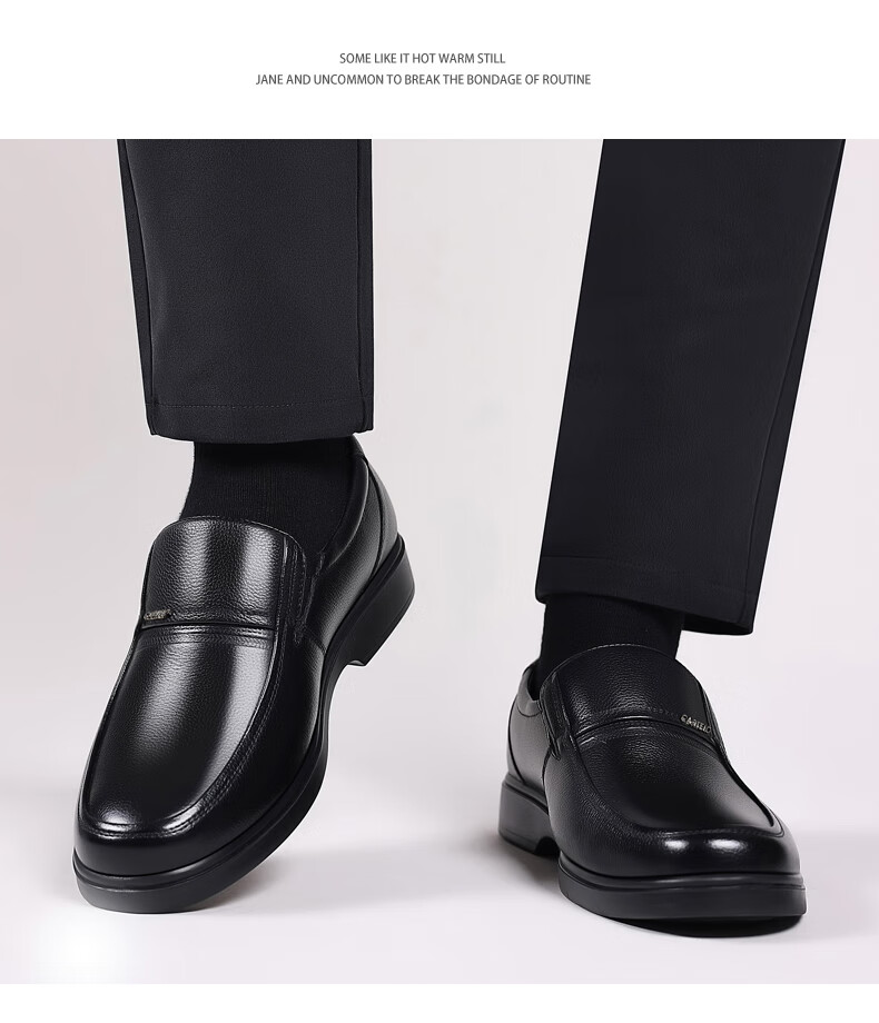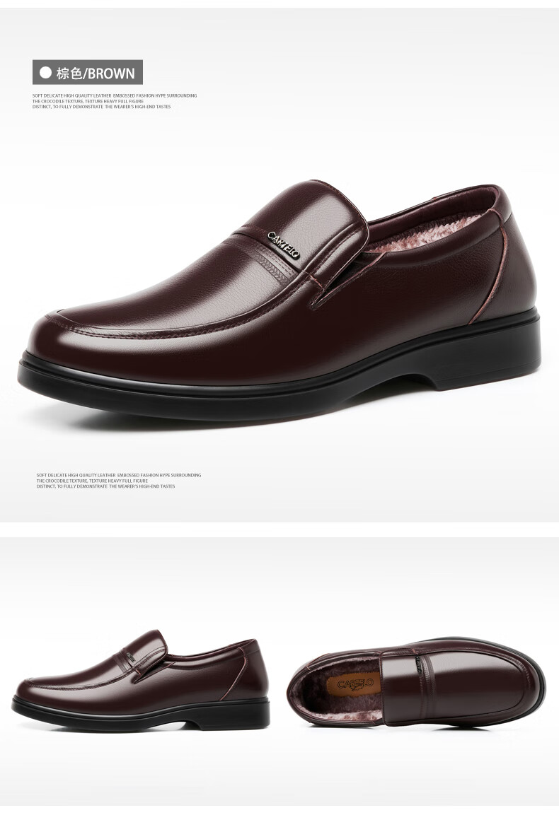 CARTELO Men's Winter Velvet Leather Shoes Men's Genuine Leather Business Casual Soft Sole Middle-aged Dad Shoes Middle-aged Warm Cotton Shoes Black Velvet Style 42