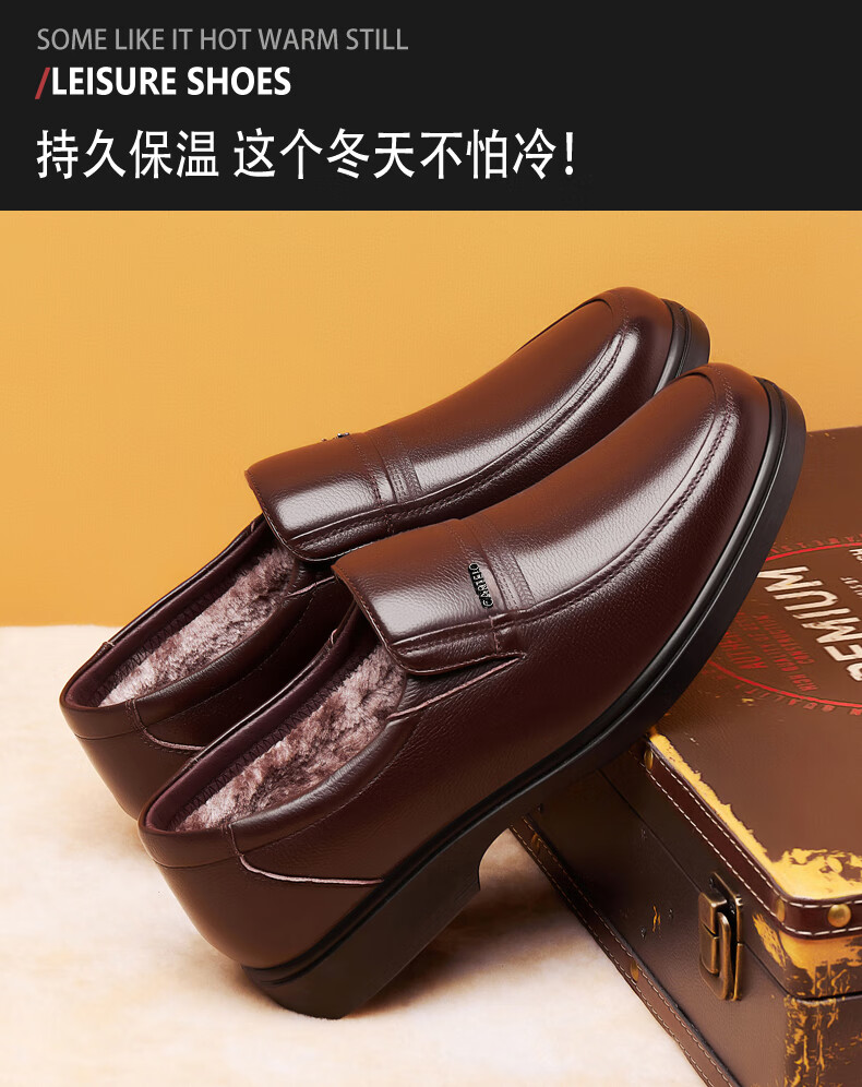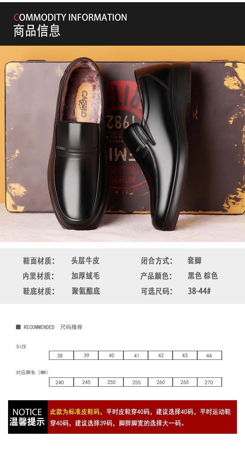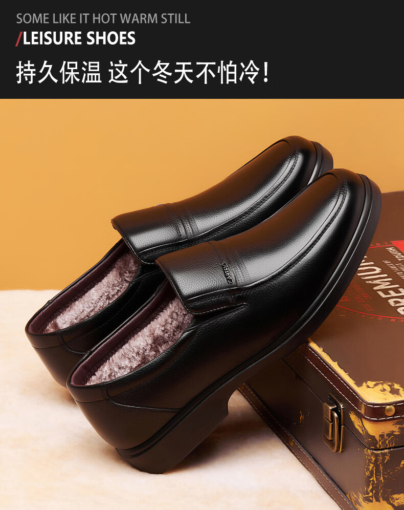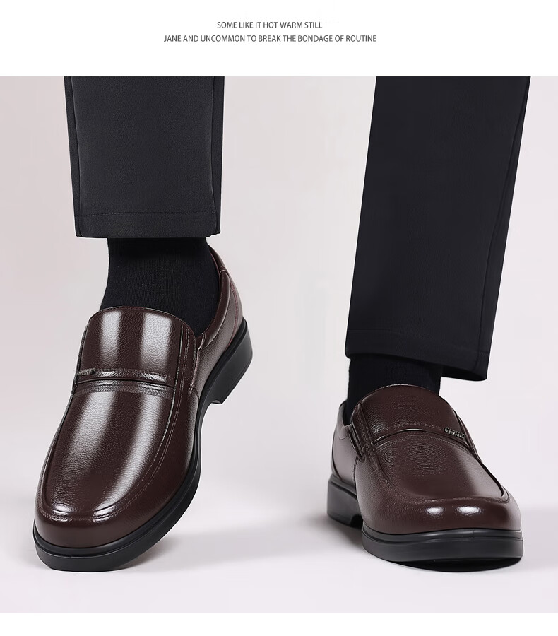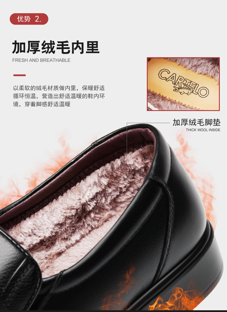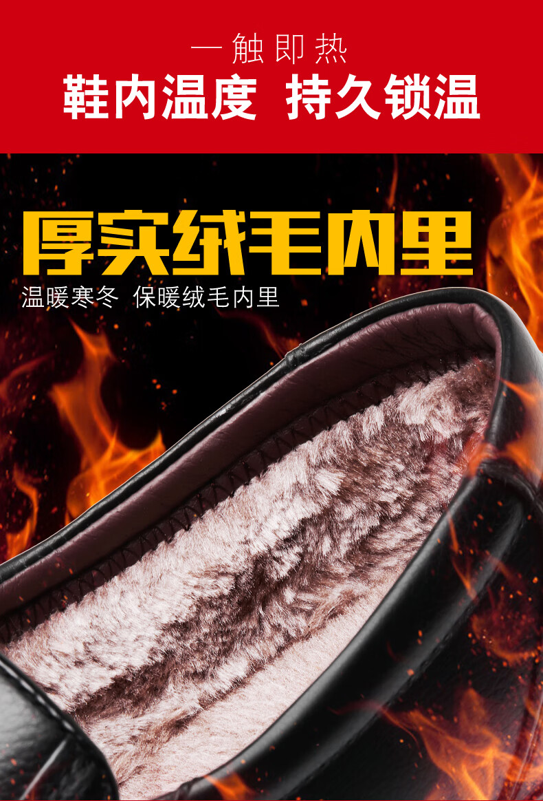 CARTELO Men's Winter Velvet Leather Shoes Men's Genuine Leather Business Casual Soft Sole Middle-aged Dad Shoes Middle-aged Warm Cotton Shoes Black Velvet Style 42