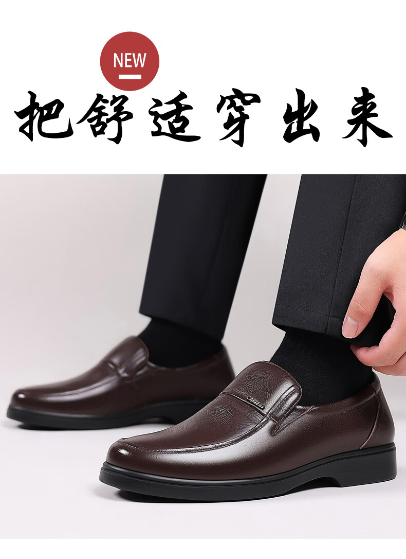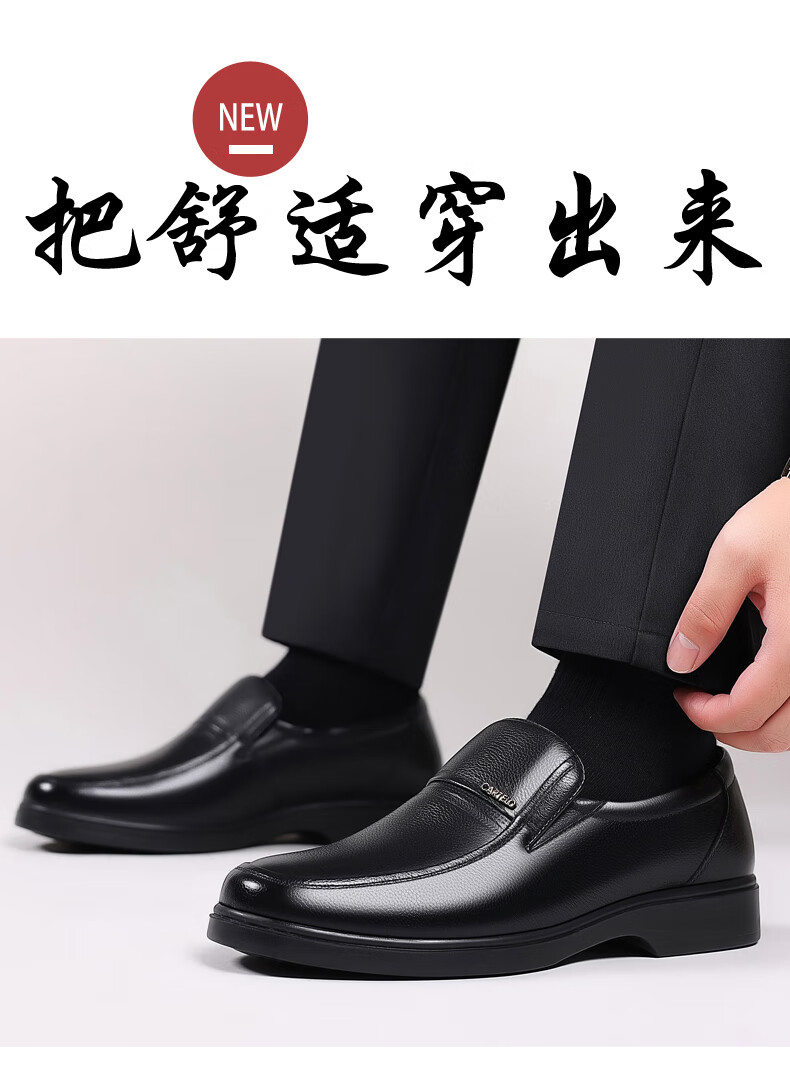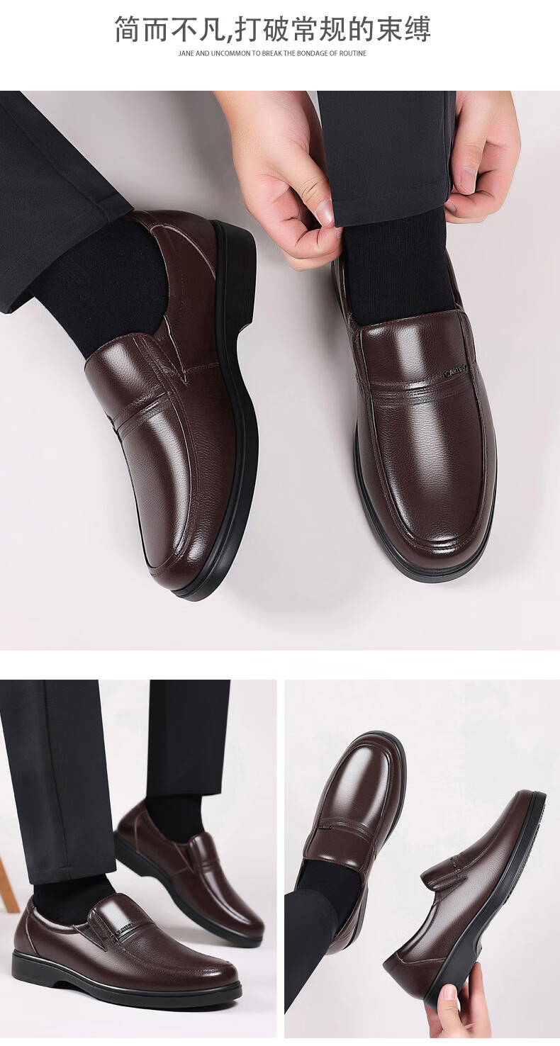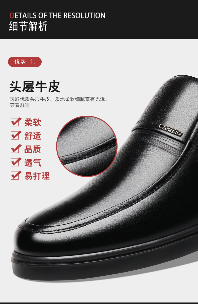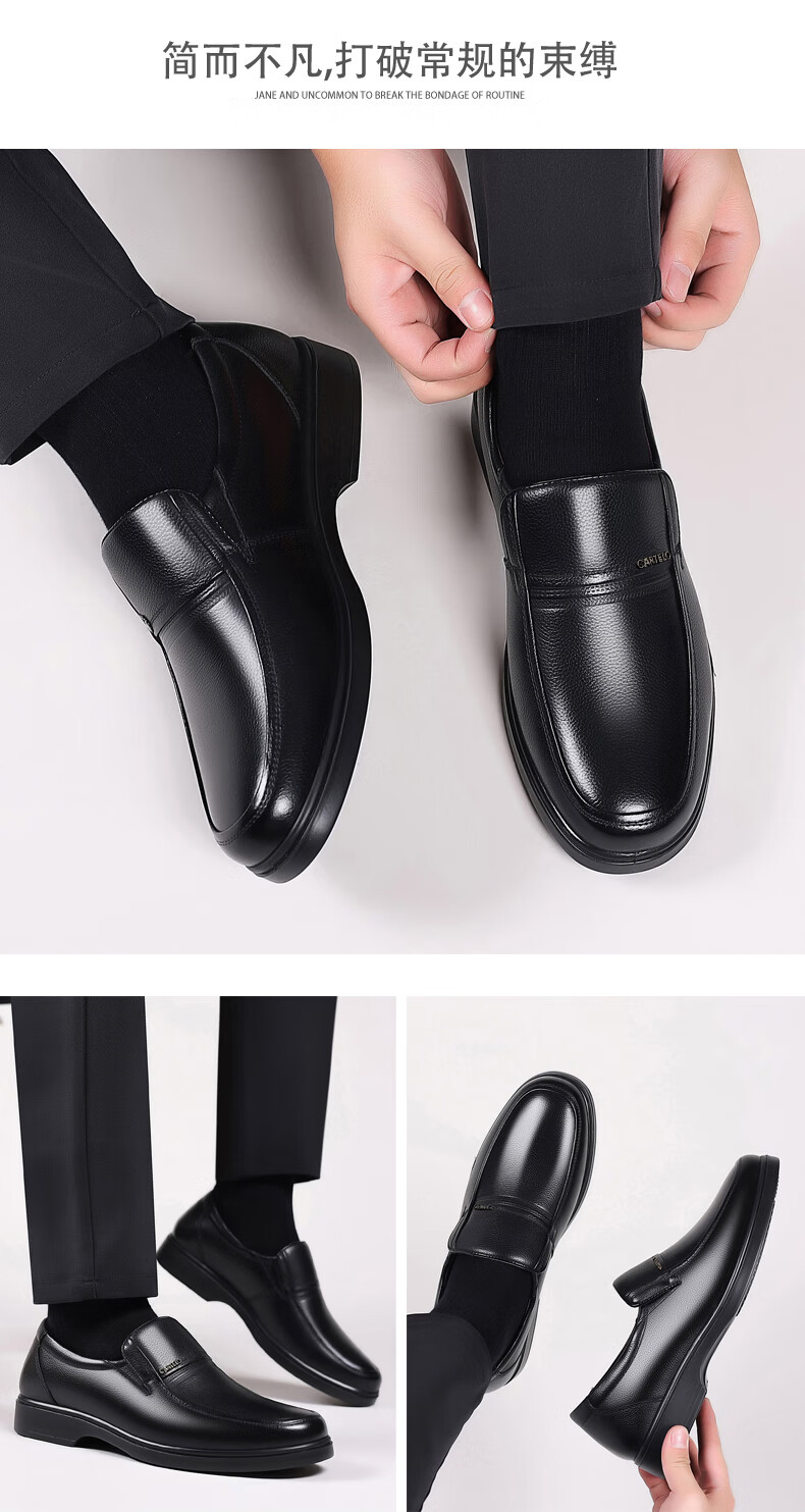 CARTELO Men's Winter Velvet Leather Shoes Men's Genuine Leather Business Casual Soft Sole Middle-aged Dad Shoes Middle-aged Warm Cotton Shoes Black Velvet Style 42