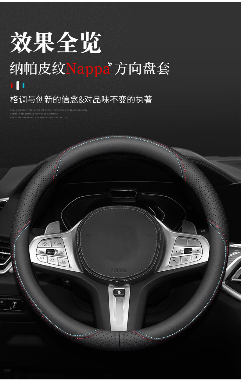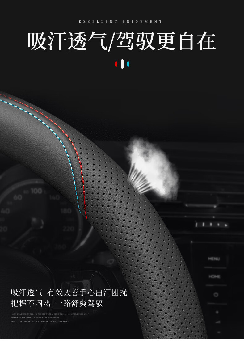 LIESEN Audi steering wheel cover with nappa leather texture, ultra-thin sweat-absorbent A4L A6L A3 A5 A7 Q3 Q5L Q7 handlebar cover D-type disc (selected nappa leather texture)