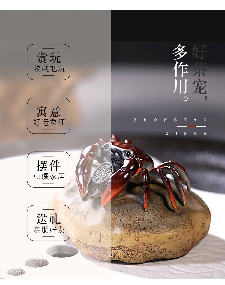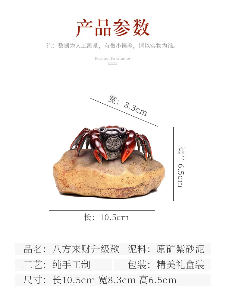 Fuyaji Purely Handmade Purple Clay Tea Pet Ornaments Color Changing Crab Tea Play Bafang Laicai Tea Set Tea Tray Accessories Upgraded New Style