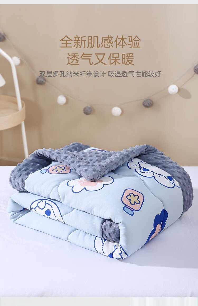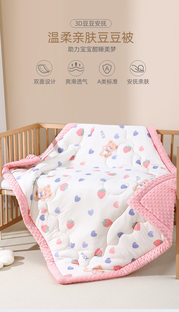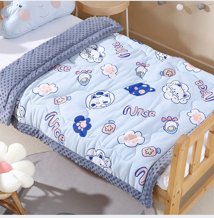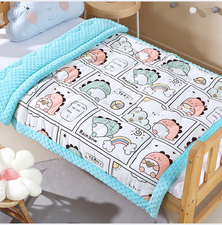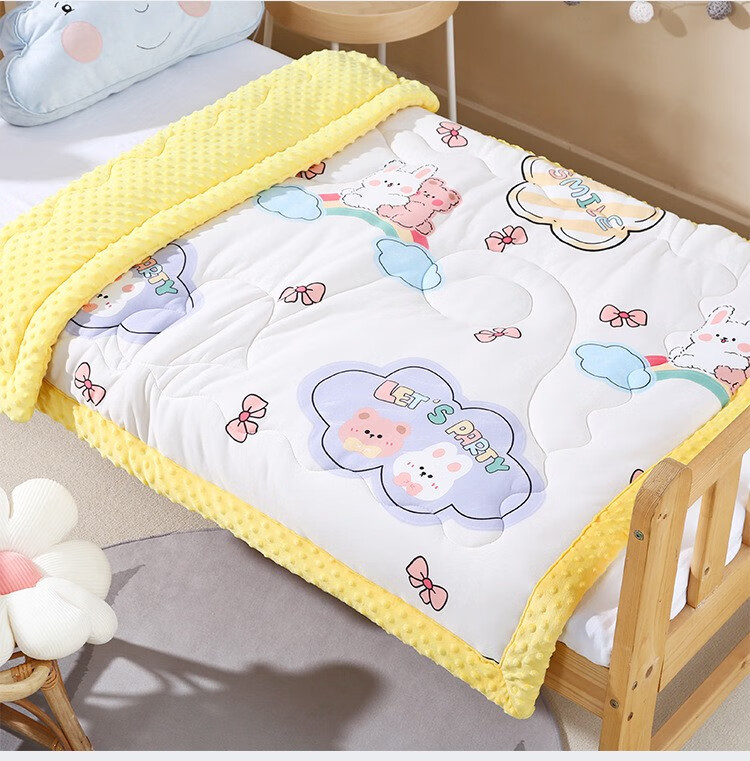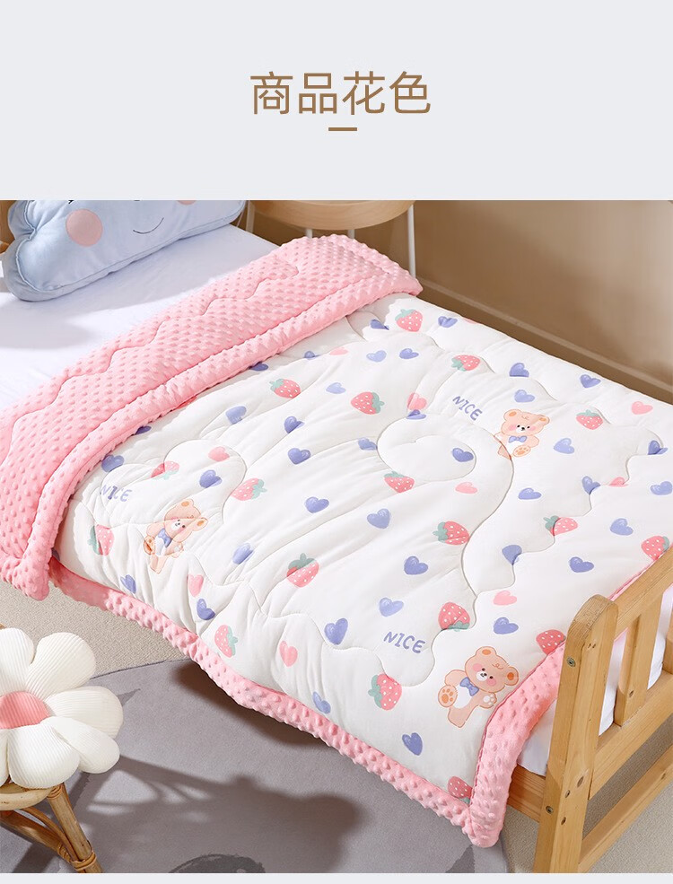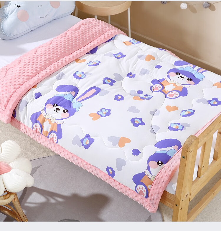 Colorful baby cotton bean velvet children's kindergarten nap thickened blanket autumn and winter male and female baby comfort quilt pink rabbit 100x100cm