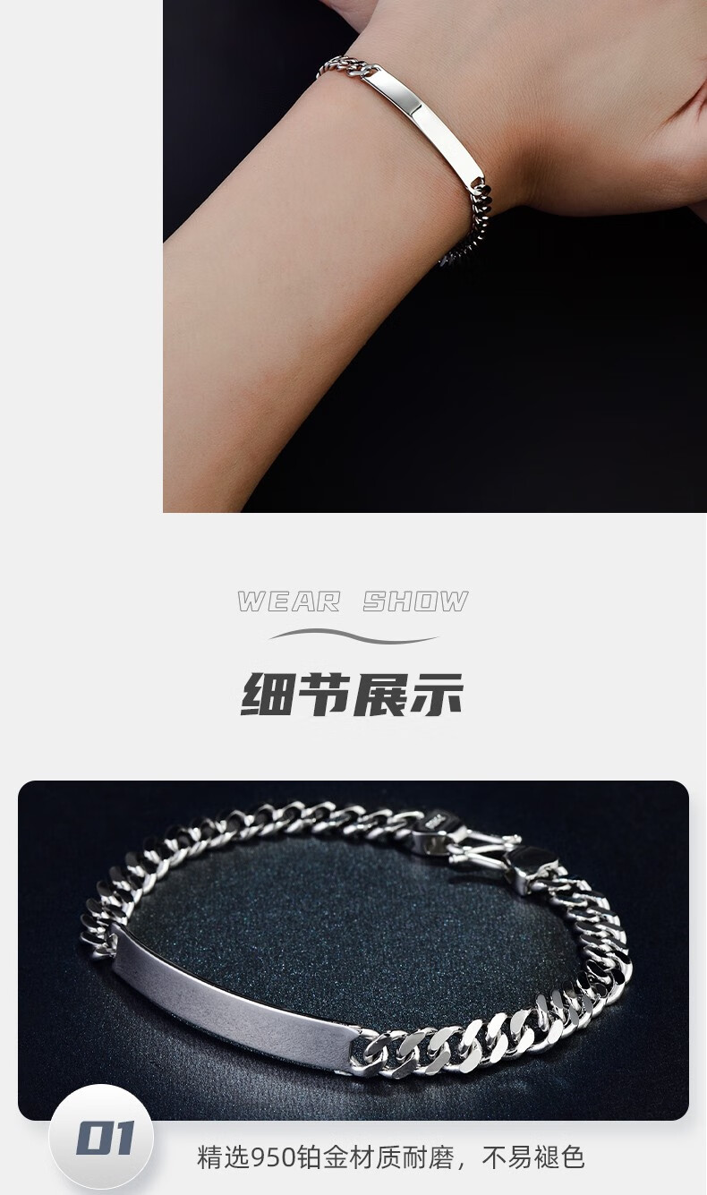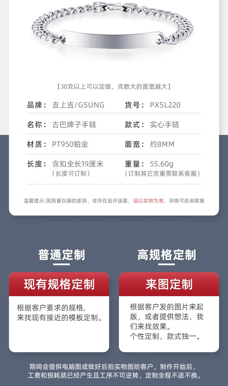GsunG platinum men's bracelet PT950 men's Cuban chain atmosphere middle belt brand riding whip platinum bracelet for women please contact customer service to confirm the gold weight price