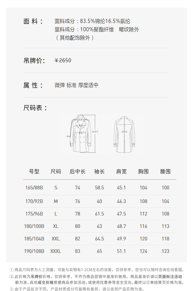 China (cm) 165 / 88-90 170 / 96-98 175 / 108-110 180 / 118-122 185 / 126-130