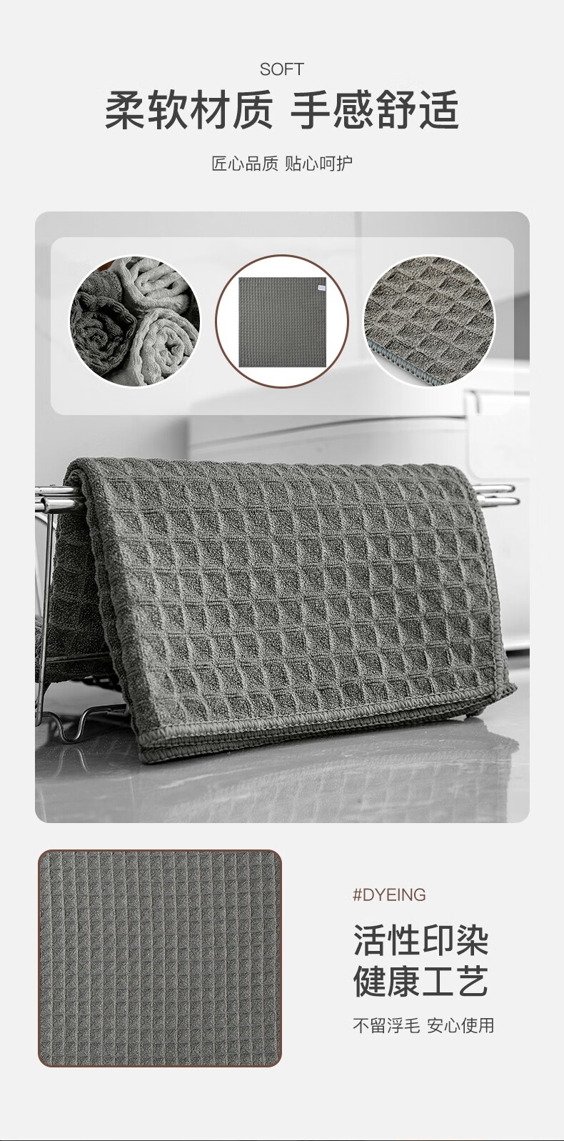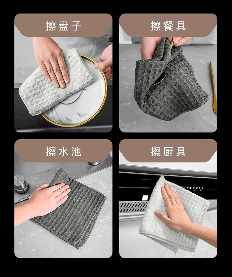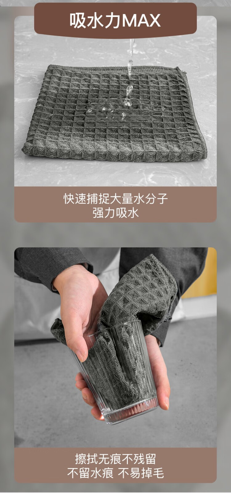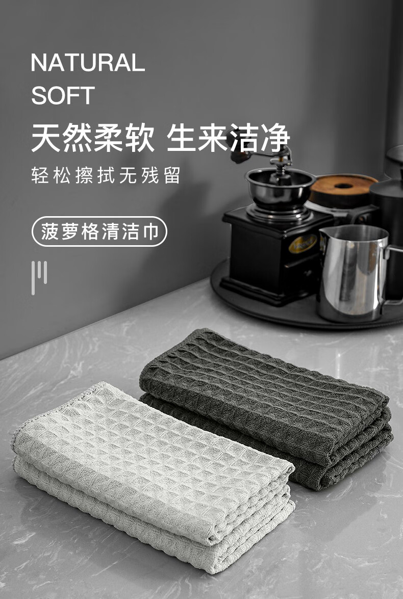 Pineapple plaid rag, absorbent, no lint, wipe glass cups, no trace, no water stains, kitchen towel, dishwasher, wipe tablecloth, light gray + dark gray 4 pack 30x30
