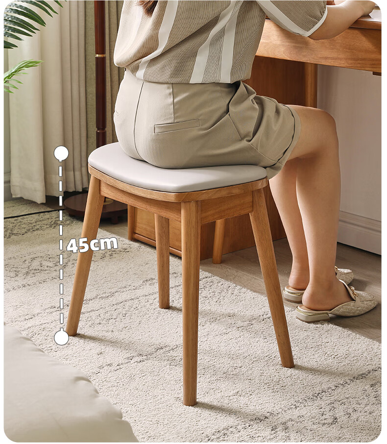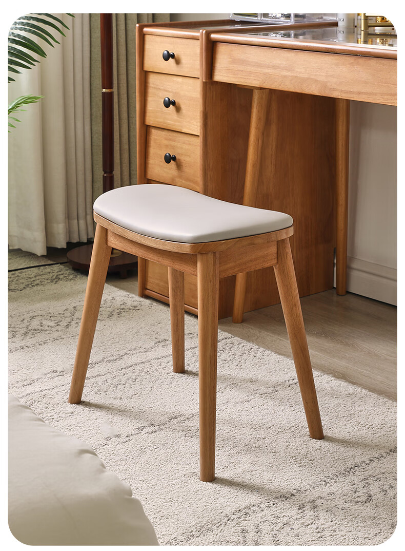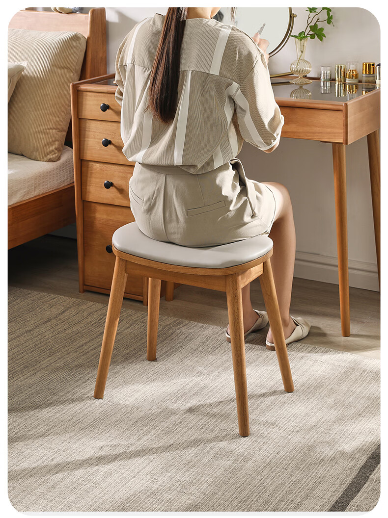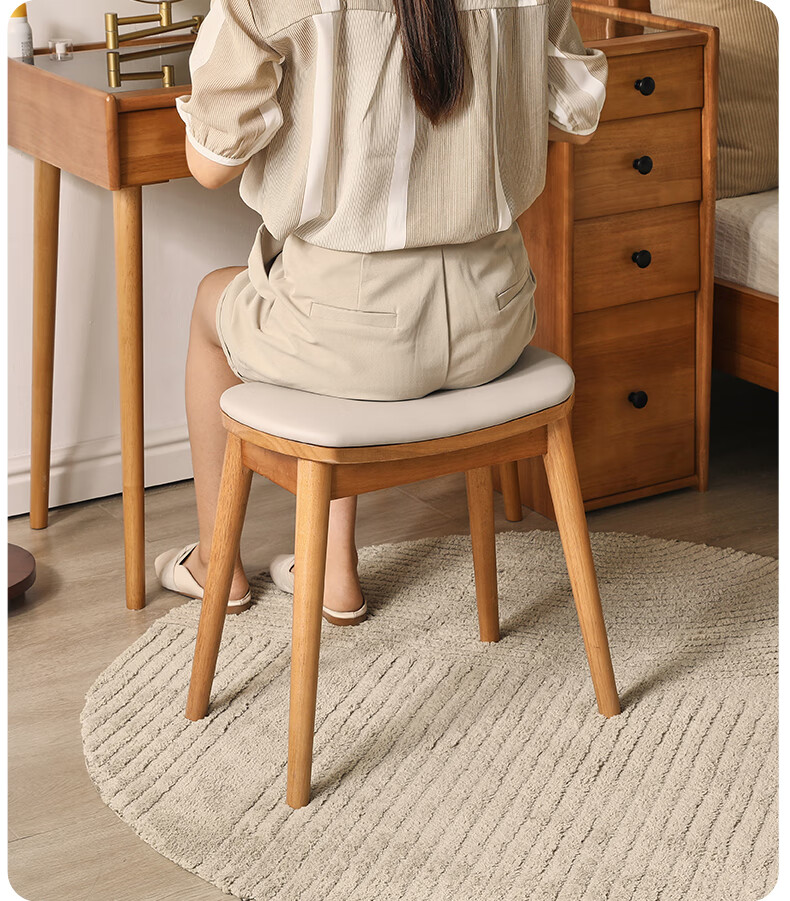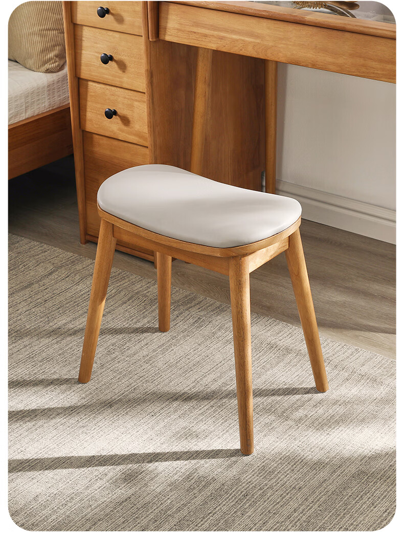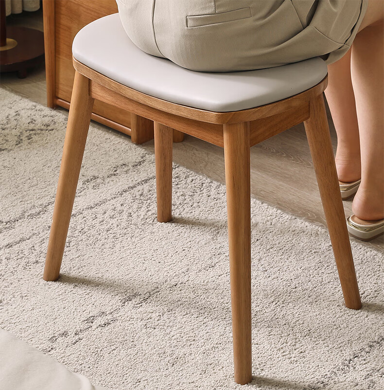 JIAYI solid wood dressing stool makeup stool makeup chair stool dressing table sitting stool makeup stool bench square stool cherry wood legs + gray seat surface