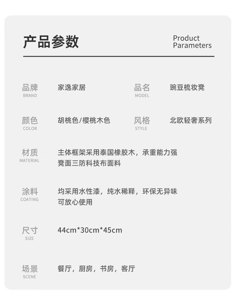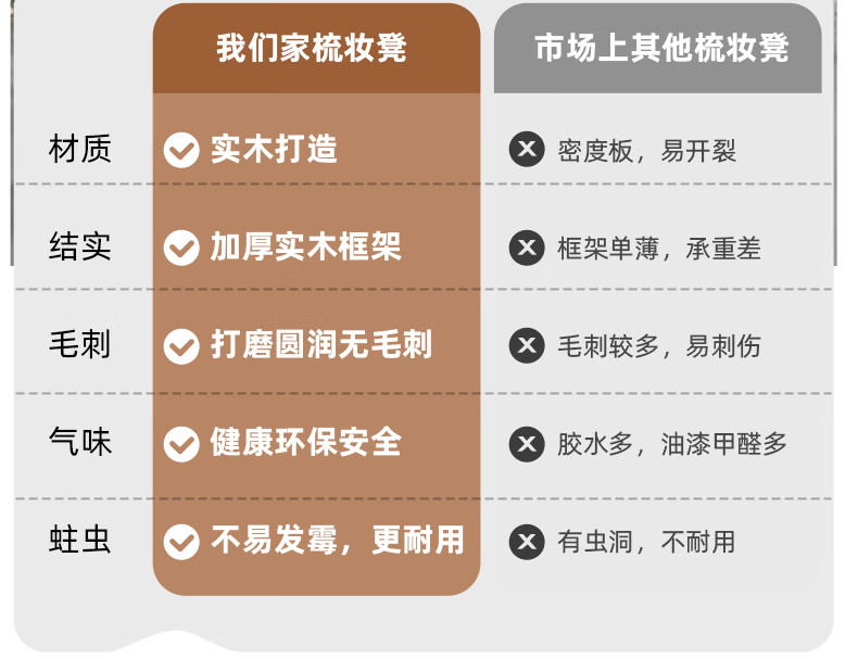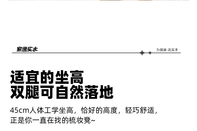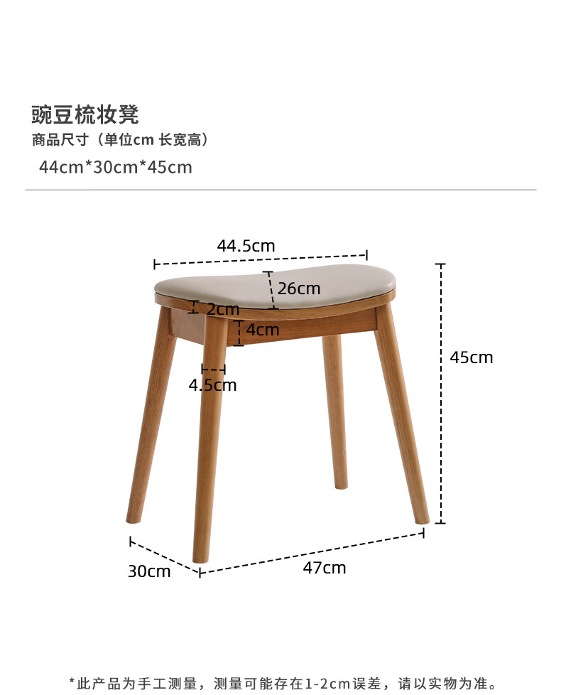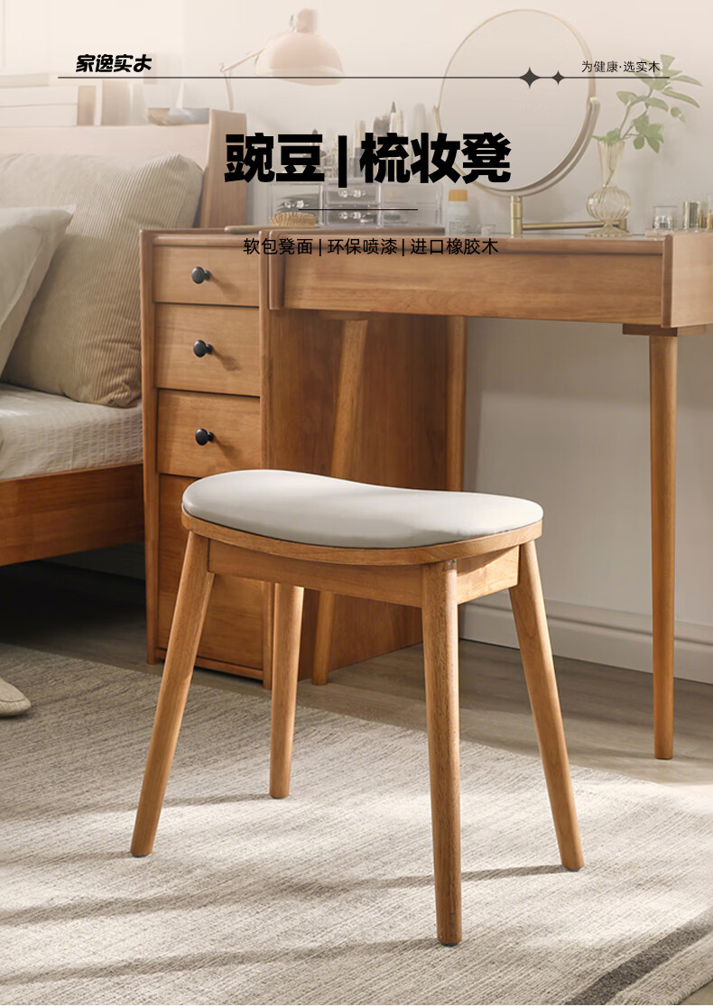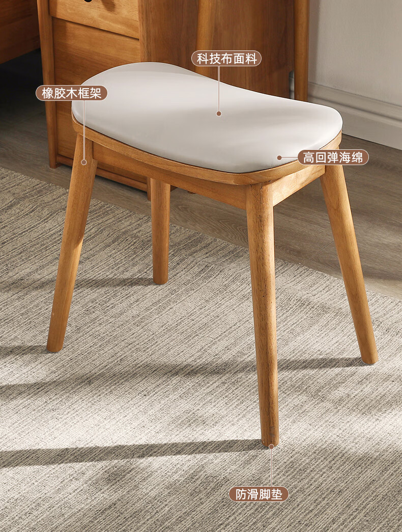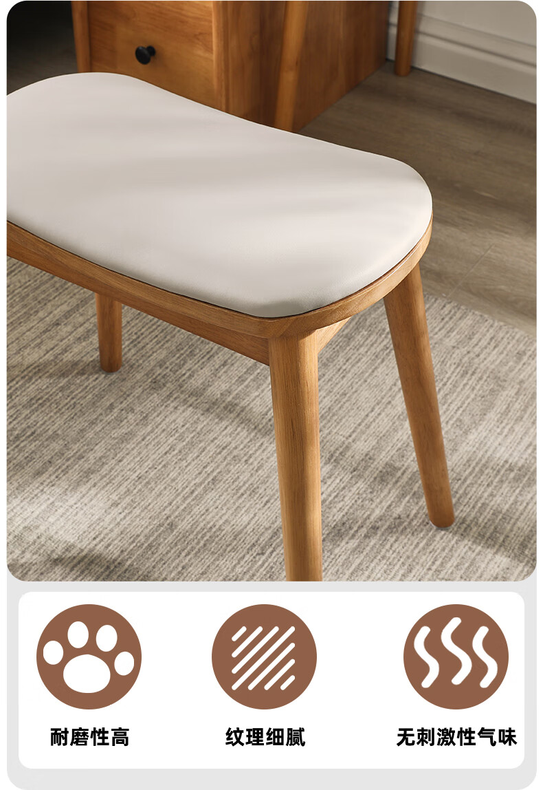 JIAYI solid wood dressing stool makeup stool makeup chair stool dressing table sitting stool makeup stool bench square stool cherry wood legs + gray seat surface