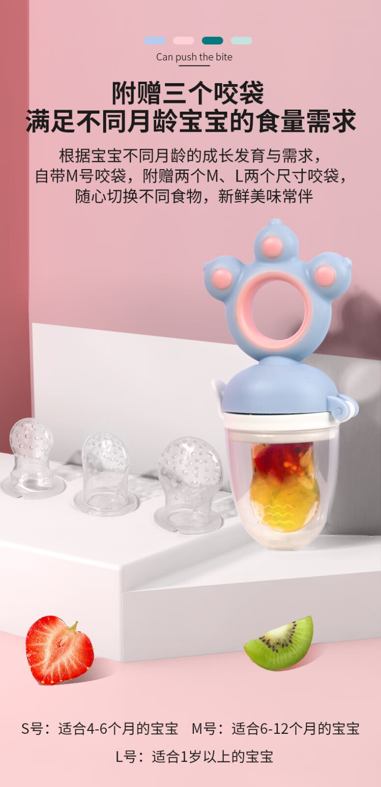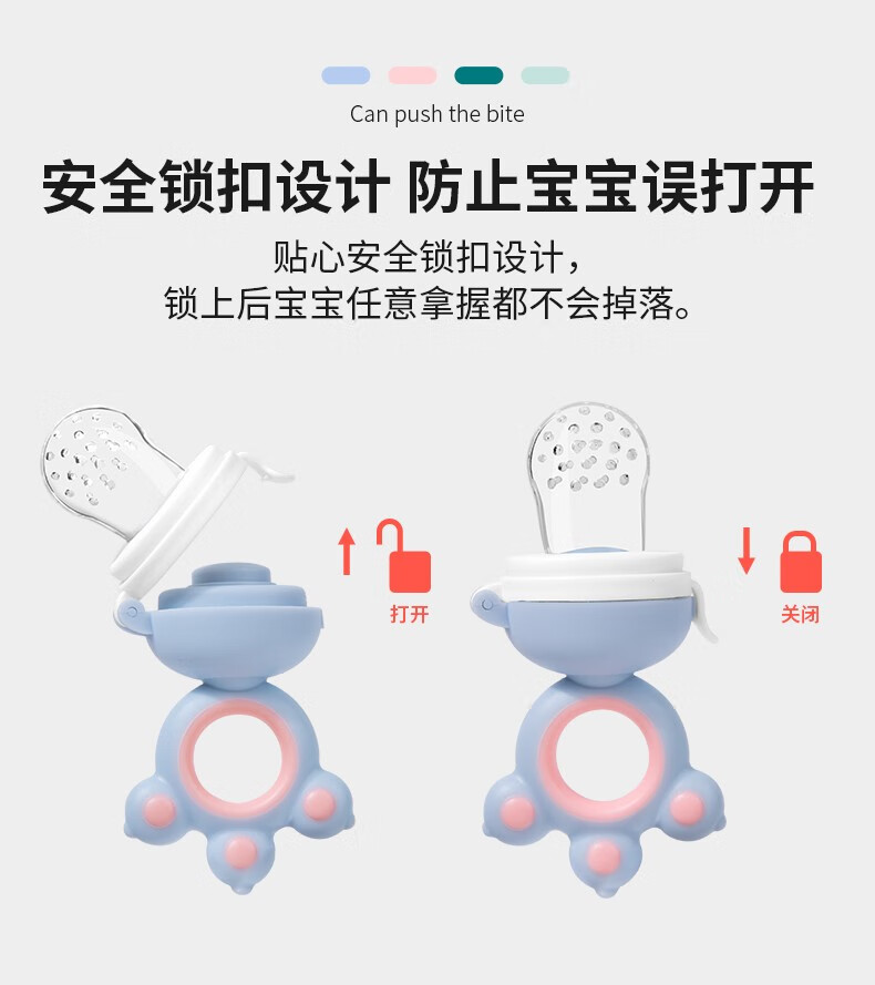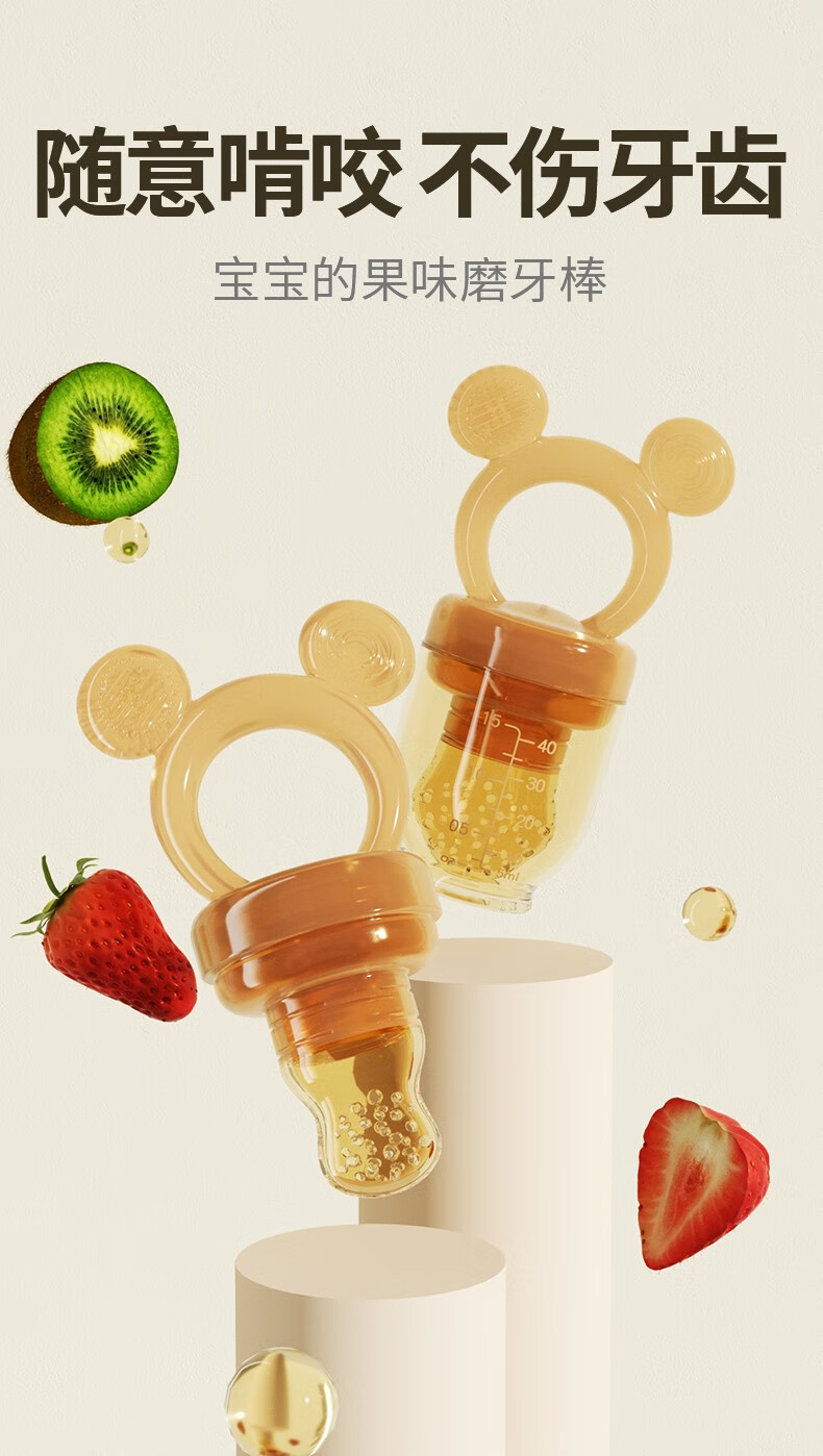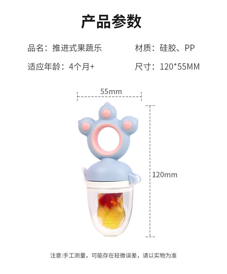 Yoshida Hisamori baby bite bag fruit food supplement baby fruit and vegetable music food grade full silicone pacifier molar gum puree push bear bite bag + 3 mouths + double-head scraper spoon powder